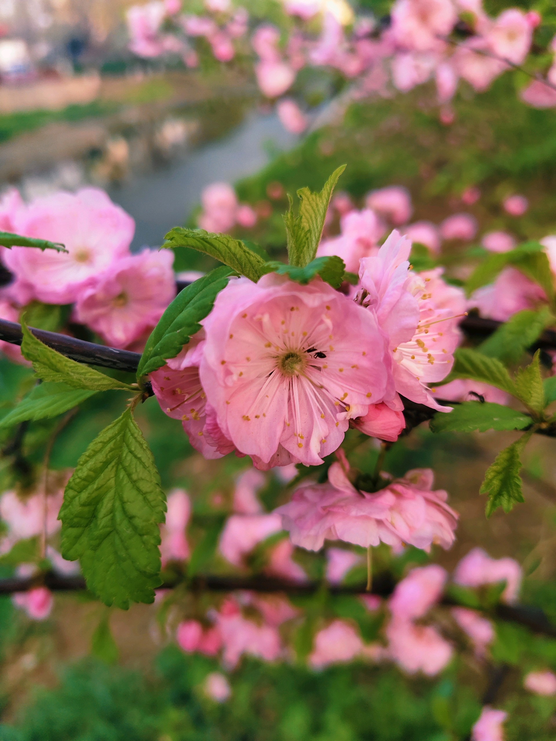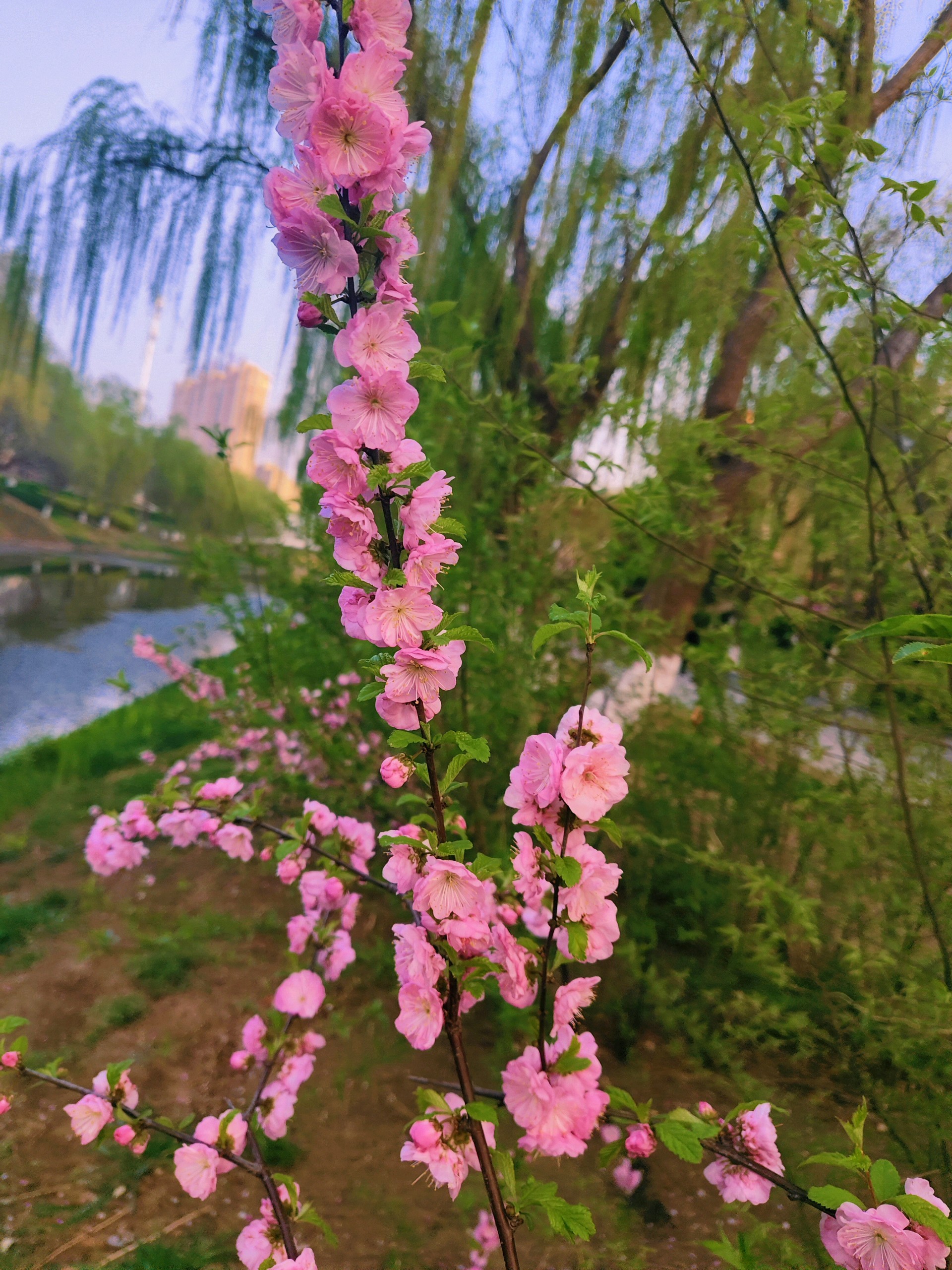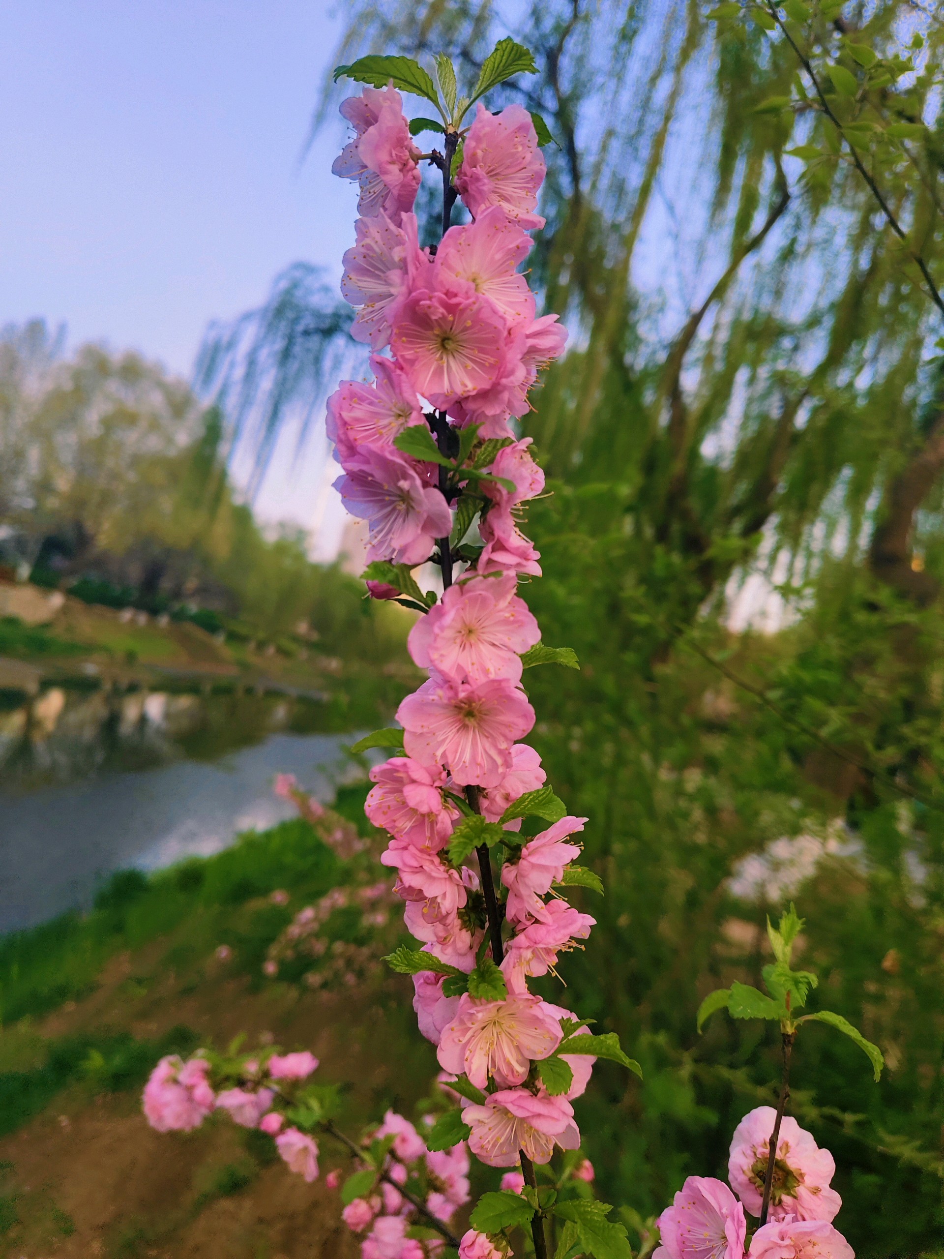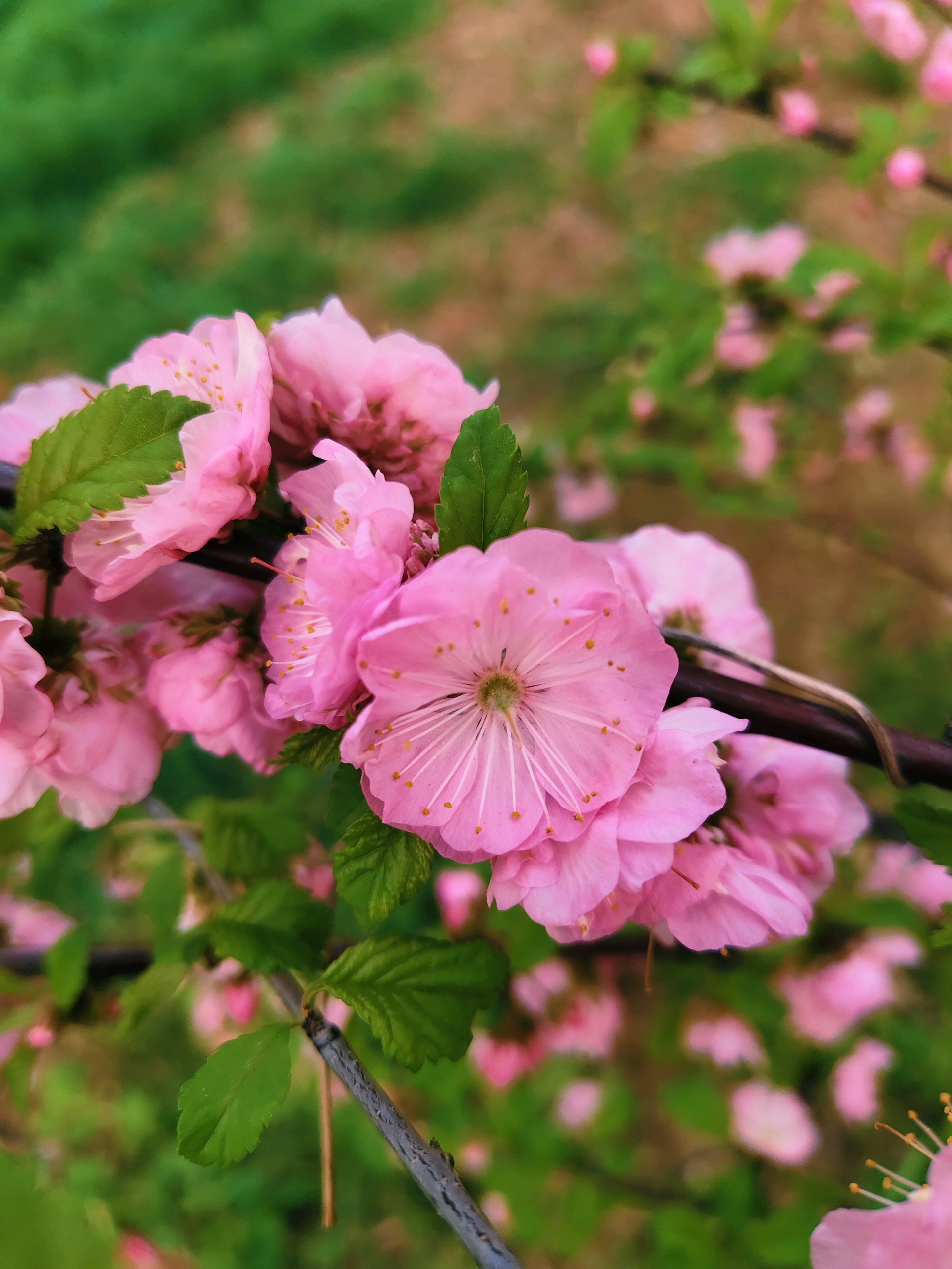粉色碧桃,绿叶映衬。花瓣娇美,在风中摇曳。所到之处,皆是风景。手机随拍,将春色存入画屏,把春天种在心中!