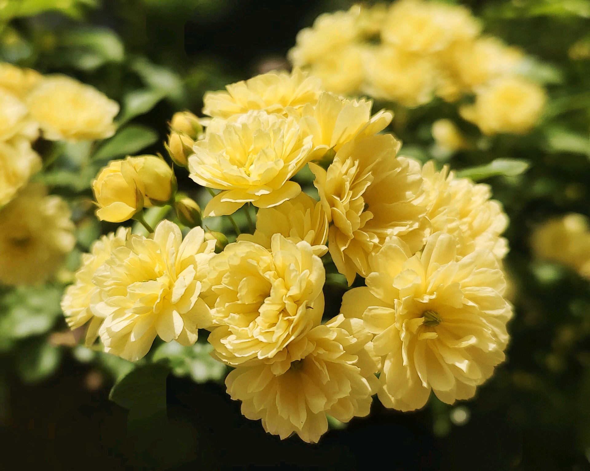 黄蔷薇一丛丛竞相绽放,远远看去,好似一片金色的海洋。它不仅颜值出众,还具备诸多中草药功效。它富含维生素C和多酚类物质,能够美容养颜,抑制黑色素沉淀。其花香能调节情绪,缓解焦虑与失眠。如此迷人的黄蔷薇,持续散发着自身的魅力,可谓颜值与实力并存,为更多人带来视觉和身心上的愉悦体验。(高军摄影 )