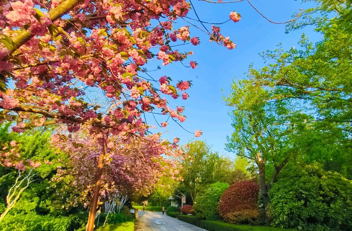 4月7日,情报员“枣睡枣起”向齐鲁晚报官方客户端齐鲁壹点情报站发来一组拍摄于济南大明湖晚樱盛开的美图,层层叠叠的花瓣缀满枝头,如云似霞,绚烂夺目美极了。风轻轻拂过,花枝轻颤,湖风携花香,一步一景皆是春。人们漫步、舒展、慢跑,动静之间尽是泉城春日的惬意。