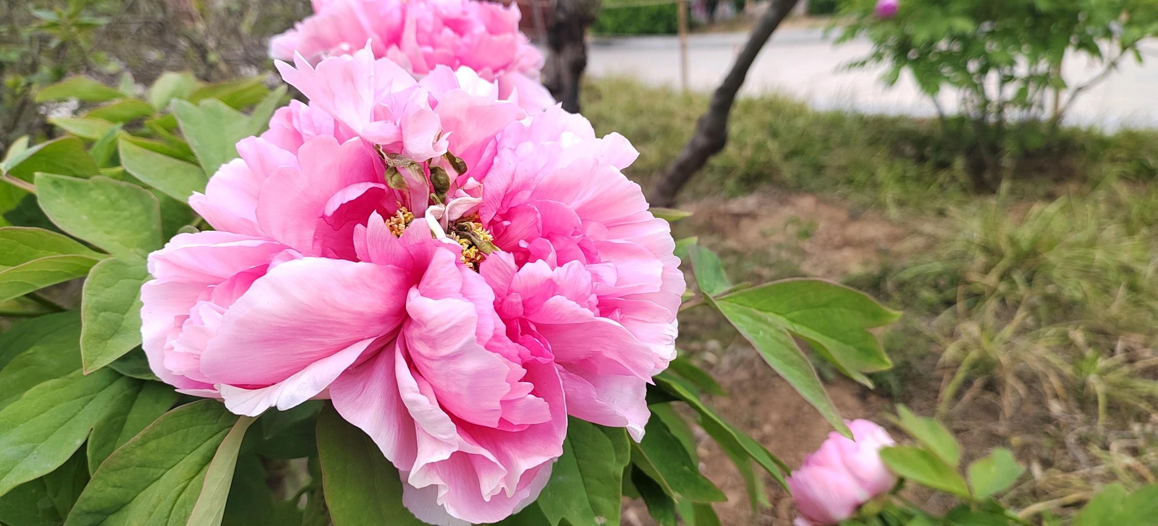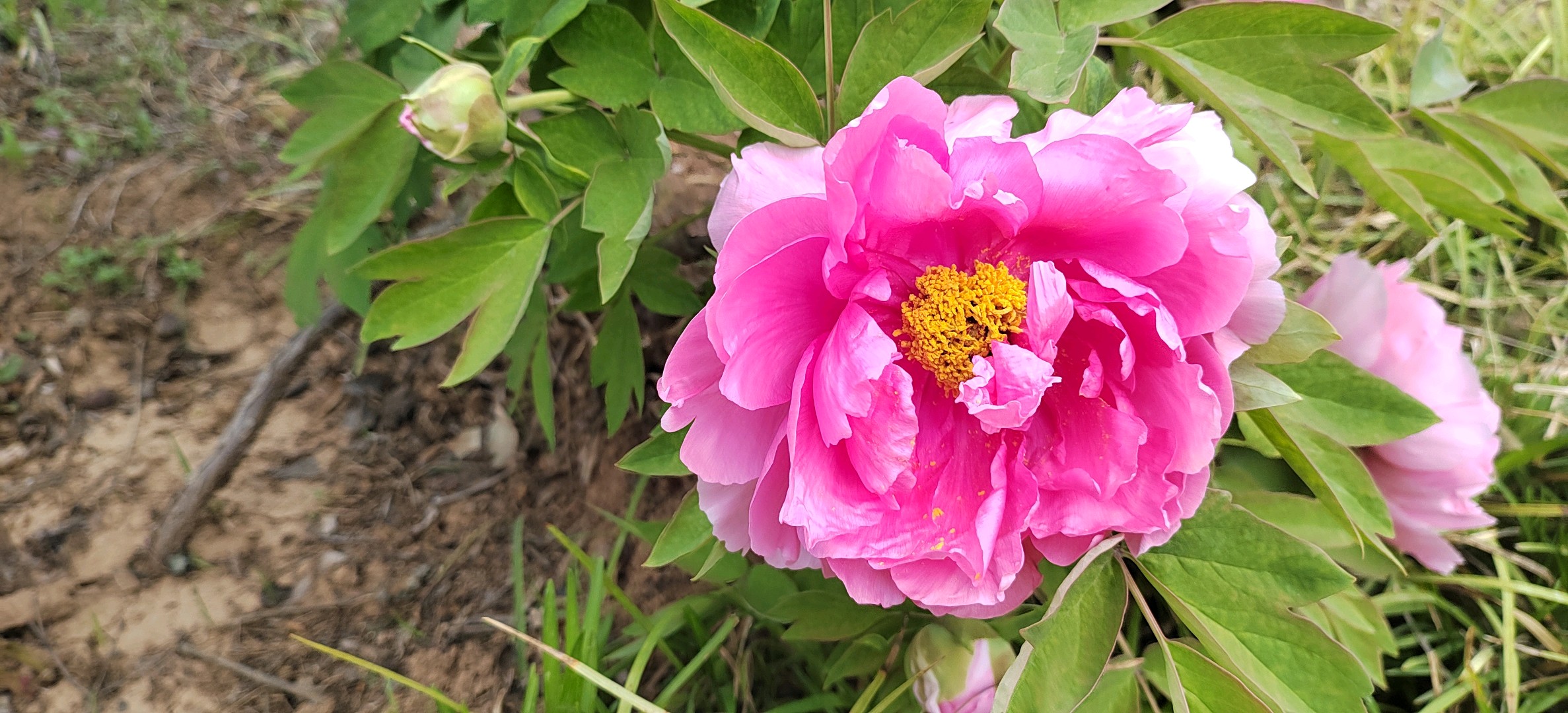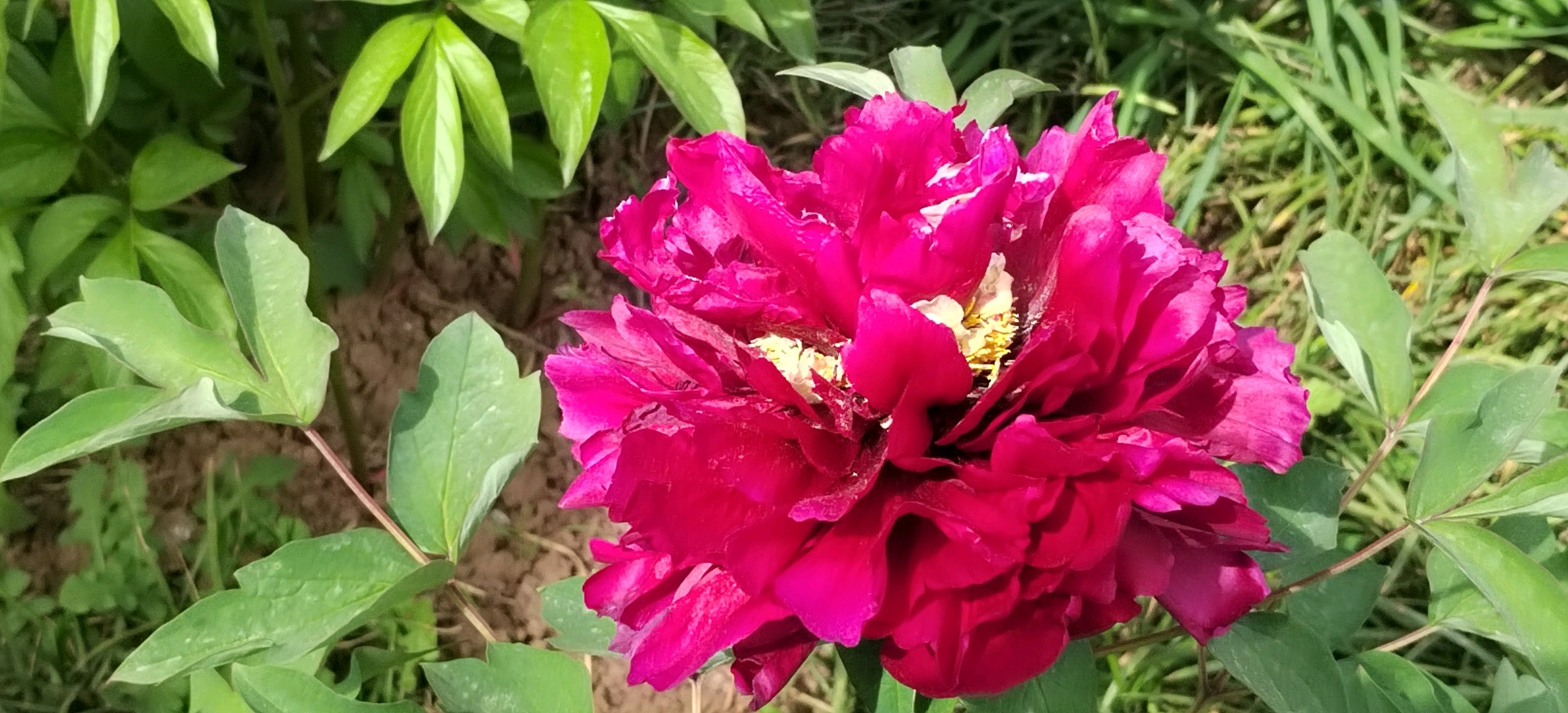 牡丹是芍药科、芍药属多年生落叶灌木,茎高达2米;分枝短而粗。叶通常为二回三出复叶,表面绿色,无毛,背面淡绿色,有时具白粉,叶柄长5-11厘米,和叶轴均无毛。花单生枝顶,苞片5,长椭圆形;萼片5,绿色,宽卵形,花瓣5或为重瓣,玫瑰色、红紫色、粉红色至白色,通常变异很大,倒卵形,顶端呈不规则的波状;花药长圆形,长4毫米;花盘革质,杯状,紫红色;心皮5,密生柔毛。蓇葖长圆形,密生黄褐色硬毛。花期5月;果期6月。花色泽艳丽,玉笑珠香,风流潇洒,富丽堂皇,有“花中之王”的美誉。