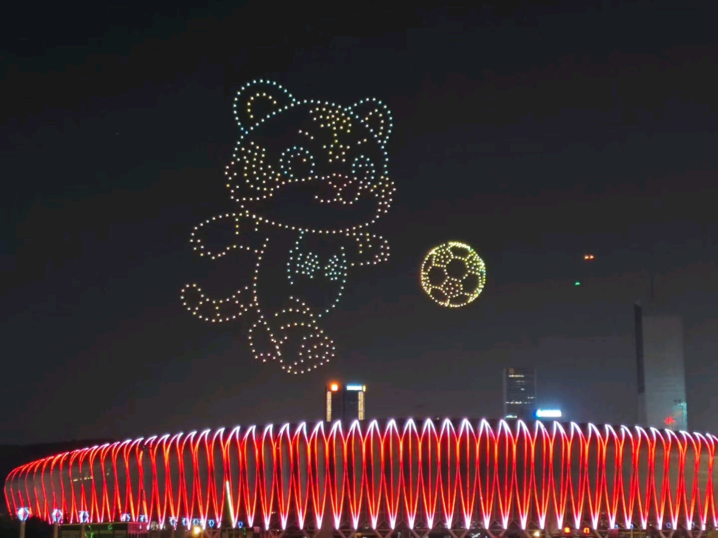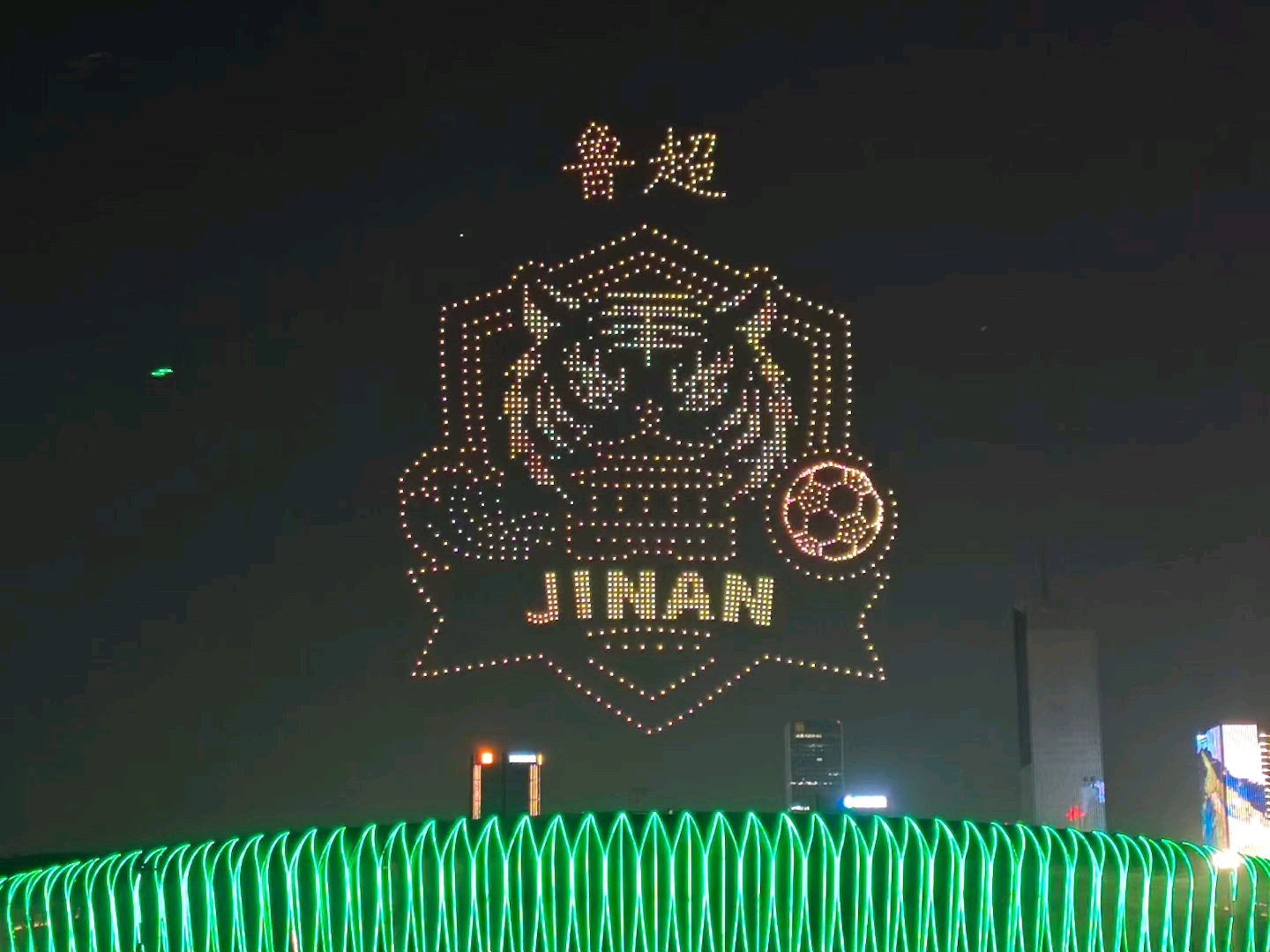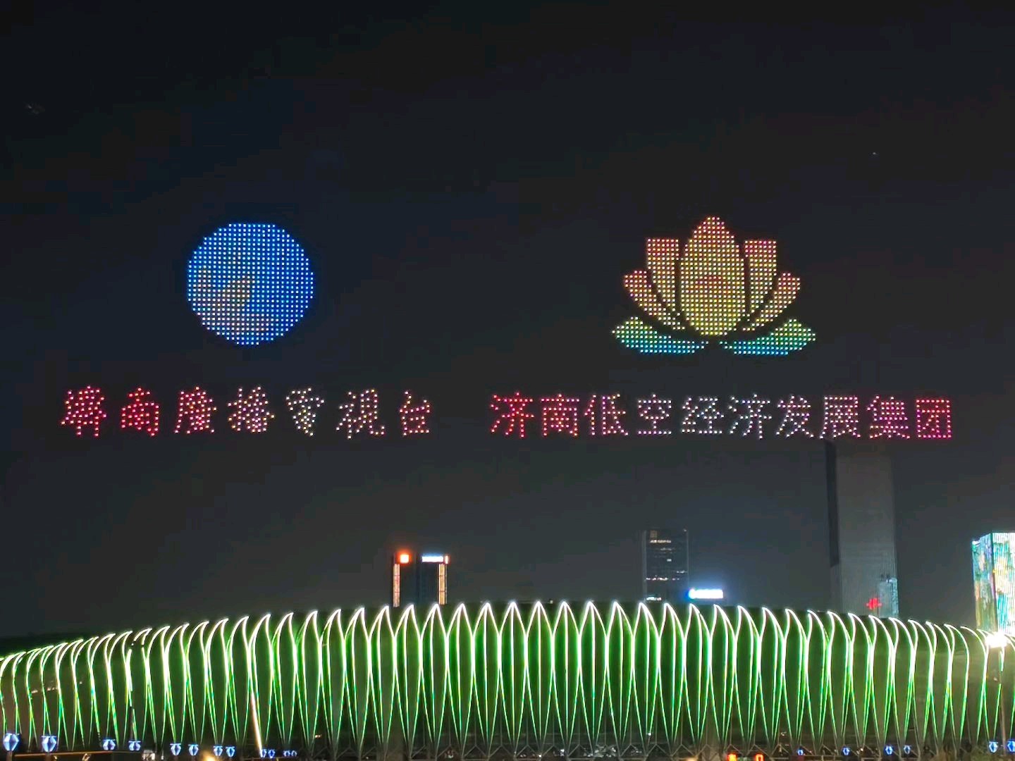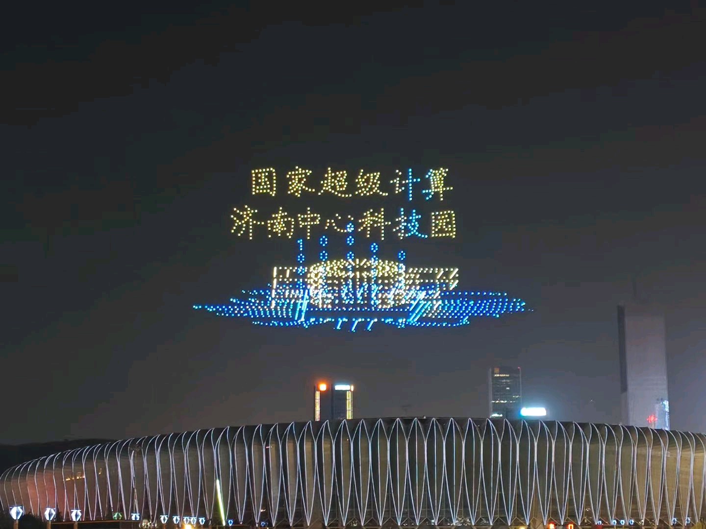 昨天晚上八点,济南奥体中心体育场上空无人机表演!
