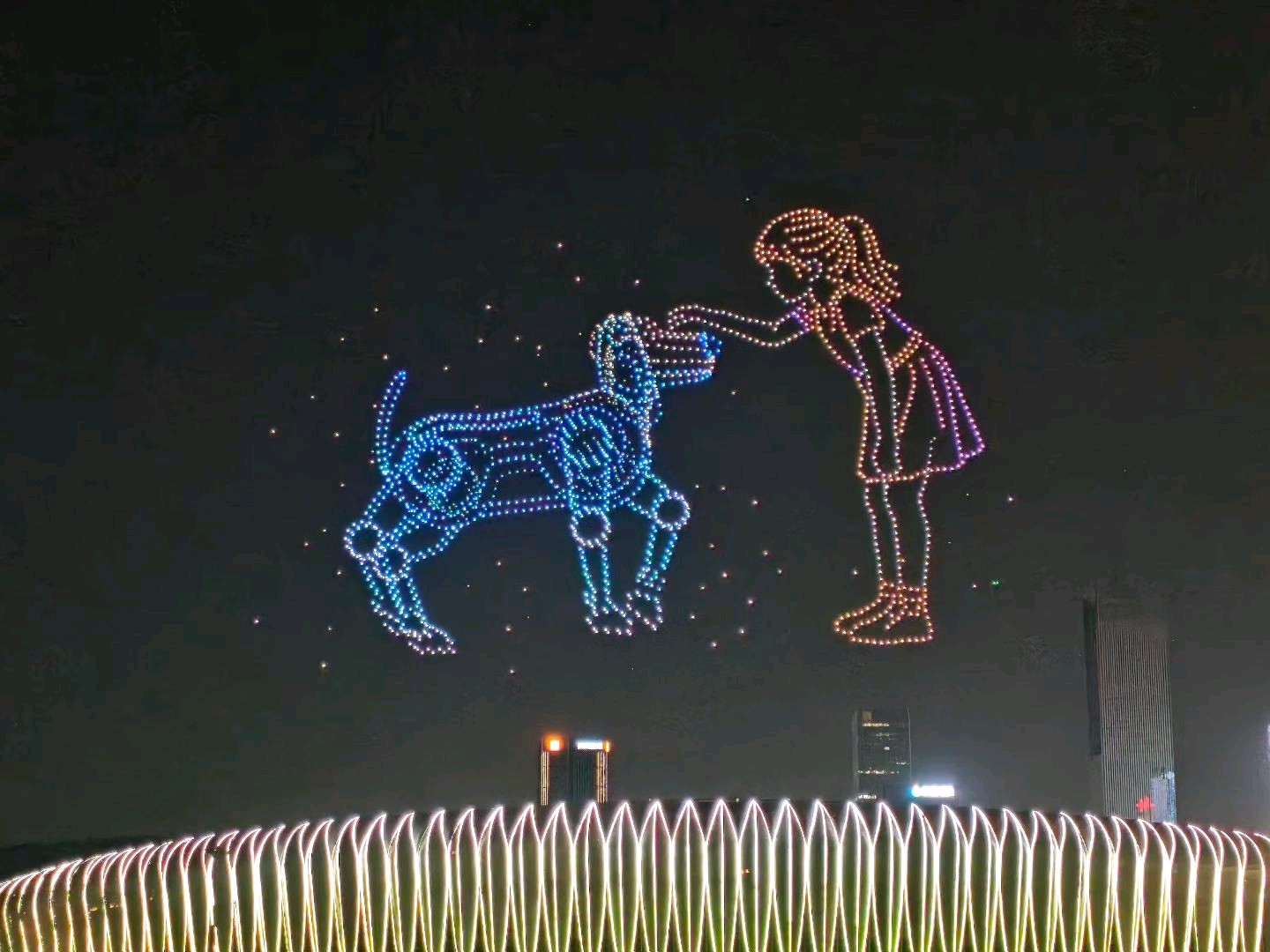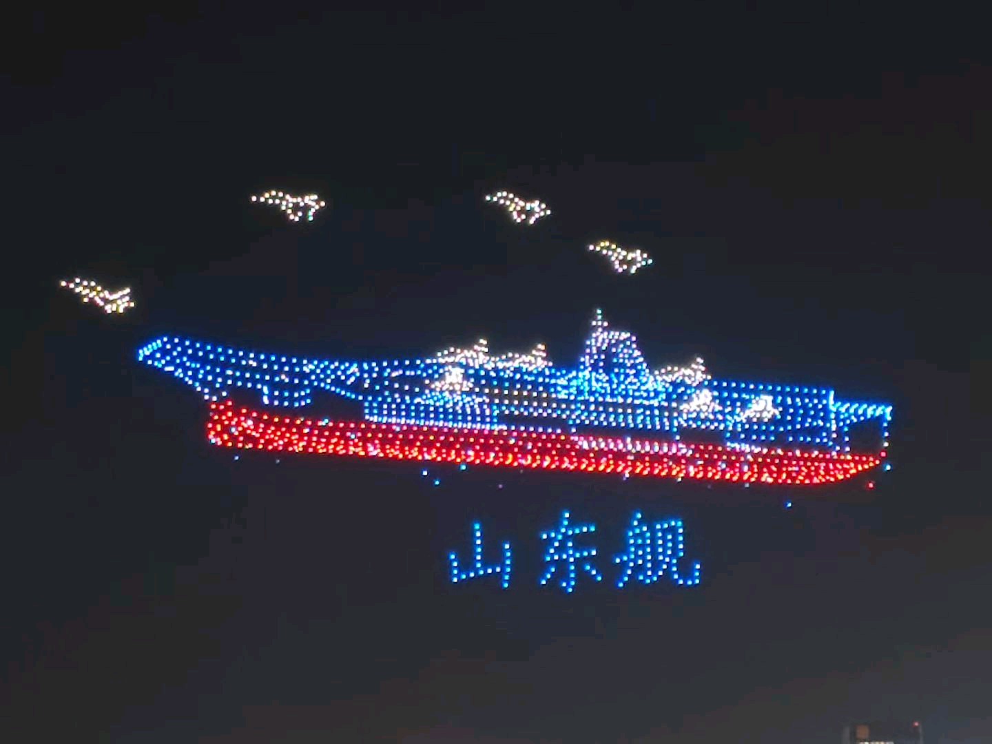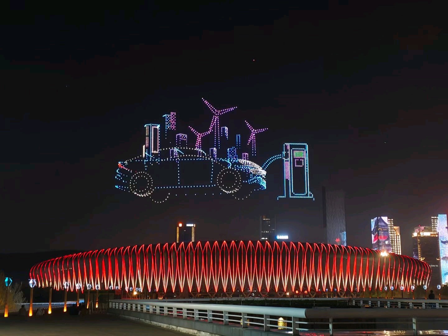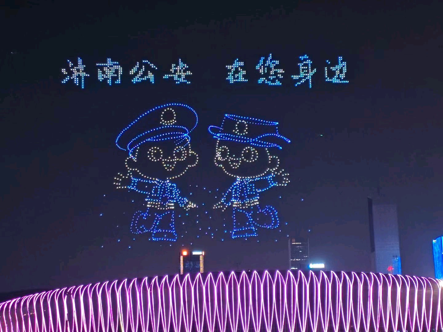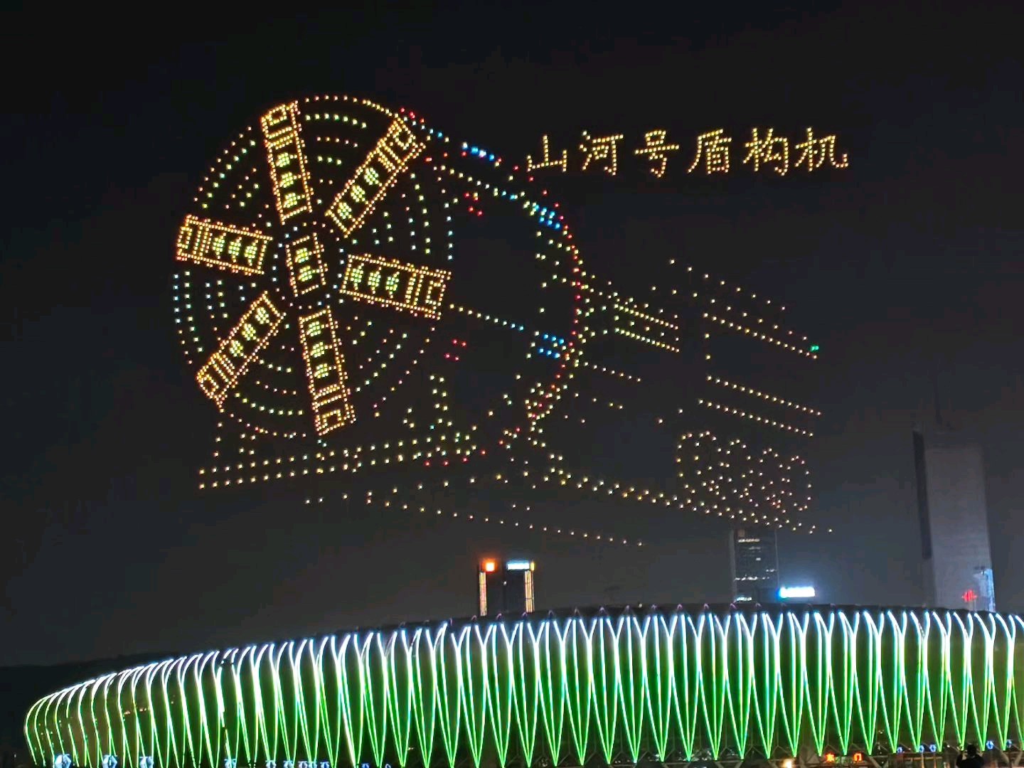 昨天晚上八点,济南奥体中心体育场上空无人机表演!