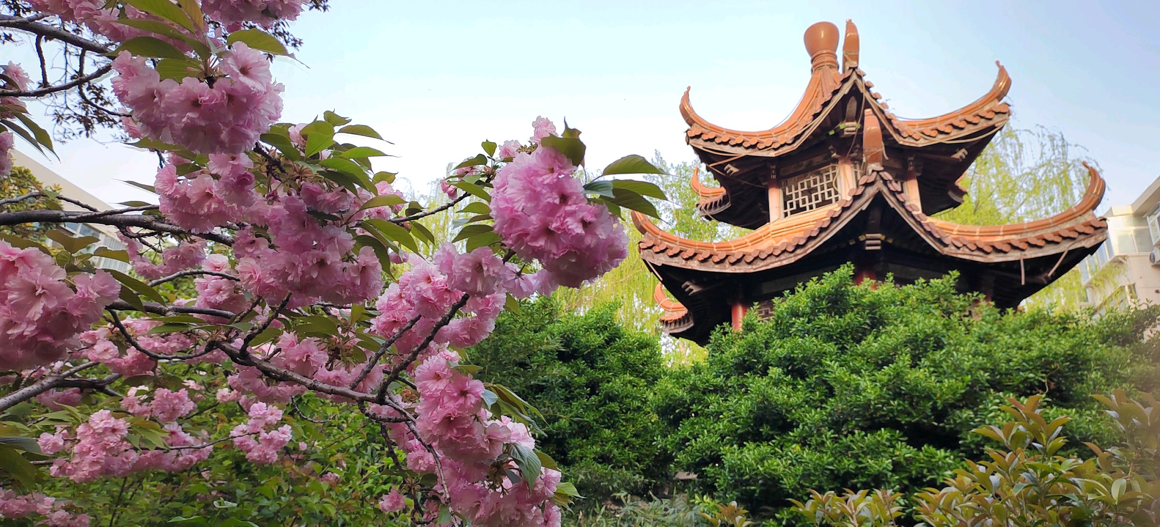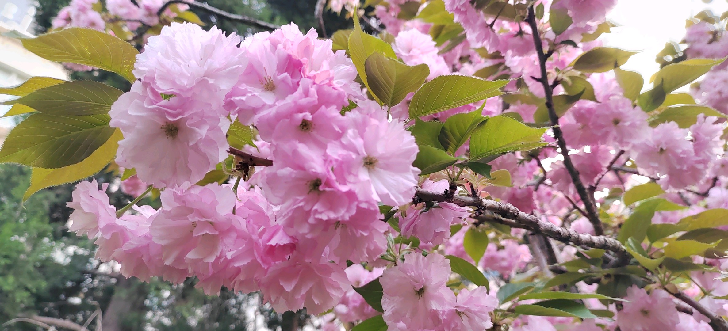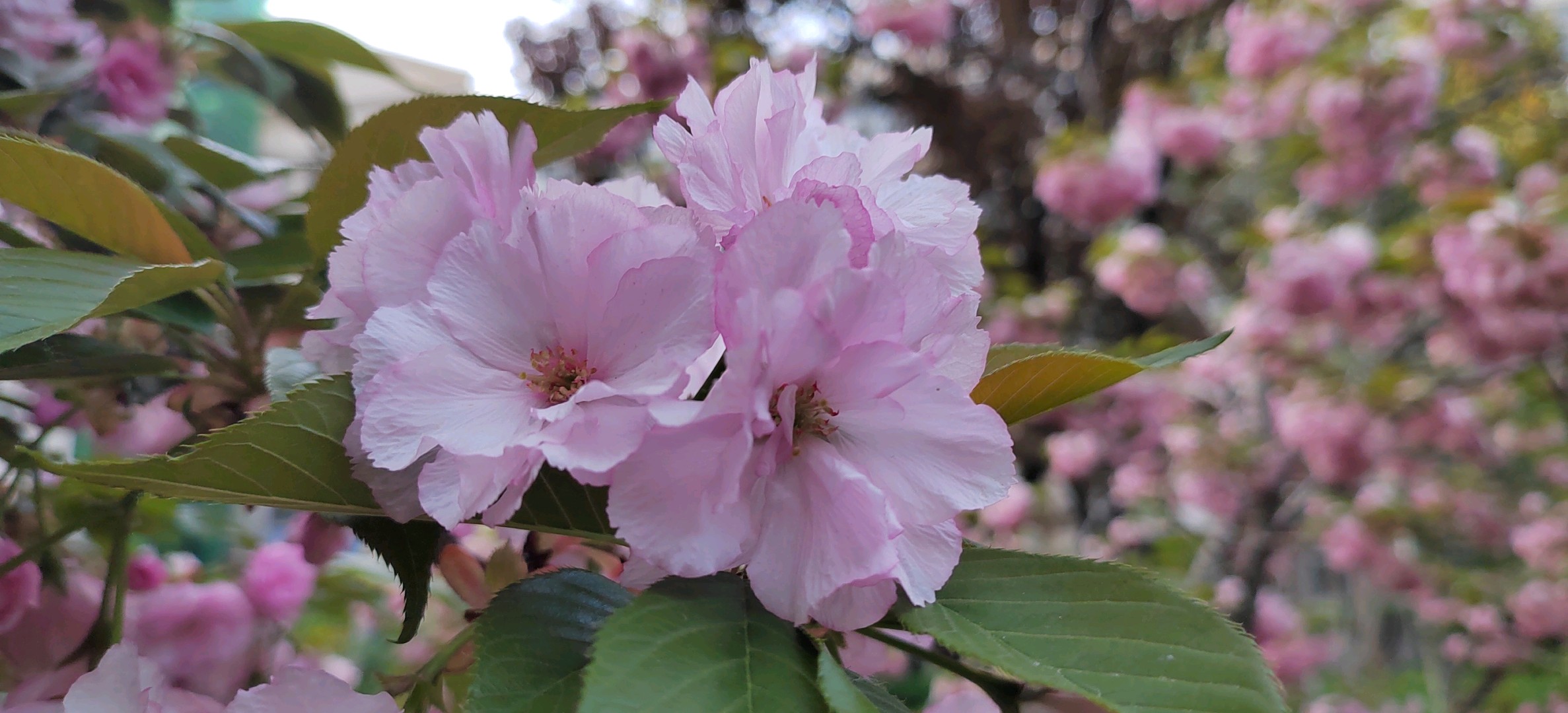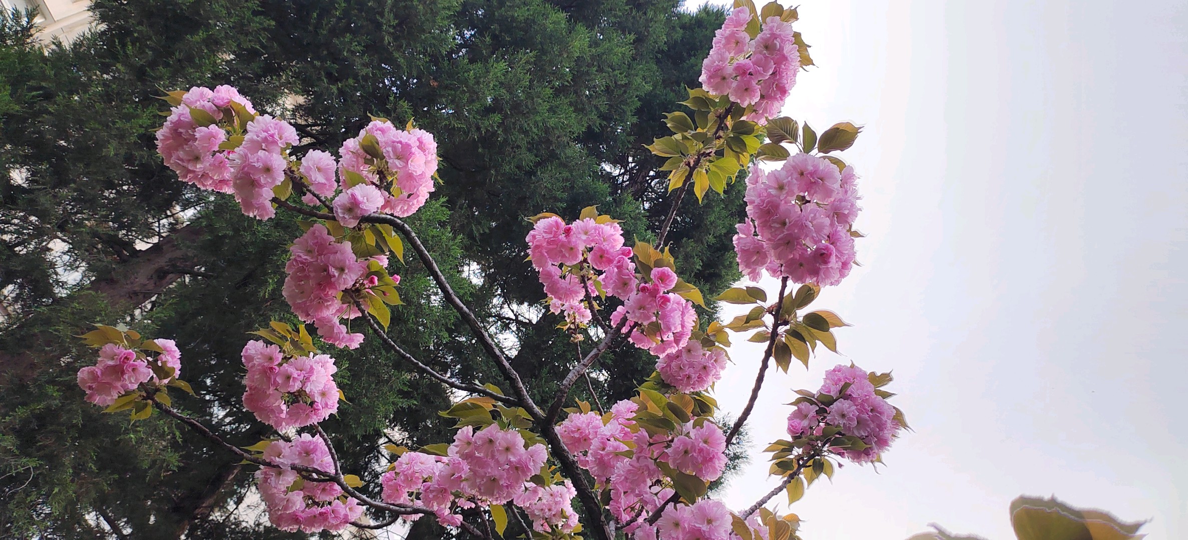 晚樱是蔷薇科李属的落叶乔木植物。小枝粗壮无毛;叶片倒卵形或椭圆形,先端长尾状渐尖,边缘有长芒状重锯齿;花总梗短,有时无总梗,伞房花序,花瓣先端凹形,粉红色或近白色;果卵形成熟时黑色有光泽;花期4月;果期5~6月。