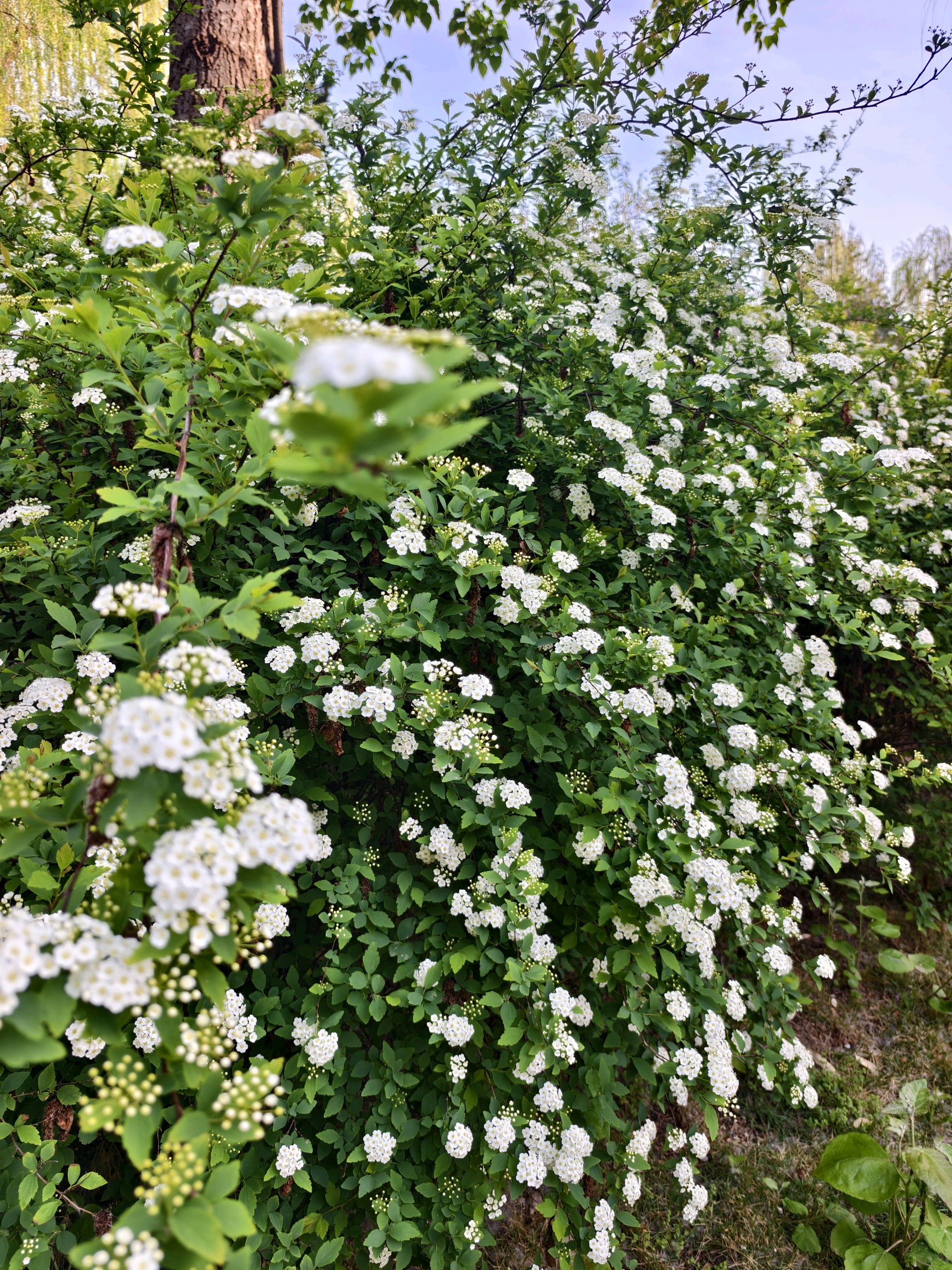 初夏时节的大明湖畔繁华盛开,土庄绣线菊也开了,细碎的小白花密密攒成一团,像落在枝头的雪团。嫩枝上顶着一簇簇白花,土庄绣线菊不张扬,却开得热闹又温柔。 细碎花瓣轻轻舒展,土庄绣线菊一丛丛绽放,满枝都是清淡的香气 ,微风拂过,土庄绣线菊的花簇轻轻摇晃,像撒在绿叶间的点点星光。景色十分迷人