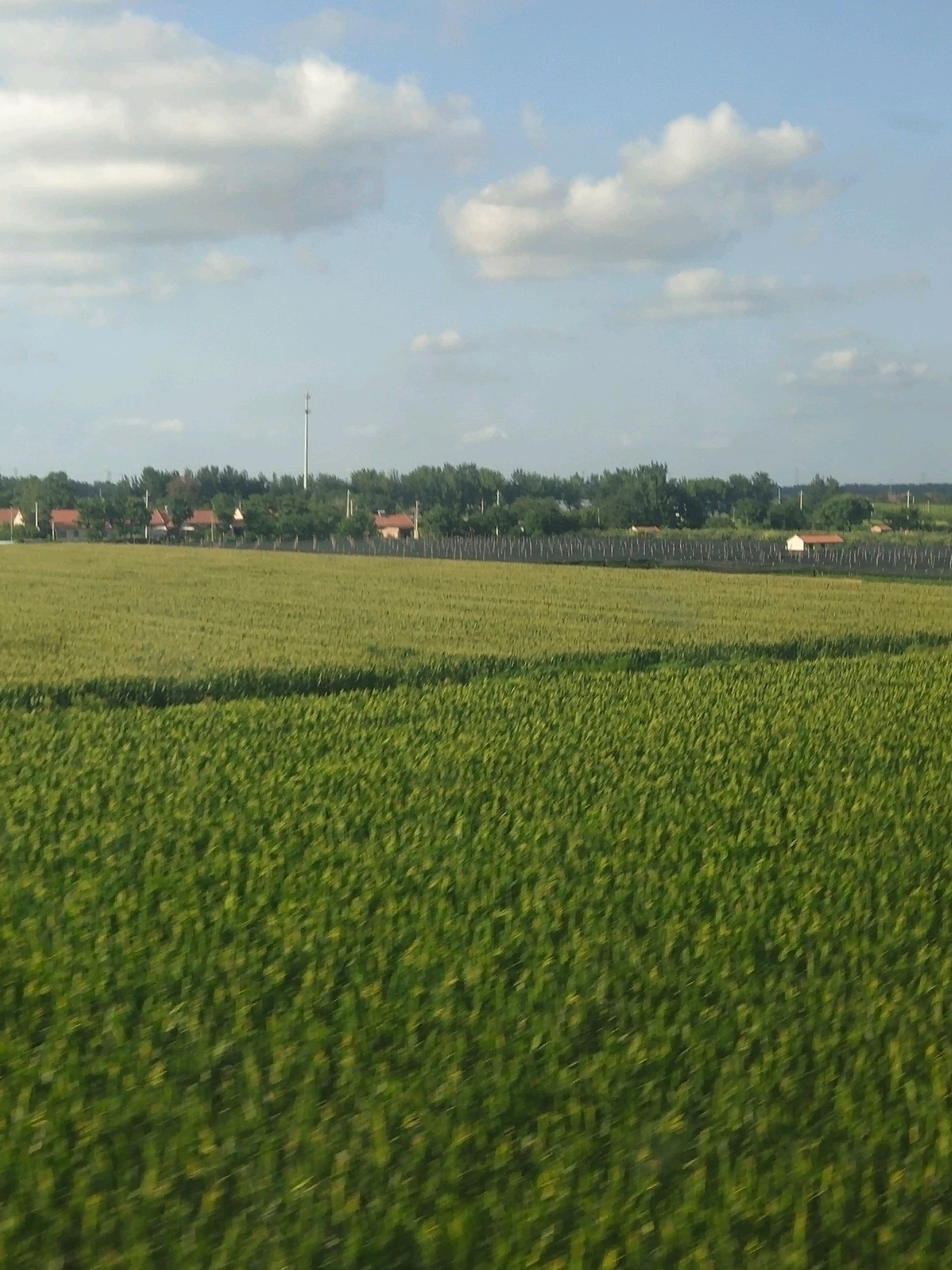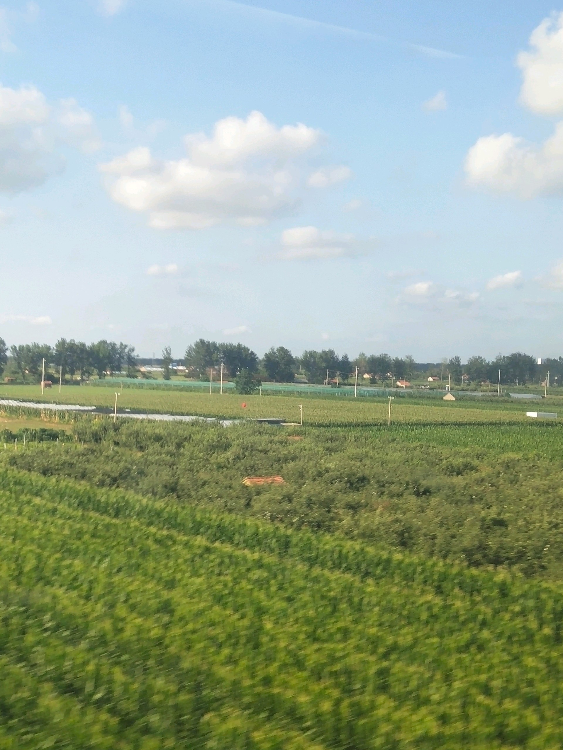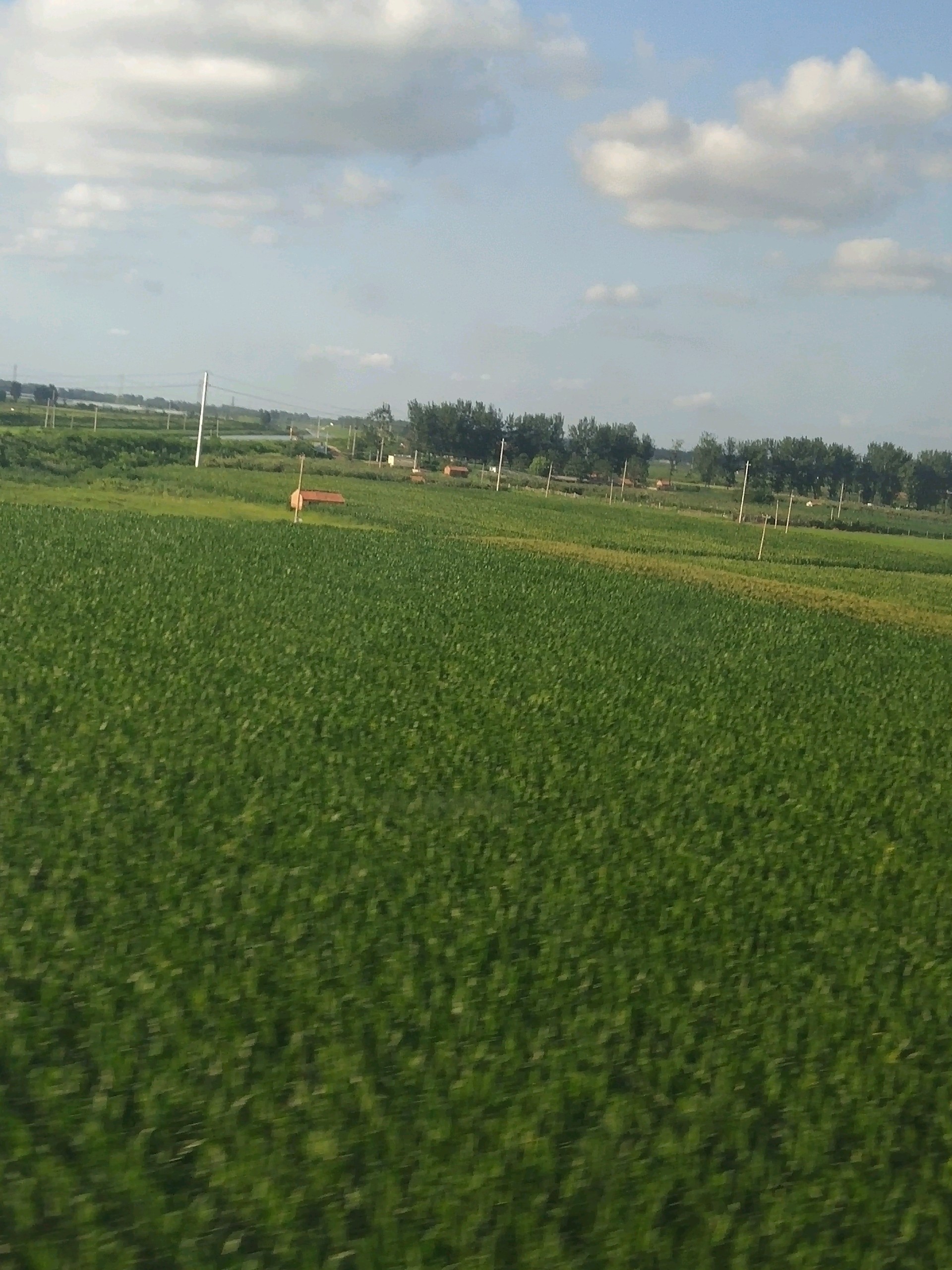 机场路两旁一望无际的绿色田野宽阔无垠。