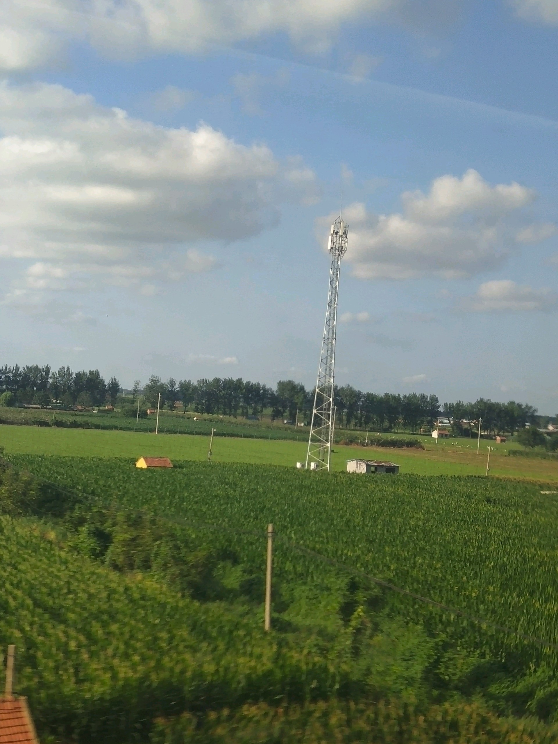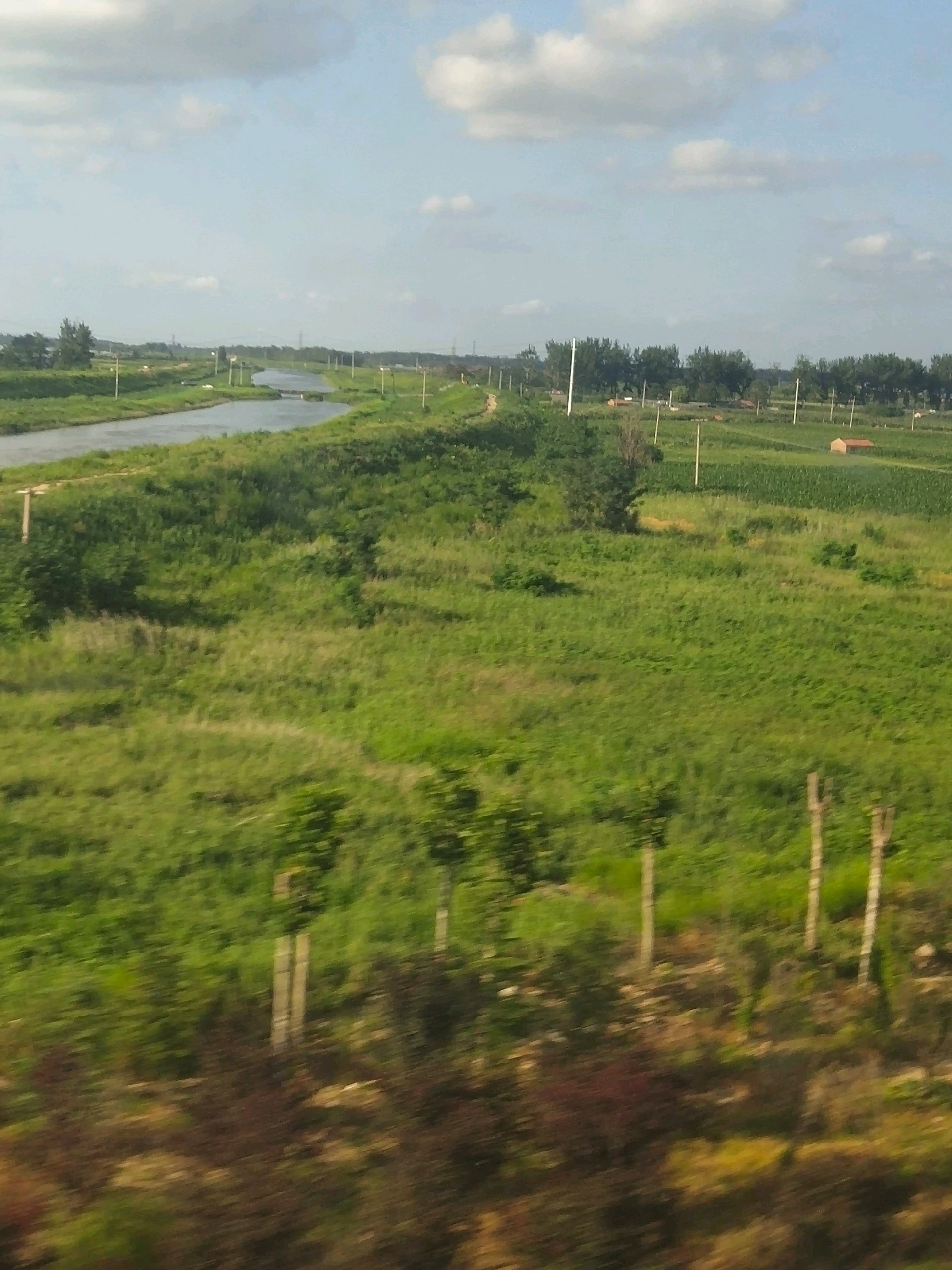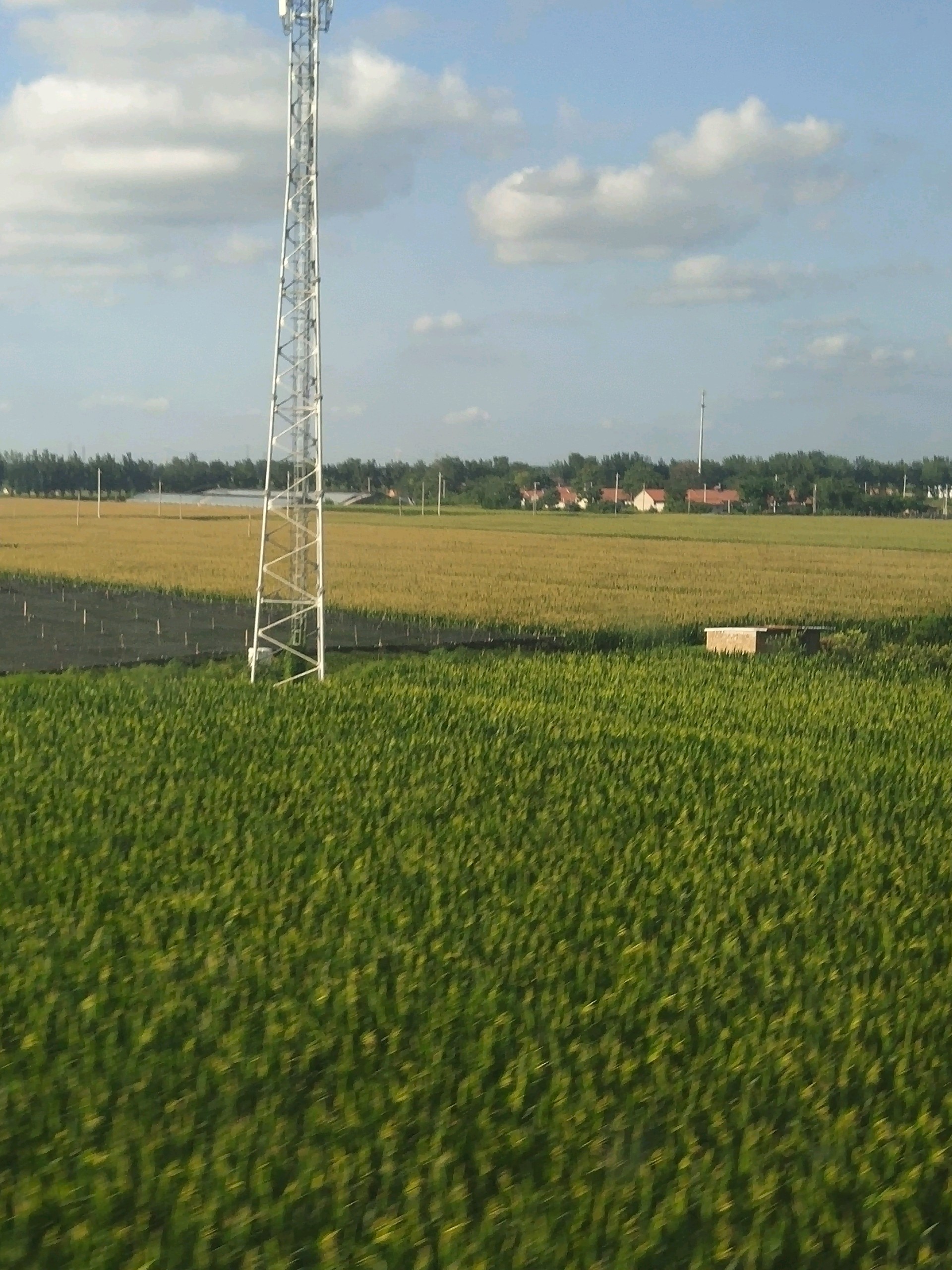 机场路两旁一望无际的绿色田野宽阔无垠。
