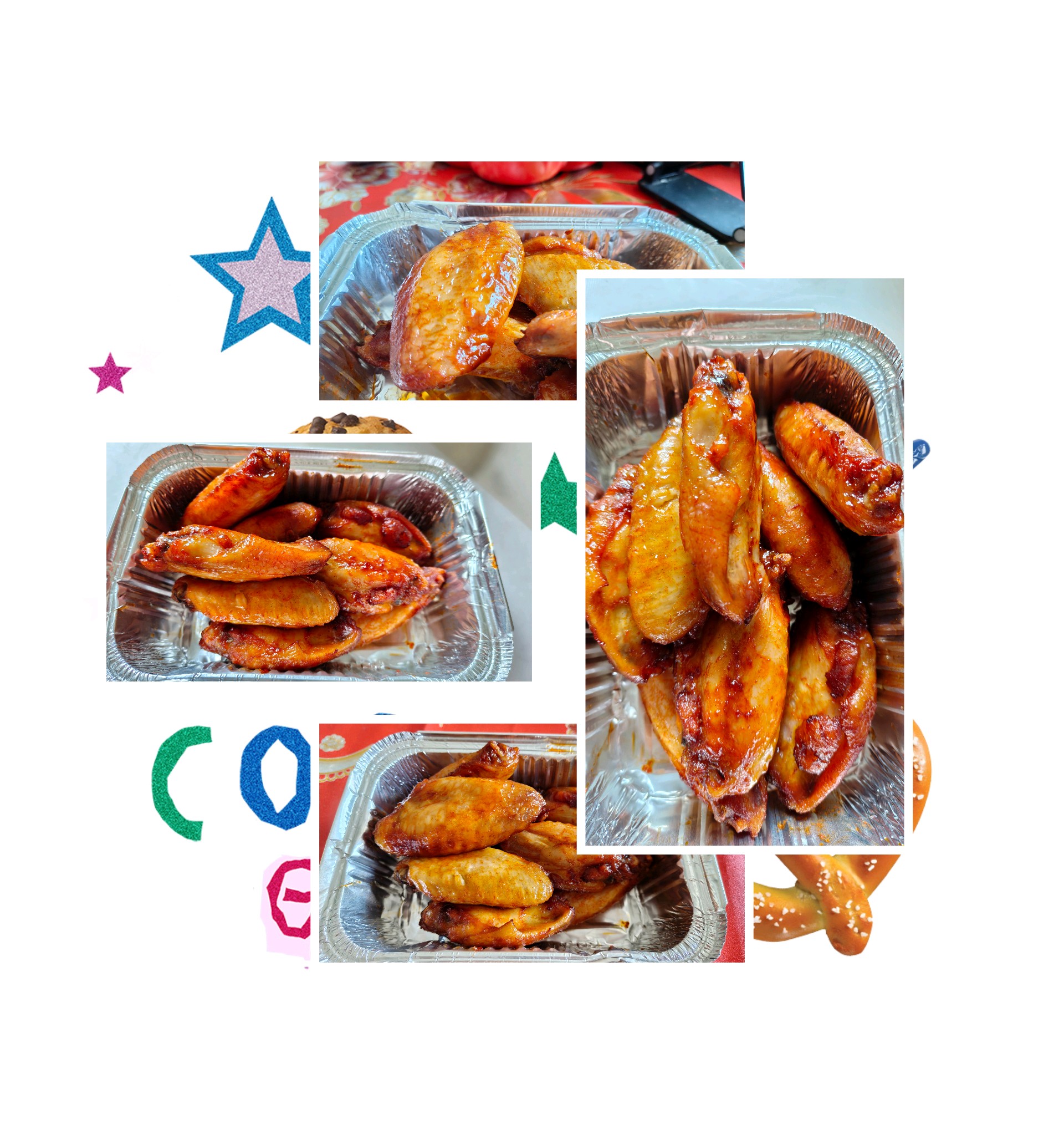 周末清晨,阳光软软的,给宝贝姐俩准备了有点腻又格外甜美的早餐。知道俩小家伙最馋烤鸡翅和披萨,就算热量高高,姥姥也心甘情愿投其所好,看着你们吃得满足,就是最开心的小事啦。