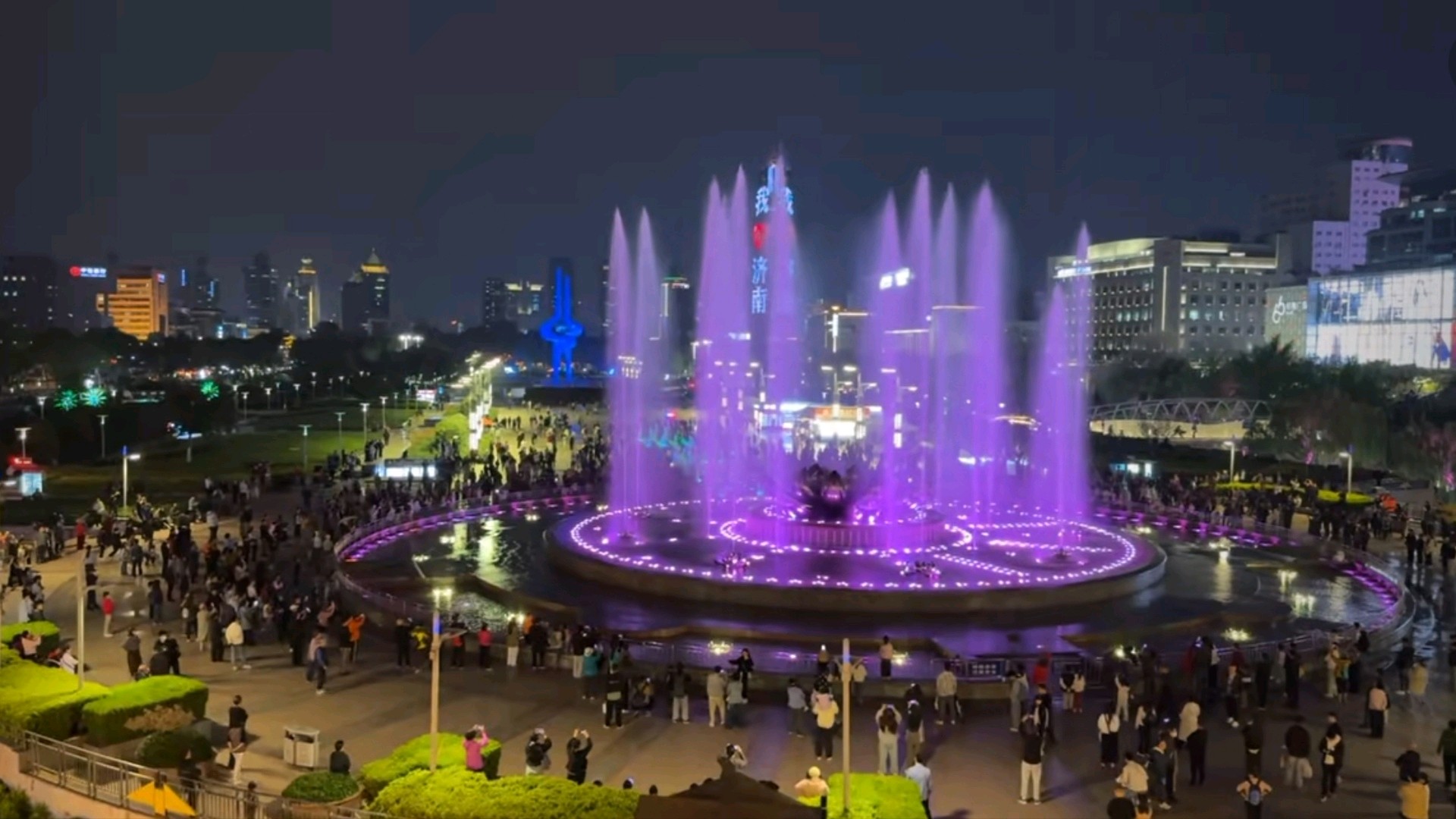 随着一首首耳熟能详的歌曲旋律,泉城广场音乐喷泉就跳起欢乐的舞姿,在五彩灯光的映衬下,喷泉穿上五彩缤纷的绚丽纱裙,喷出多彩多姿的美丽画面,引得路人纷纷拿出手机,留下着美丽的瞬间。