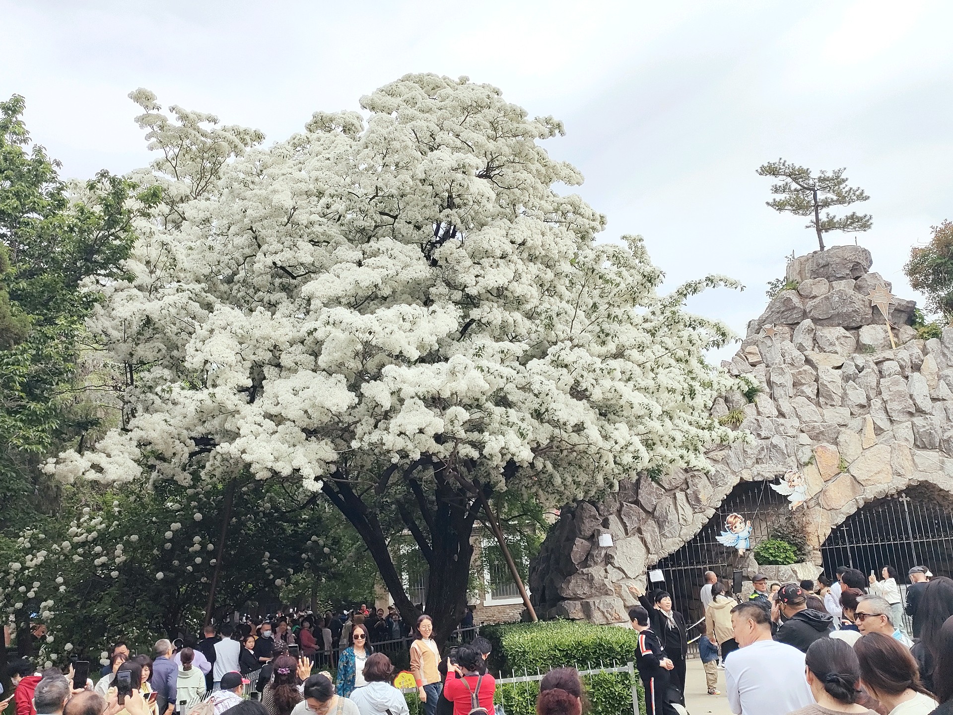 济宁戴庄医院的流苏进入了盛花期,医院门口非常贴心的设置了路标,树下人山人海,都是赏花人