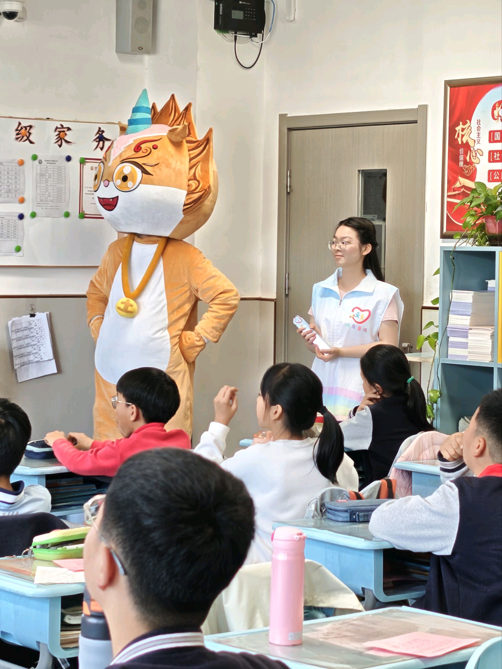 宣讲现场秩序井然、氛围热烈,学生参与积极性高涨,踊跃参与互动问答、情景演练等环节,结合自身校园生活经历提出相关疑问。志愿服务队成员秉持专业严谨的态度,对学生提出的问题逐一进行规范解答,既精准传递了法律知识要义,也以实际行动践行了“奉献、友爱、互助、进步”的志愿精神,实现了法治教育与志愿服务的深度融合。