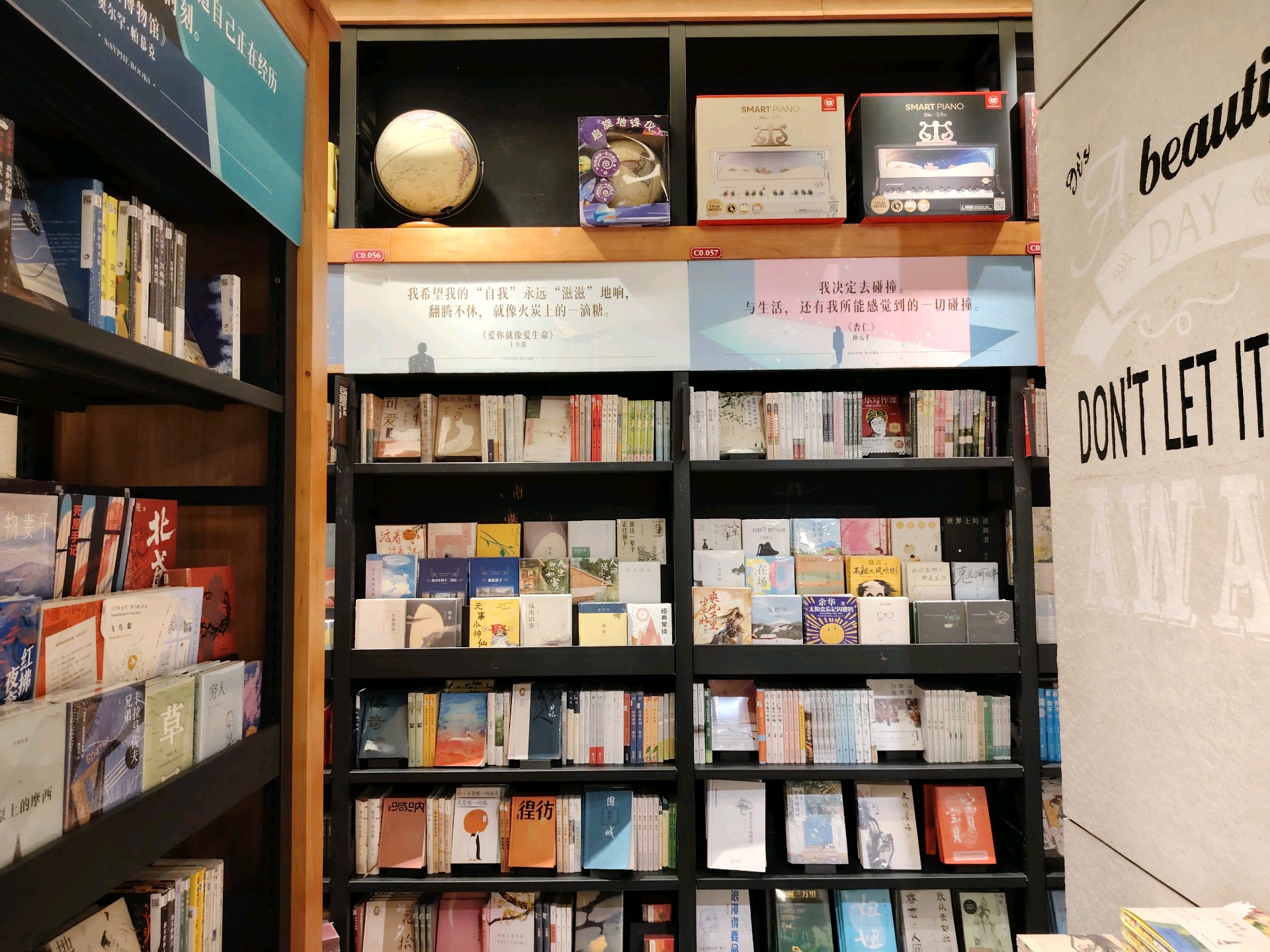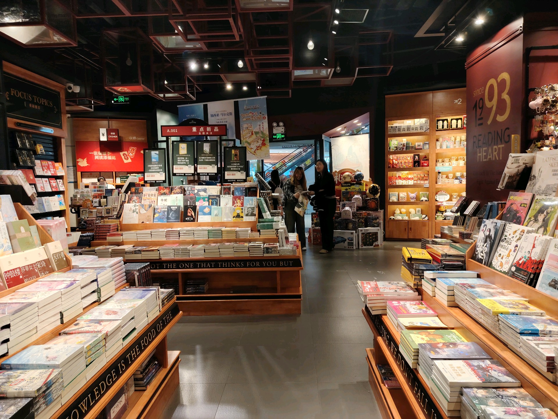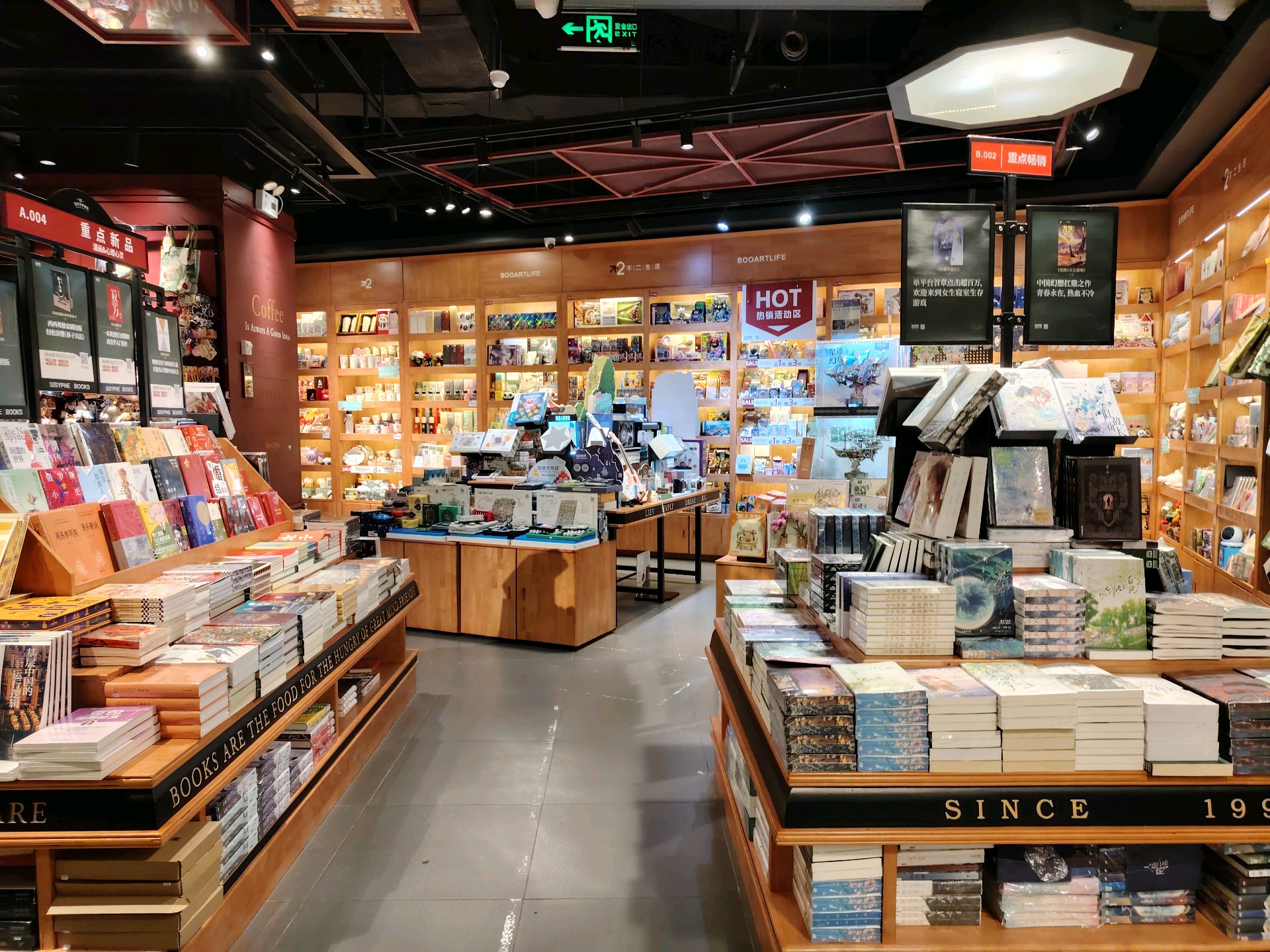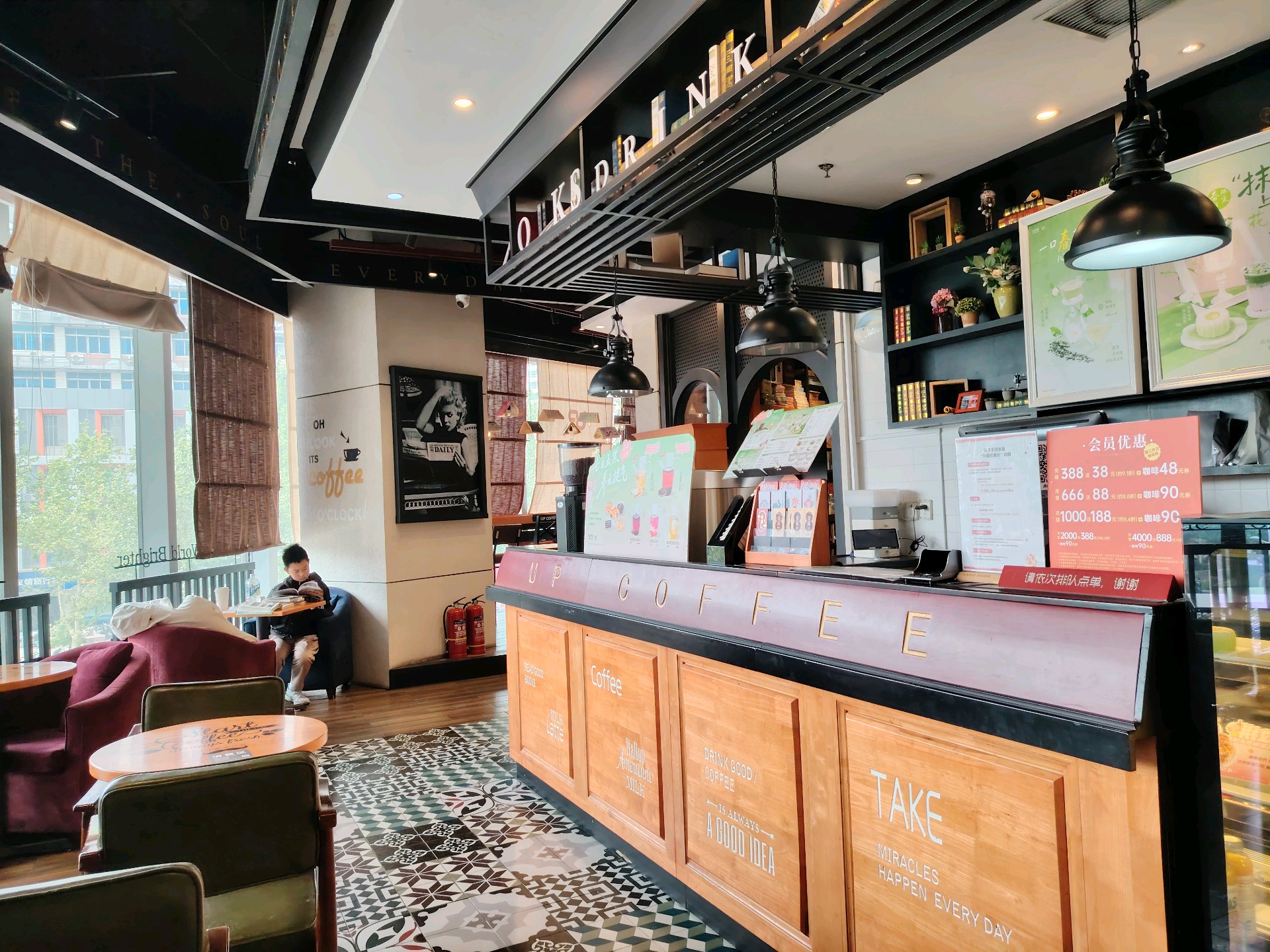 午后的书店安静,书架上各种书有序分类摆放着,目不暇接,三两年轻人在选书,累了就在里间书吧小憩。