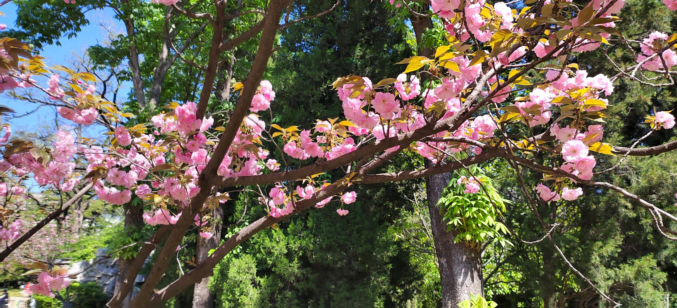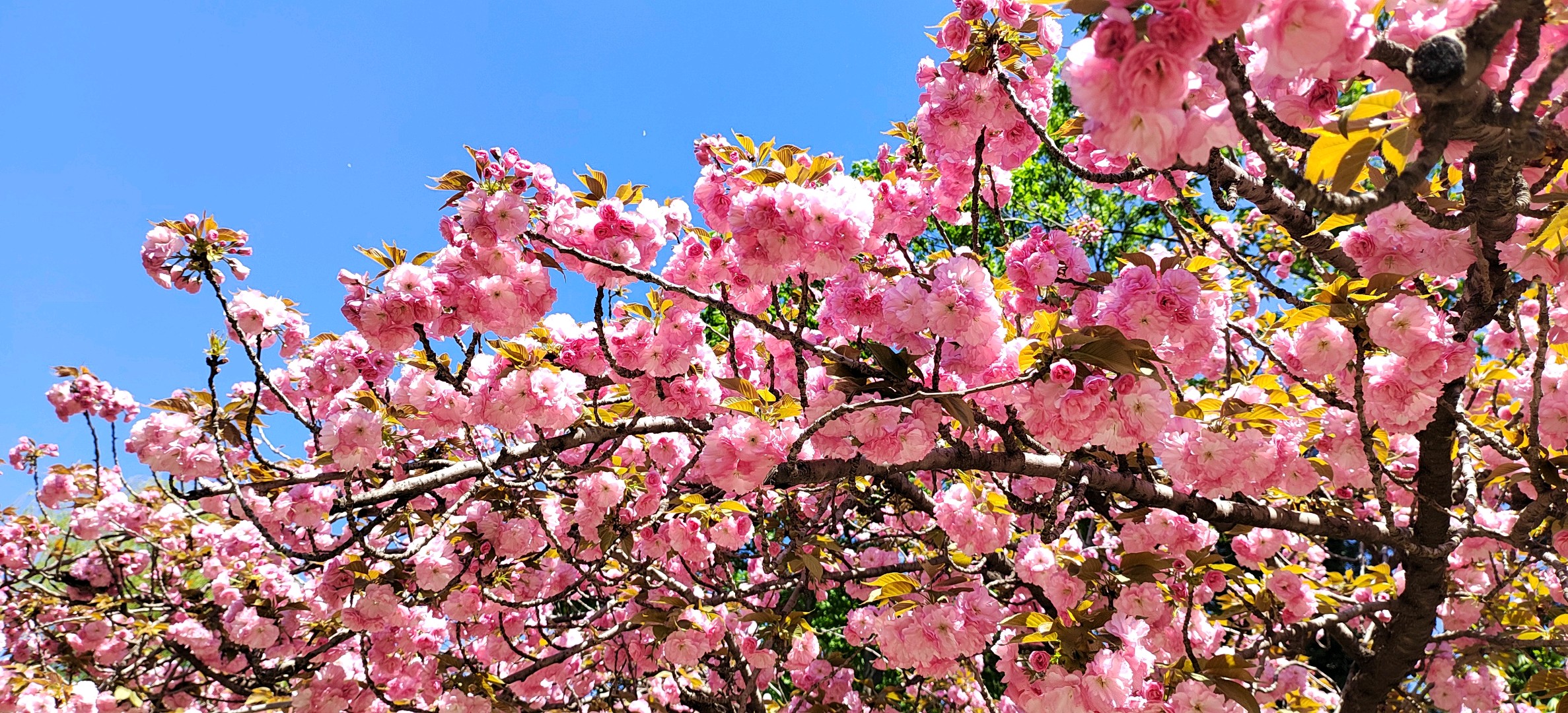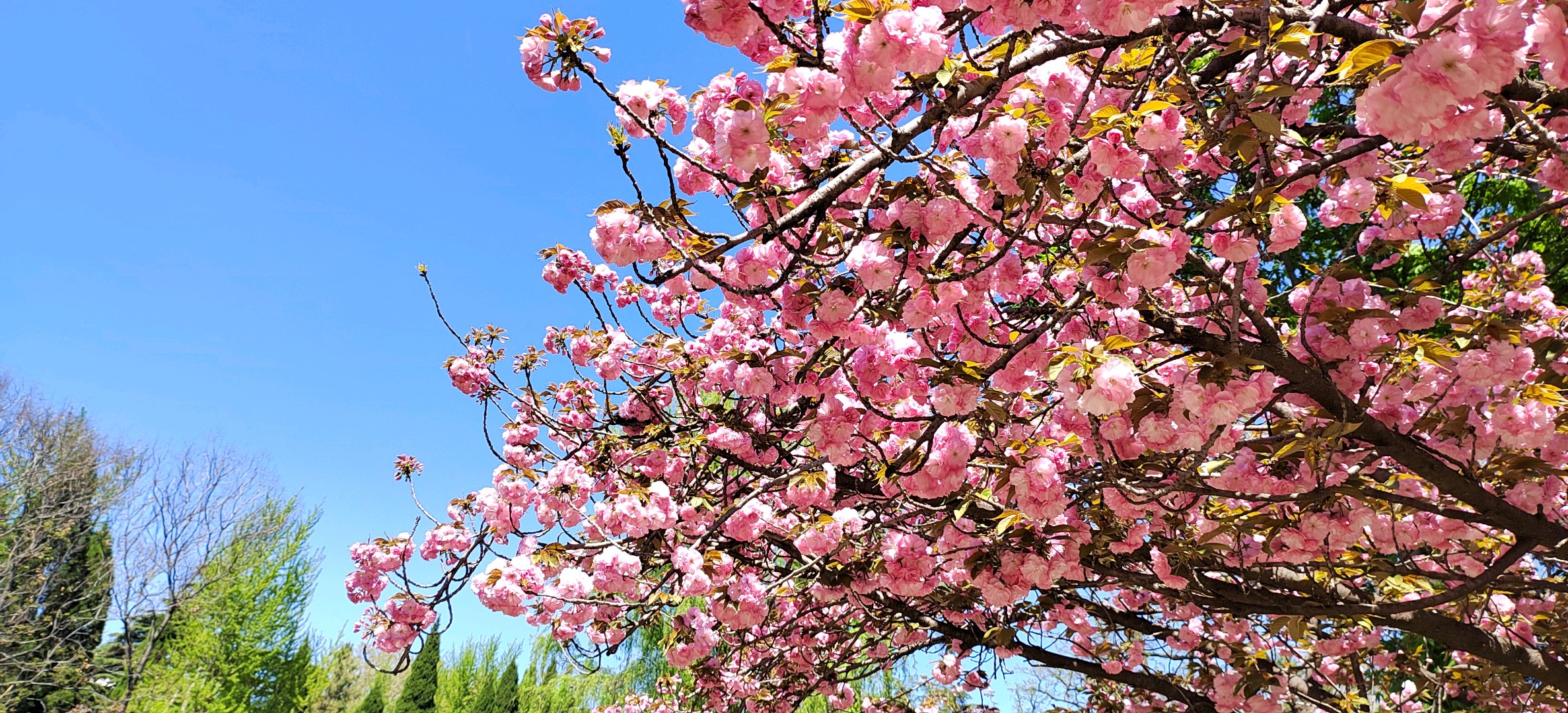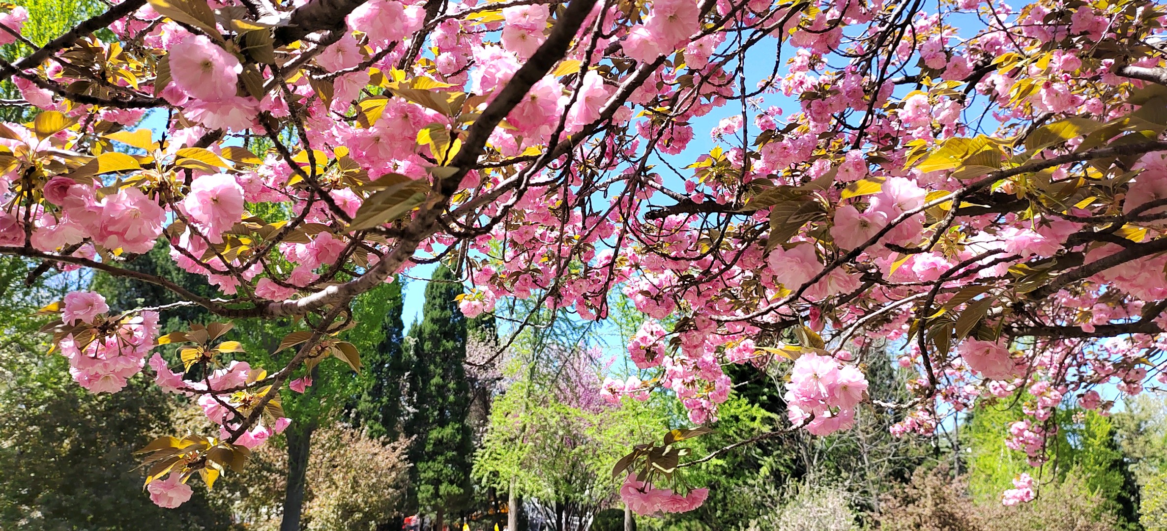 晚樱是蔷薇科李属的落叶乔木植物。小枝粗壮无毛;叶片倒卵形或椭圆形,先端长尾状渐尖,边缘有长芒状重锯齿;花总梗短,有时无总梗,伞房花序,花瓣先端凹形,粉红色或近白色;果卵形成熟时黑色有光泽;花期4月;果期5~6月。