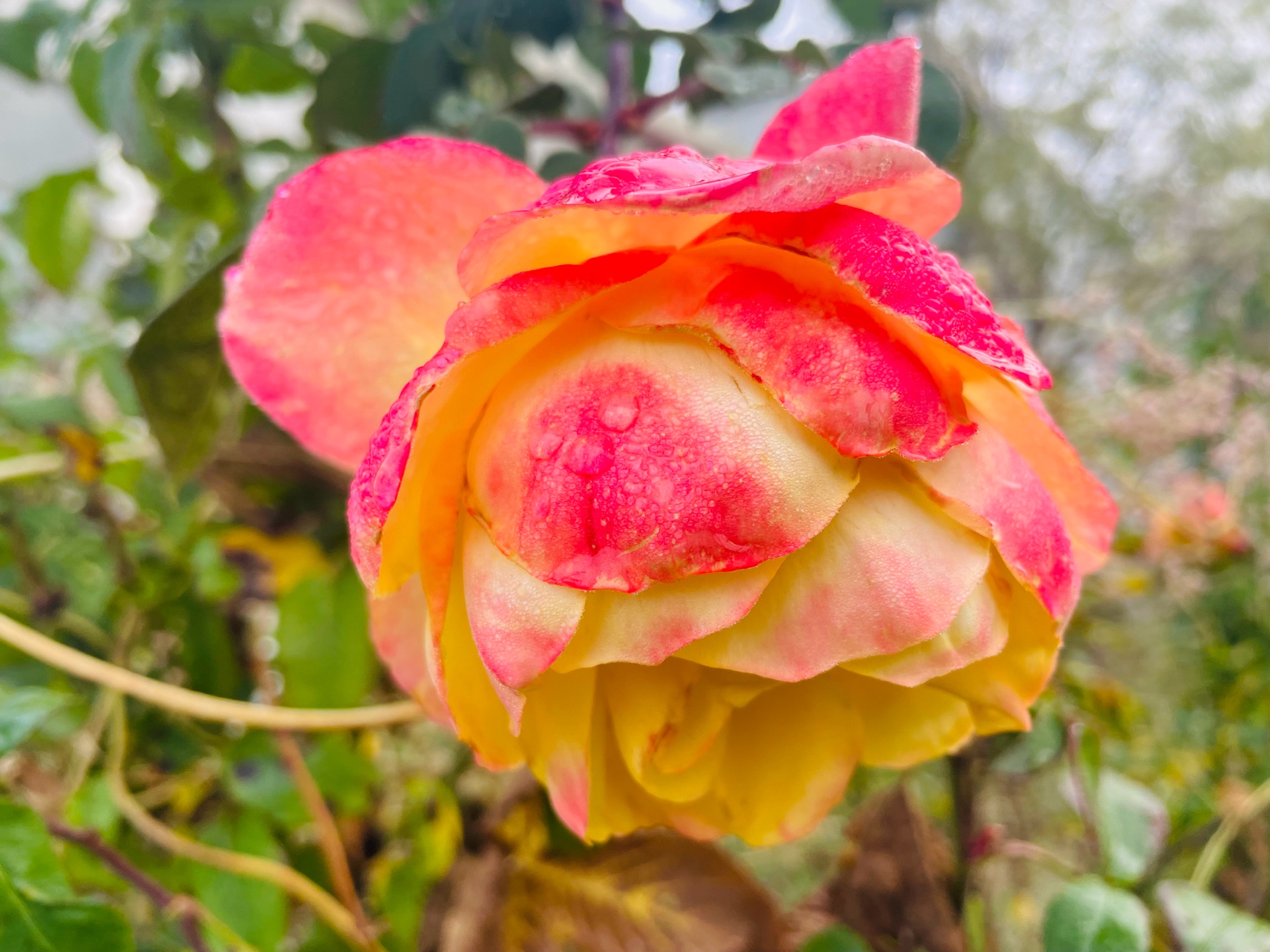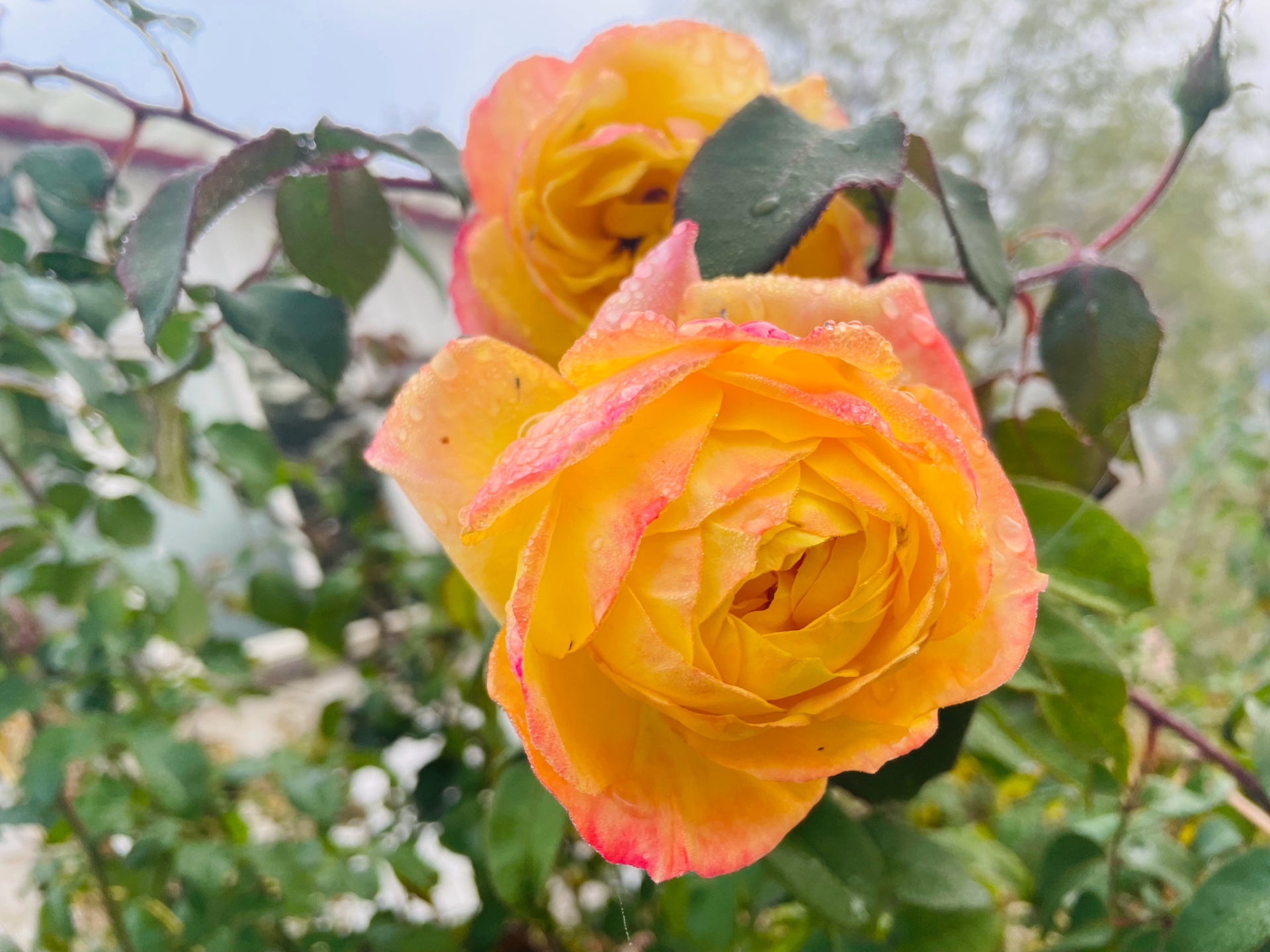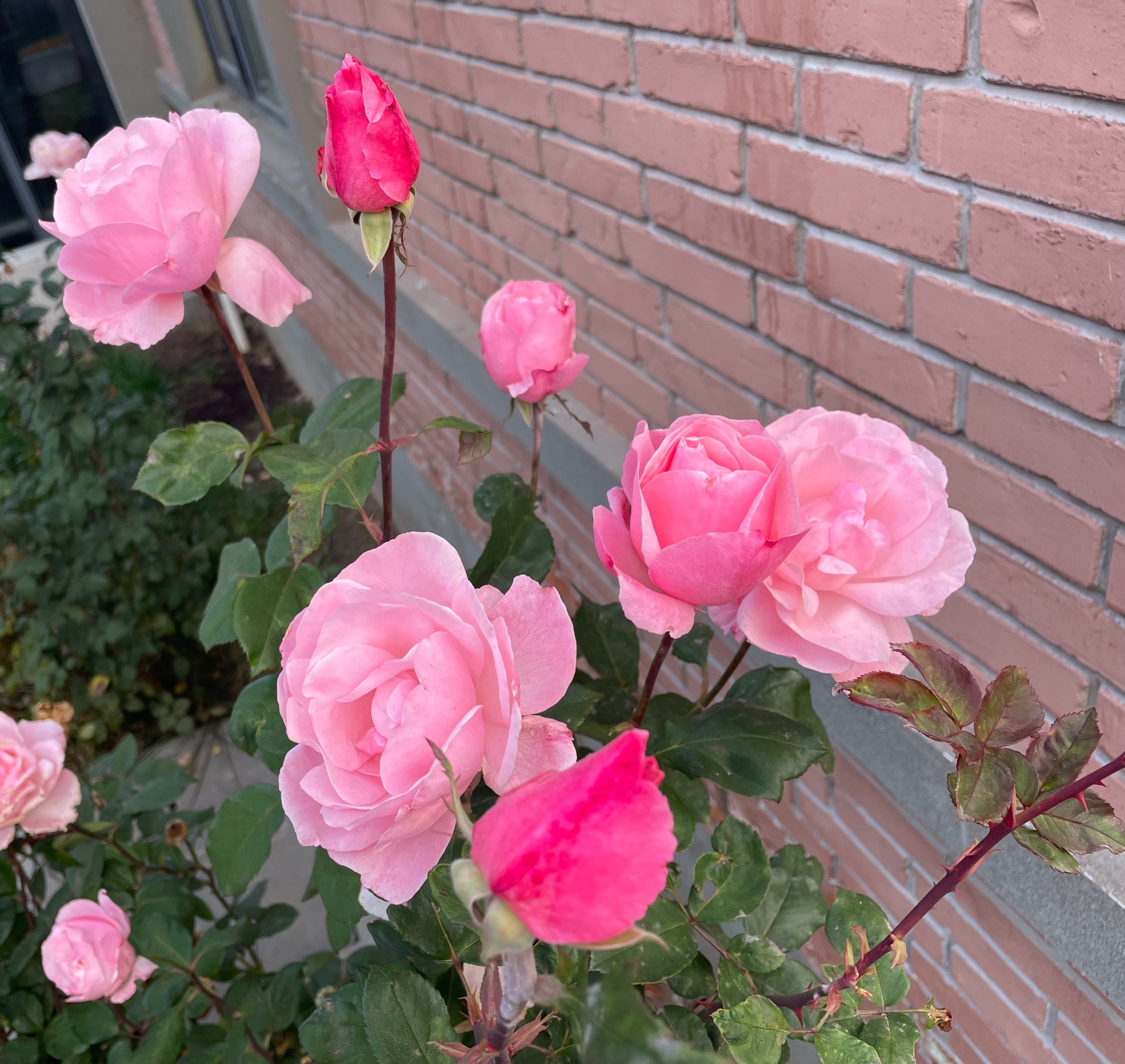已是初冬时节,还寒乍暖,不畏霜冻,月季花依然开得灿烂。