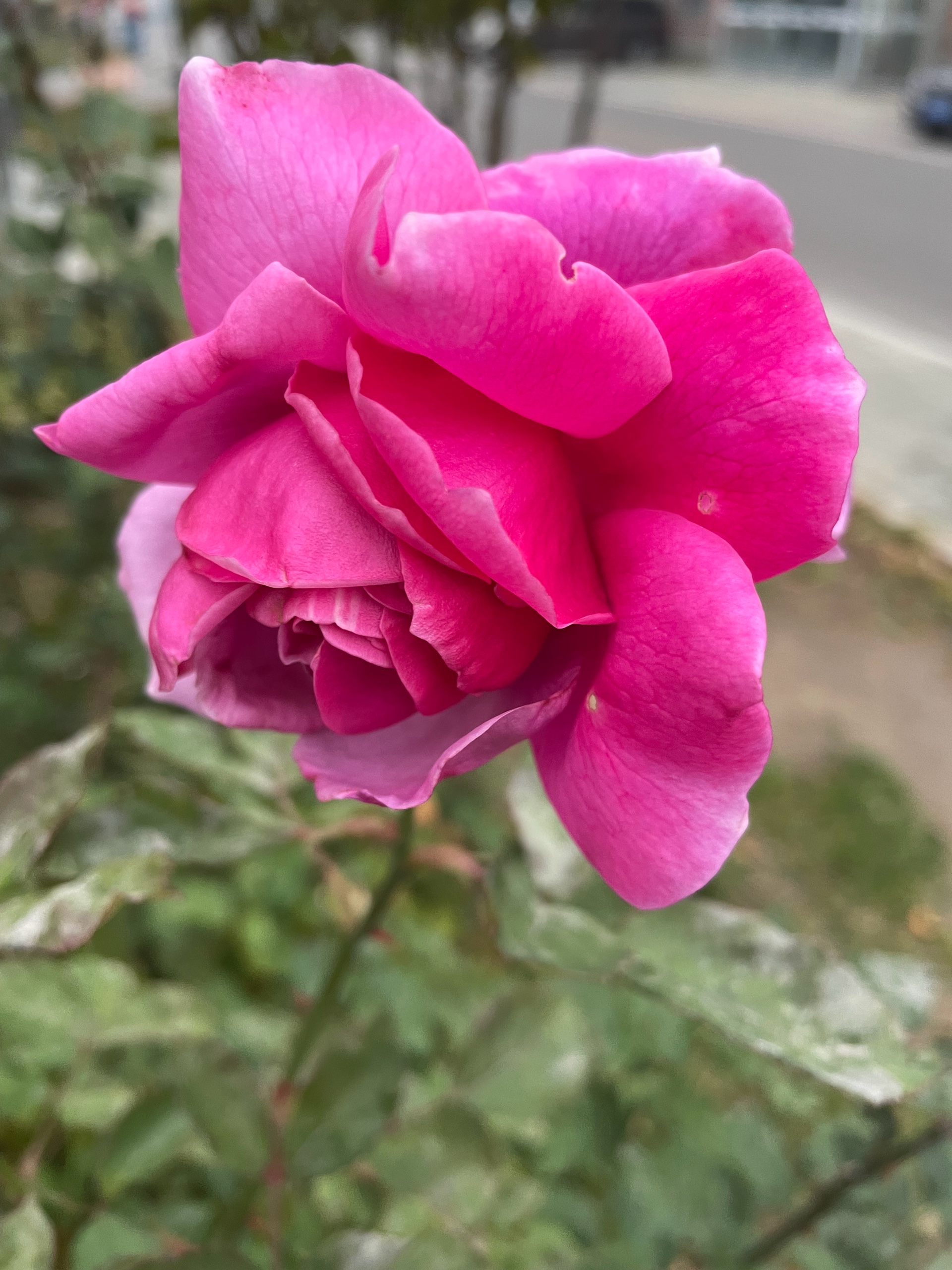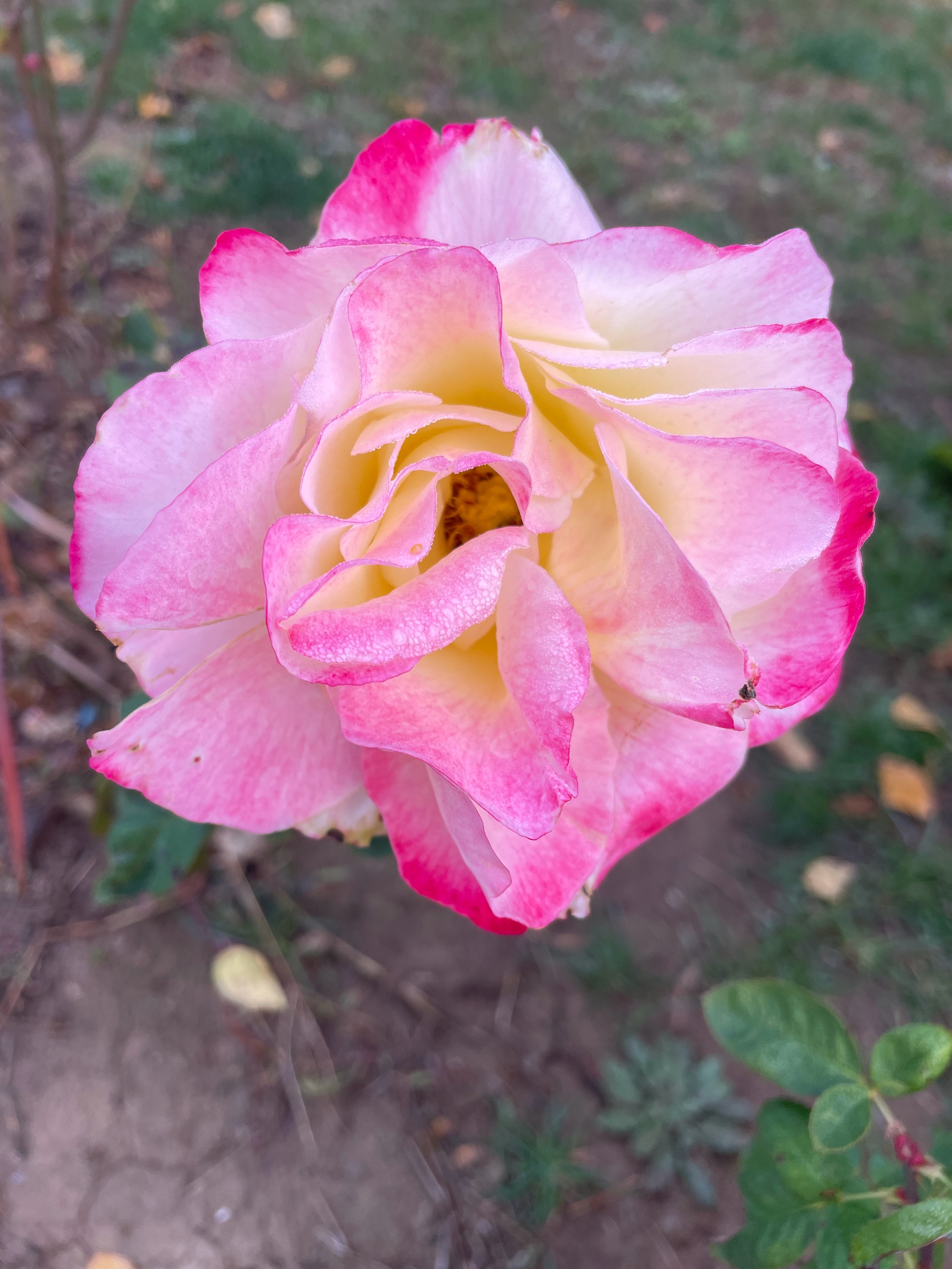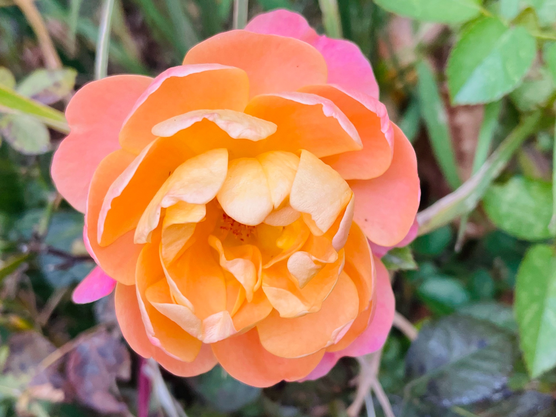 已是初冬时节,还寒乍暖,不畏霜冻,月季花依然开得灿烂。