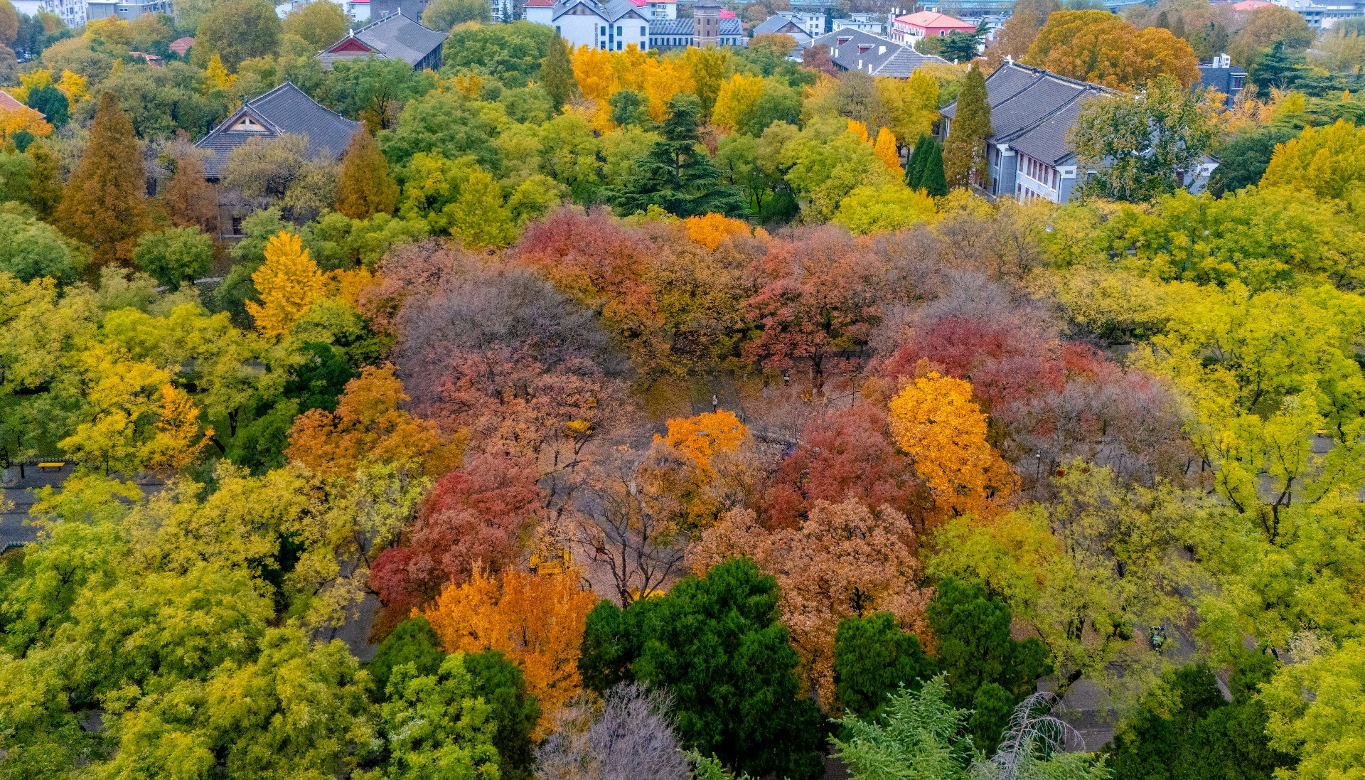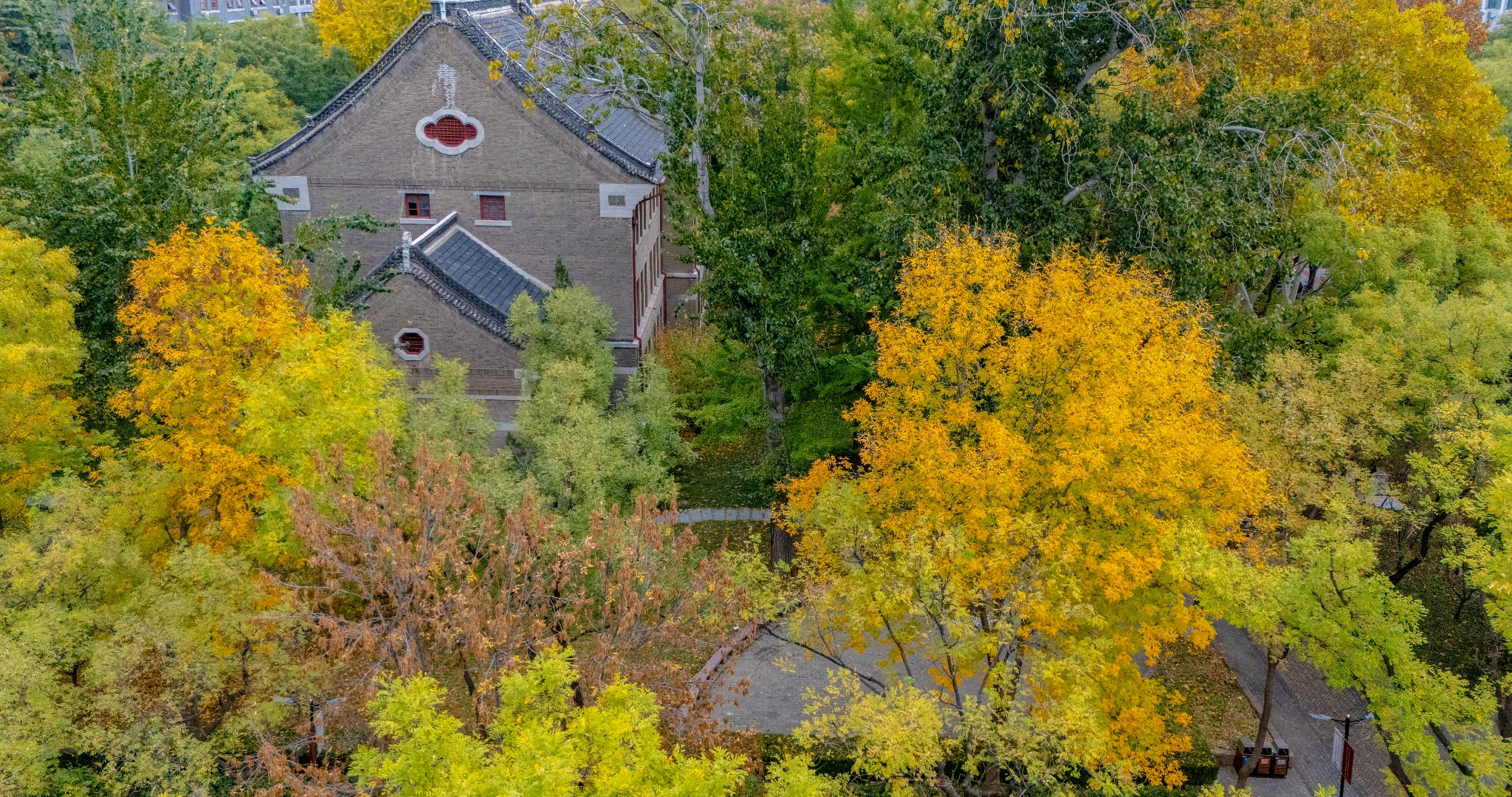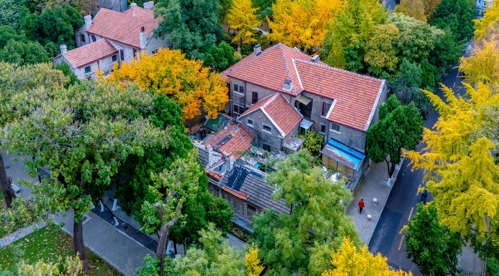 山东大学趵突泉校区,前身为齐鲁医学院,拥有悠久的历史和丰富的文化底蕴。校区的建筑风格独特,融合了欧式风格,并采用了大量中国传统民居建筑手法和符号,形成了特色鲜明的建筑文化。学校环境幽静,古木参天,植被种类繁多,立冬以后,茂密的植被层林尽染,绚丽多彩,学校30多幢别墅住宅和教学楼掩映于浓浓的秋色中。