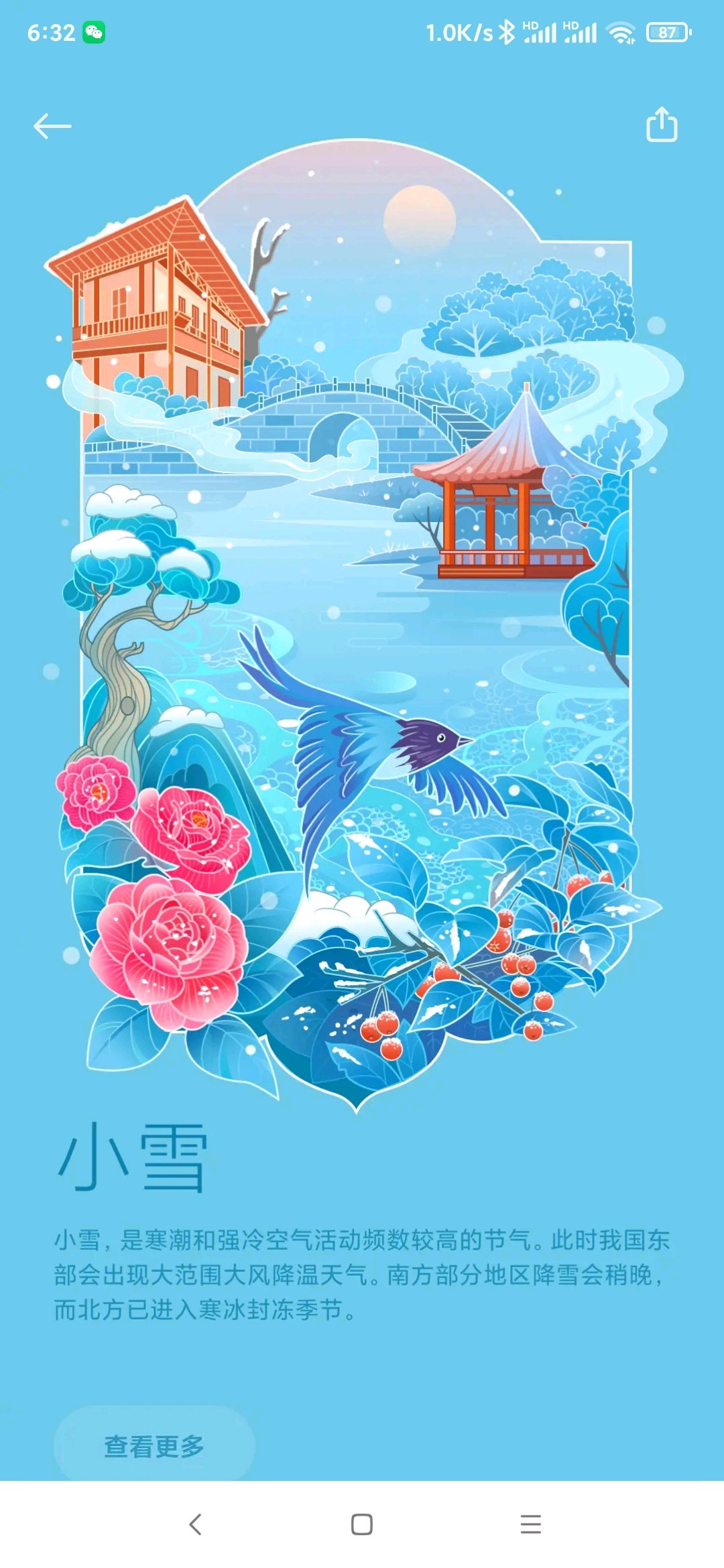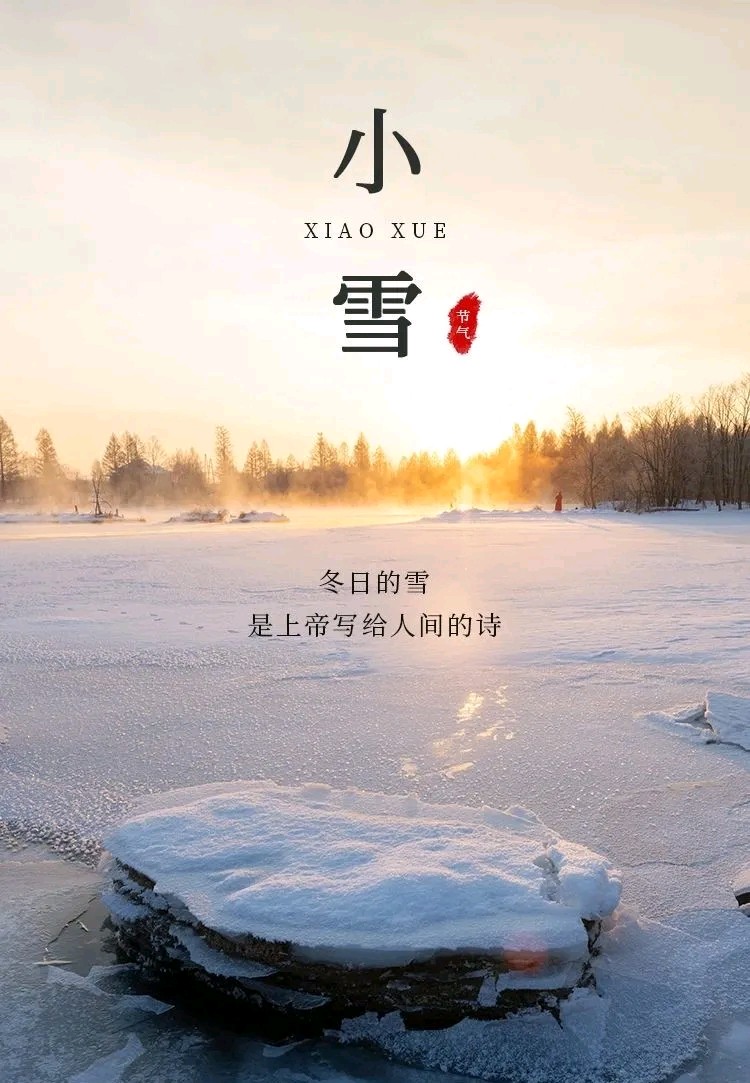 今天是2024年11月22月,甲辰年十月二十二,小雪,是农历二十四节气的二十个节气。《月令集》有曰:"十月中,雨下而为寒气所薄,故凝而为雪,小者未盛之辞“。小雪初下,北风萧萧,我们终于等来了真正的冬天。天地初寒,落雪为念,愿君冬安。