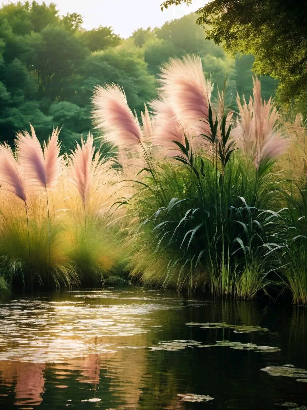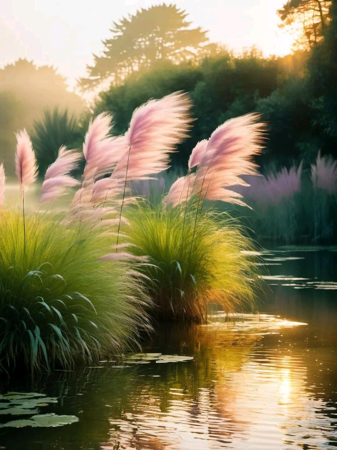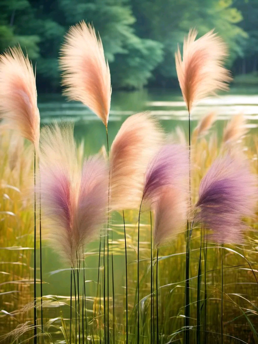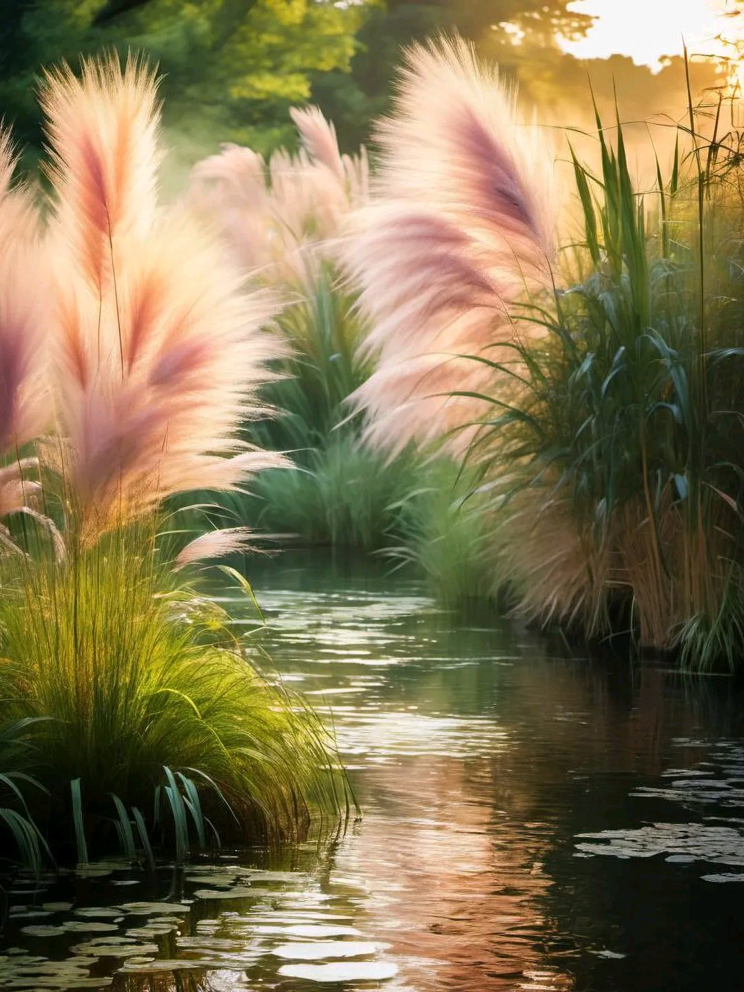 夕阳渐渐西沉,天空染上了一抹绚丽的晚霞。粉紫色的芦苇在这霞光中越发显得梦幻而迷离
