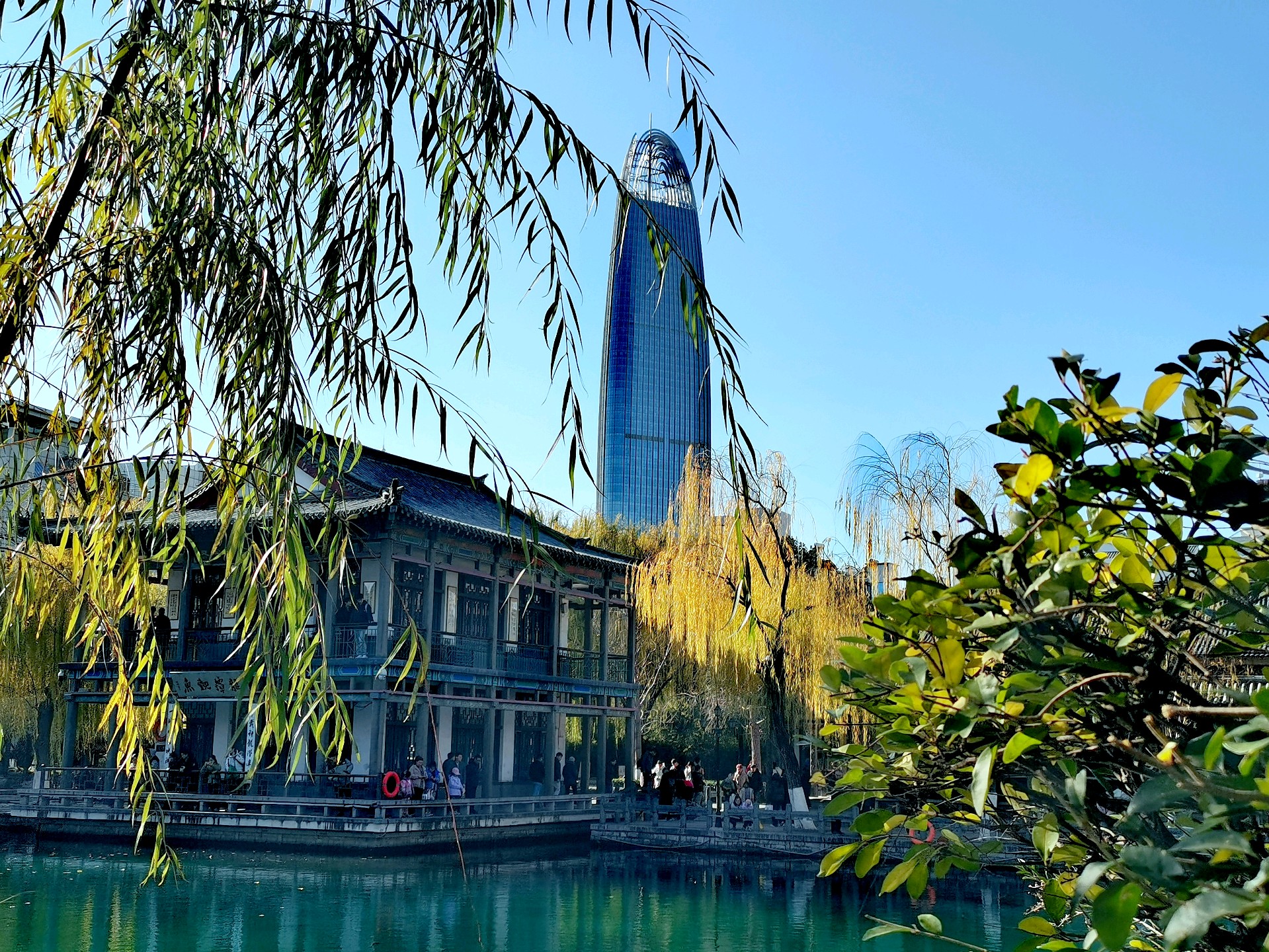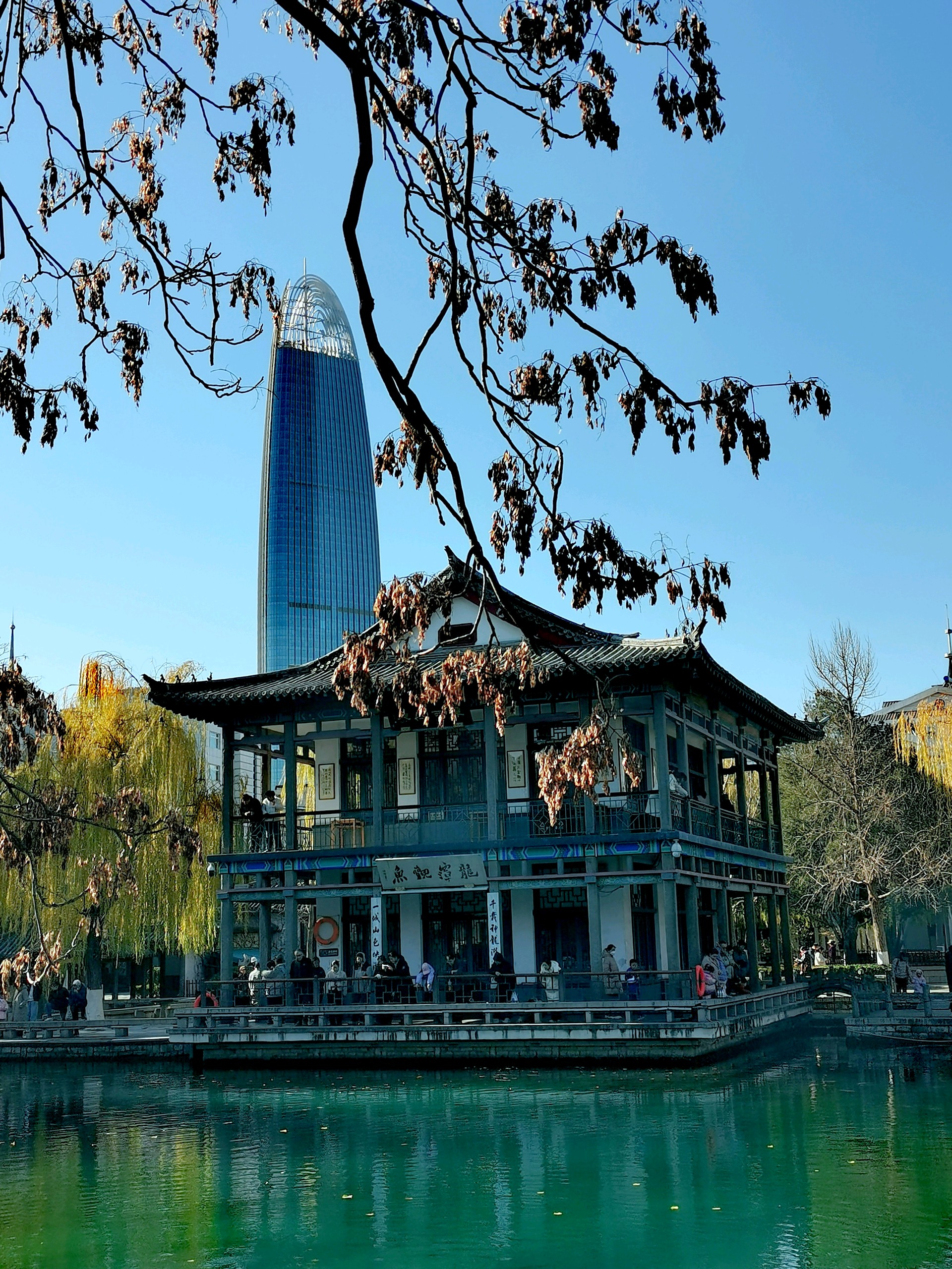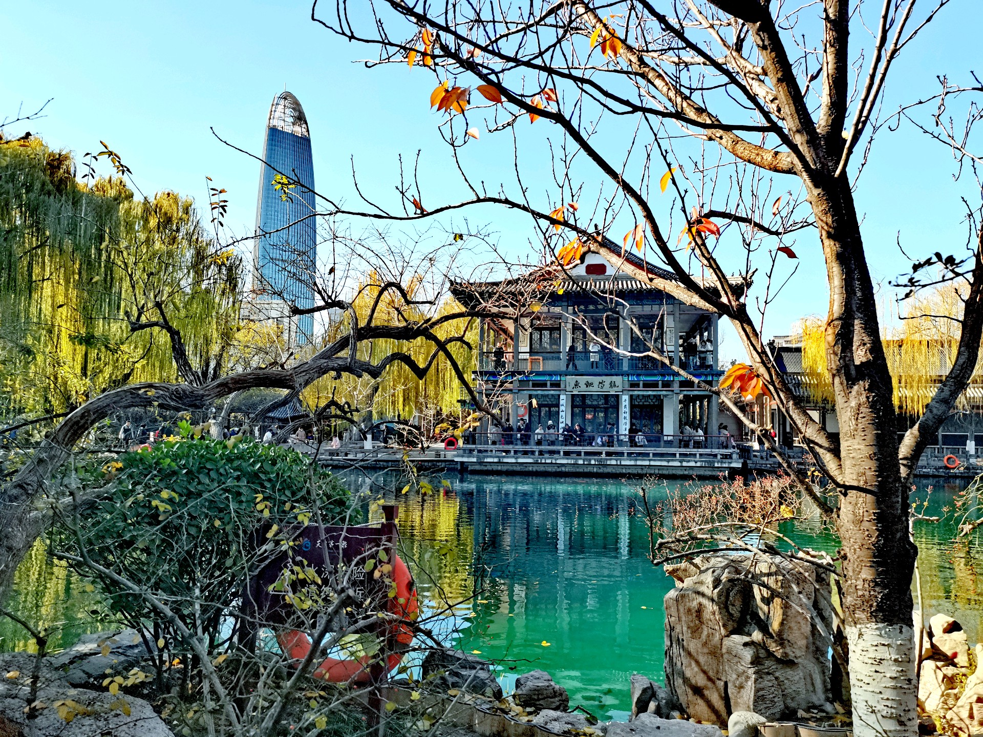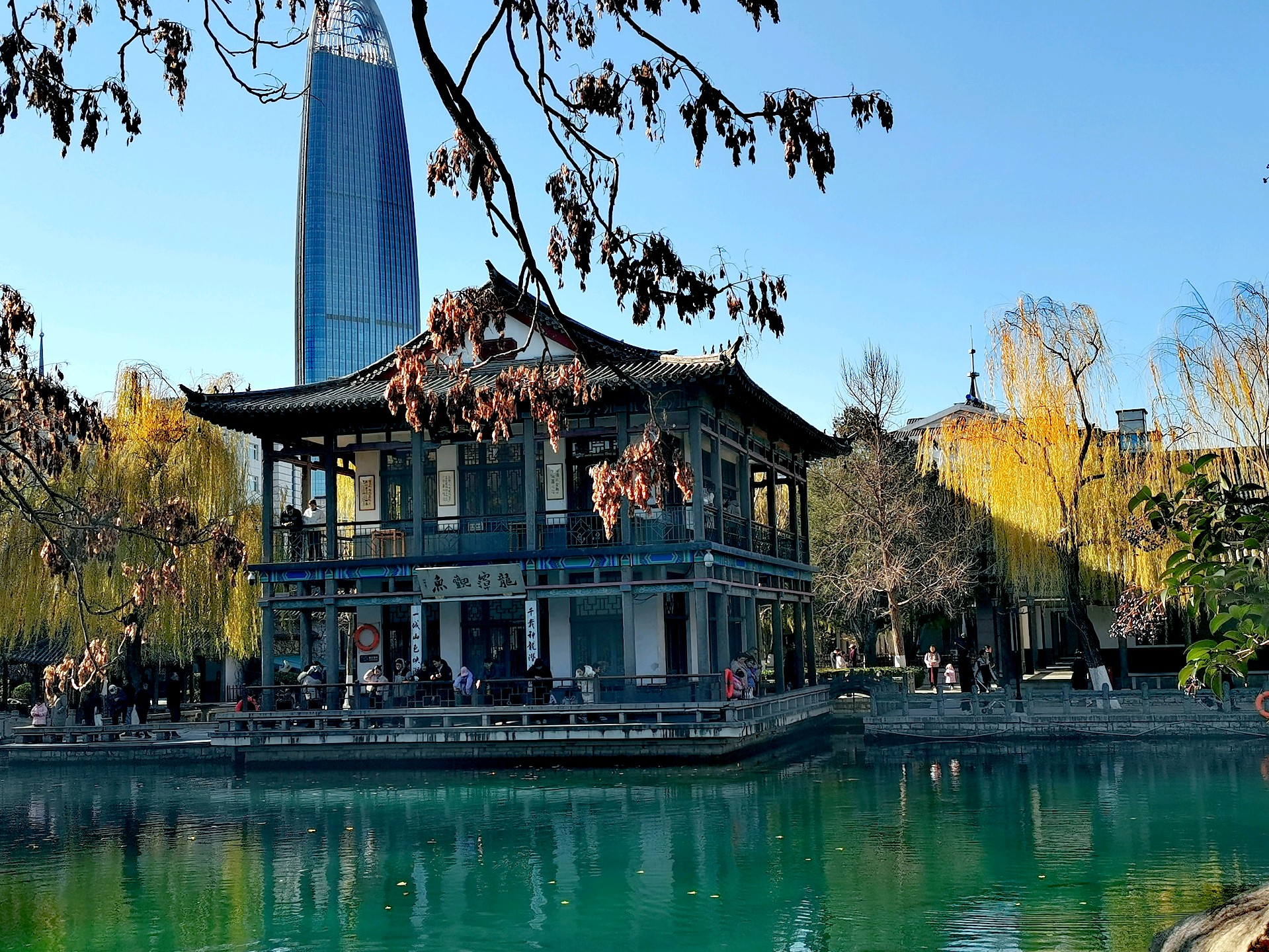 柳枝摇曳,古屋静立。美在五龙潭,天下第一泉。