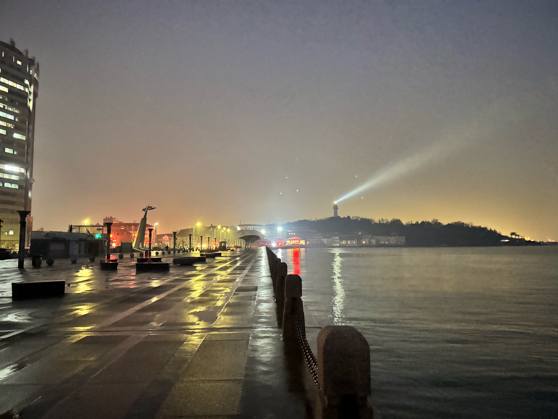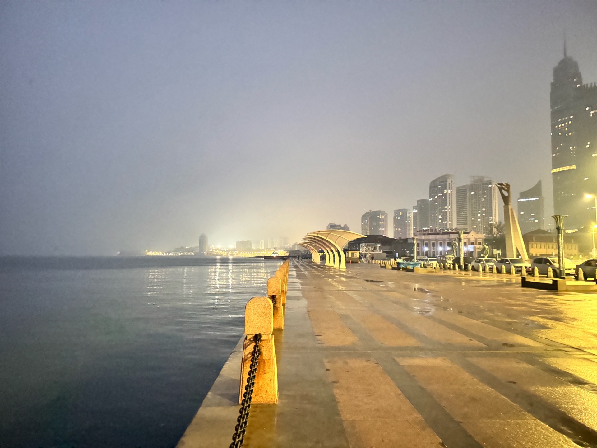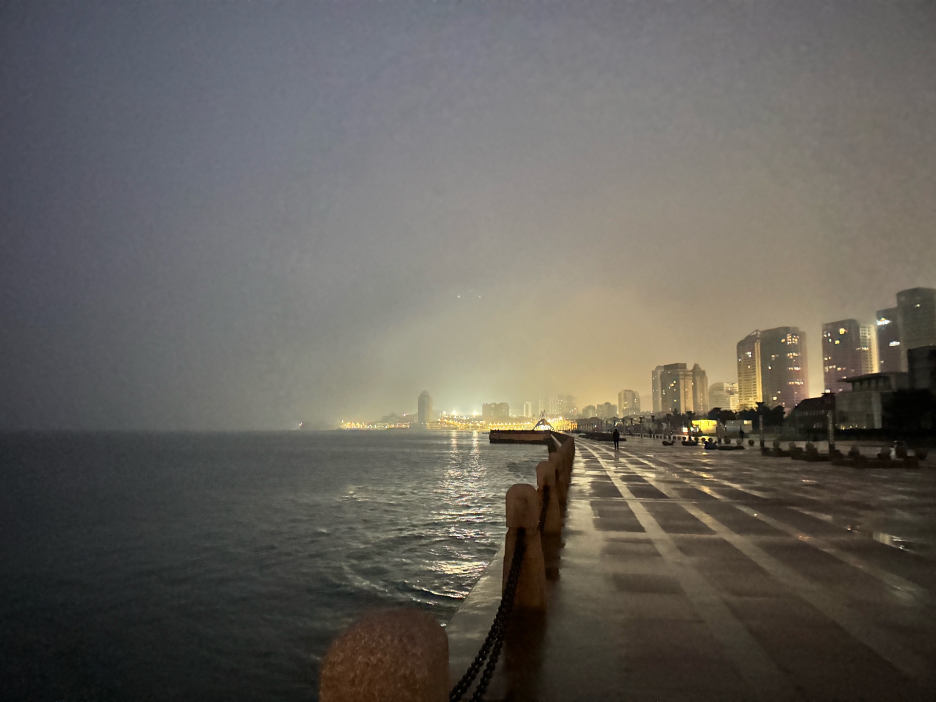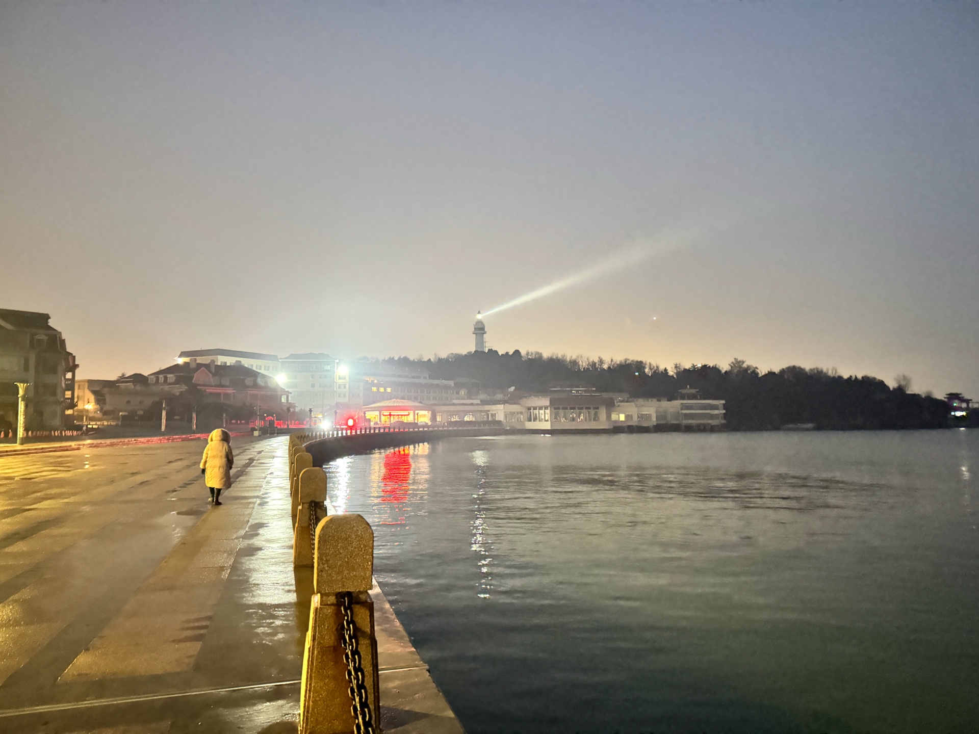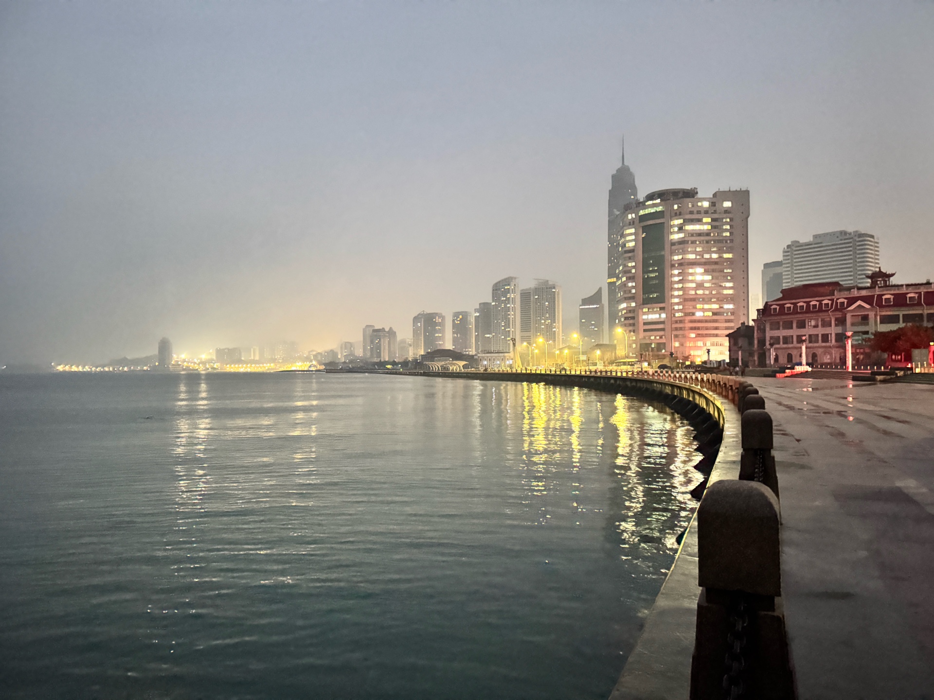 周五(12月13日)快乐!今晨烟台海边风平浪静阴转多云(天气预报中雪)淡雾,日岀时间(晴朗无云时)7点,海水微西弗每小时00.02左右,空气质量(6点左右AQI 63)良,户外体感温度(3度)明显降温寒冷感增加,涨潮中……