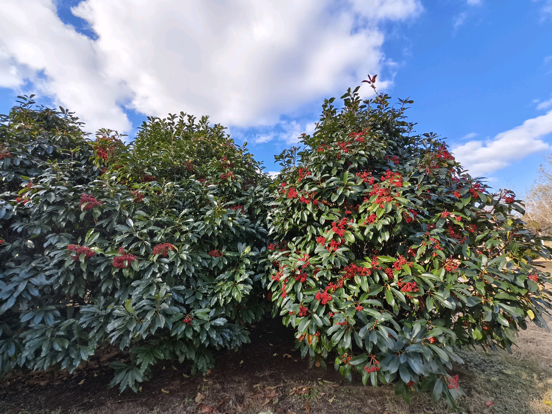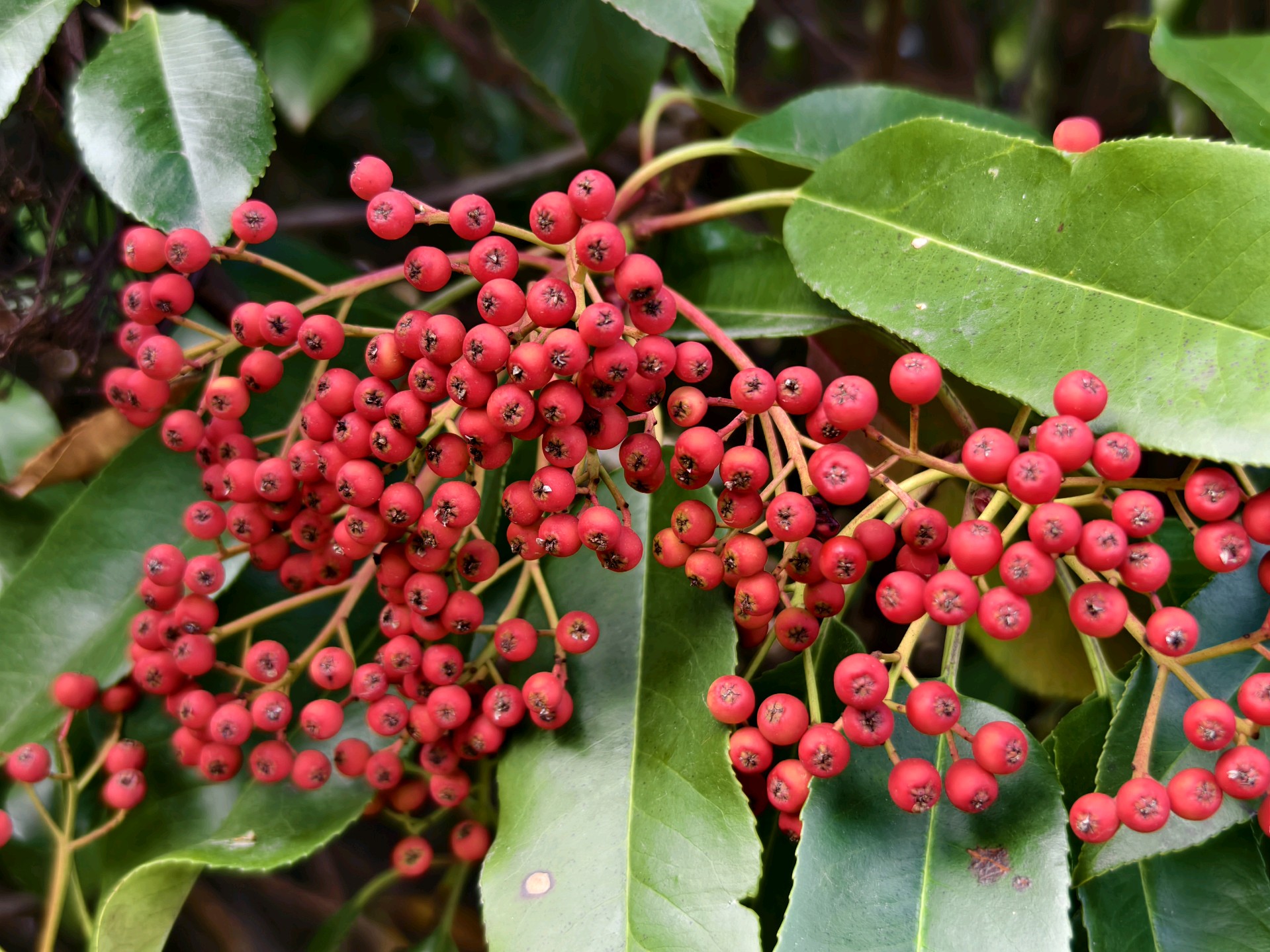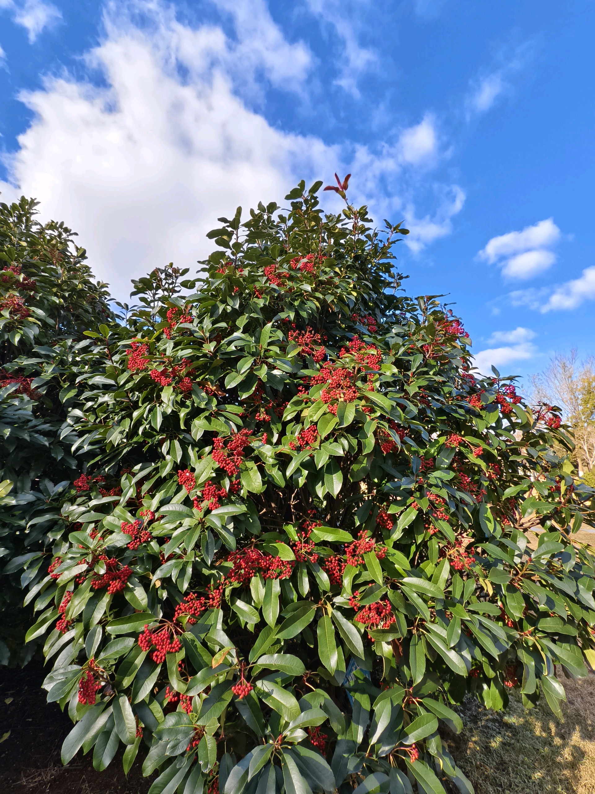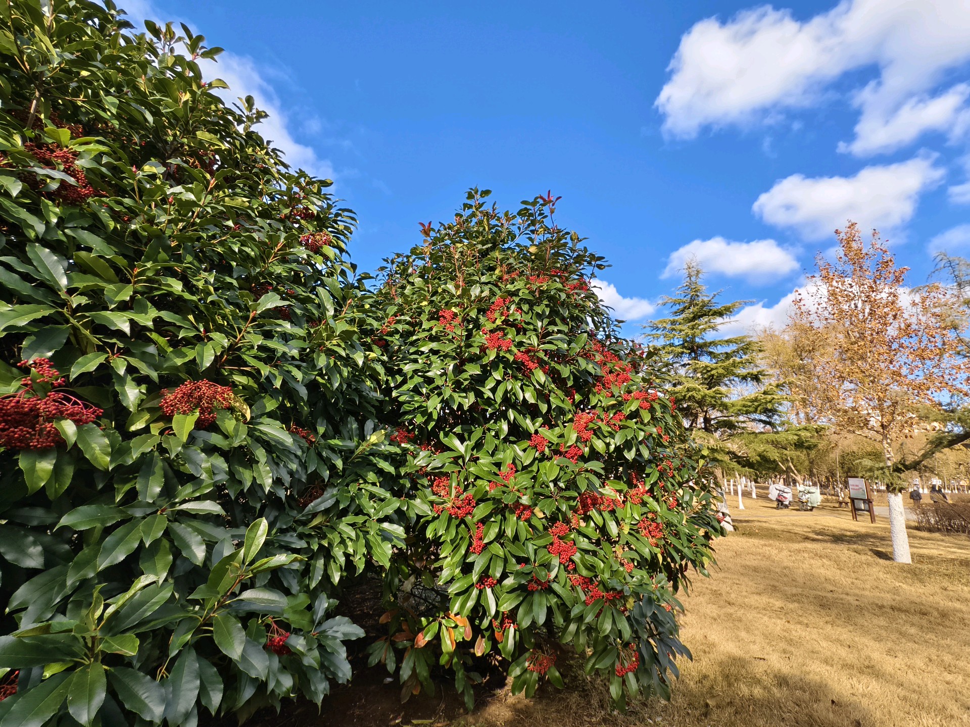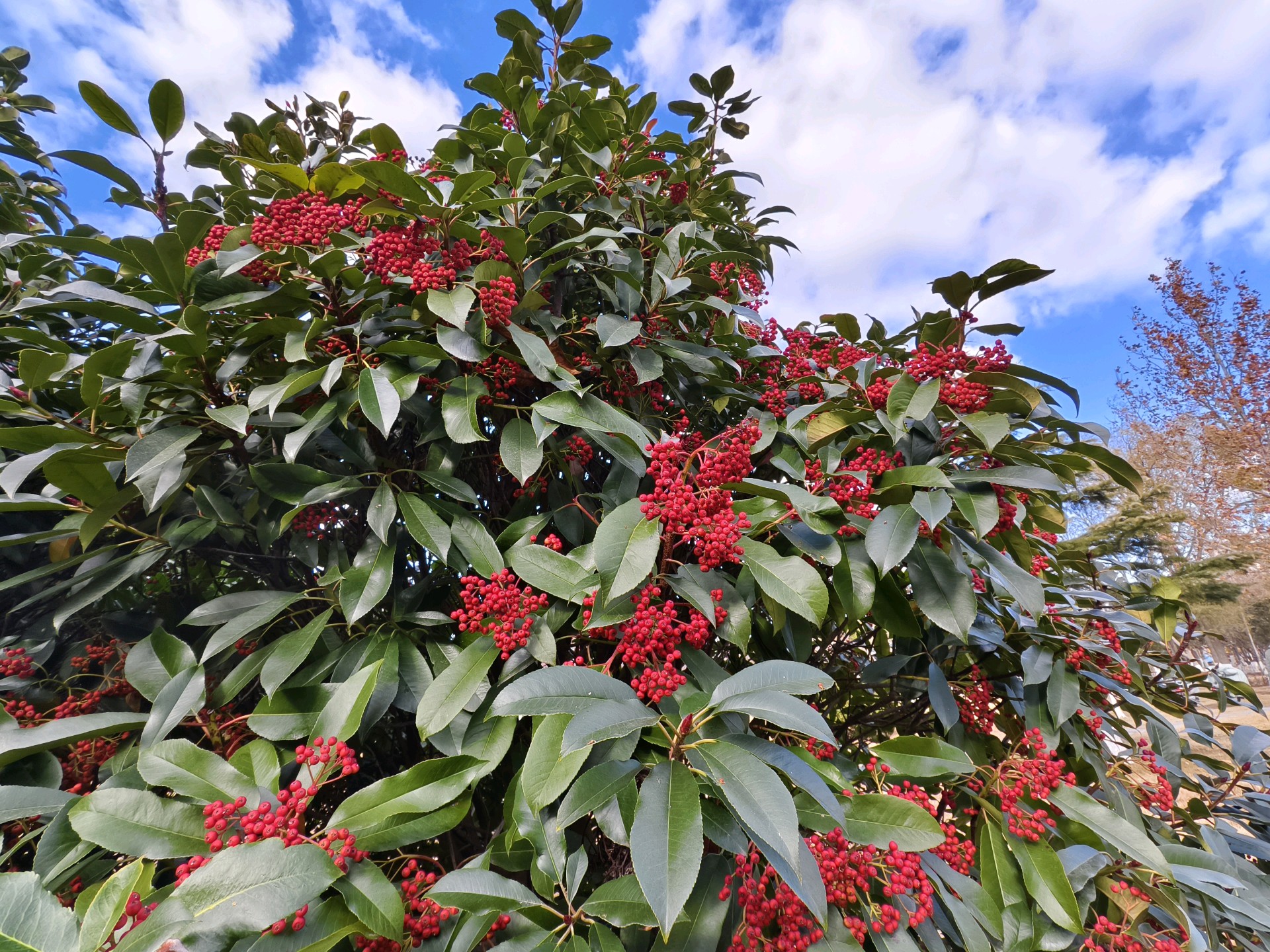 已到仲冬时节,公园里草木萧条。唯有石楠叶子深绿,果实红彤。一想起春天拍石楠花那种恶心难闻的气味,我就打怵再去拍它了。还好戴着口罩,便走进跟前又拍了起来。拍摄于蓬莱