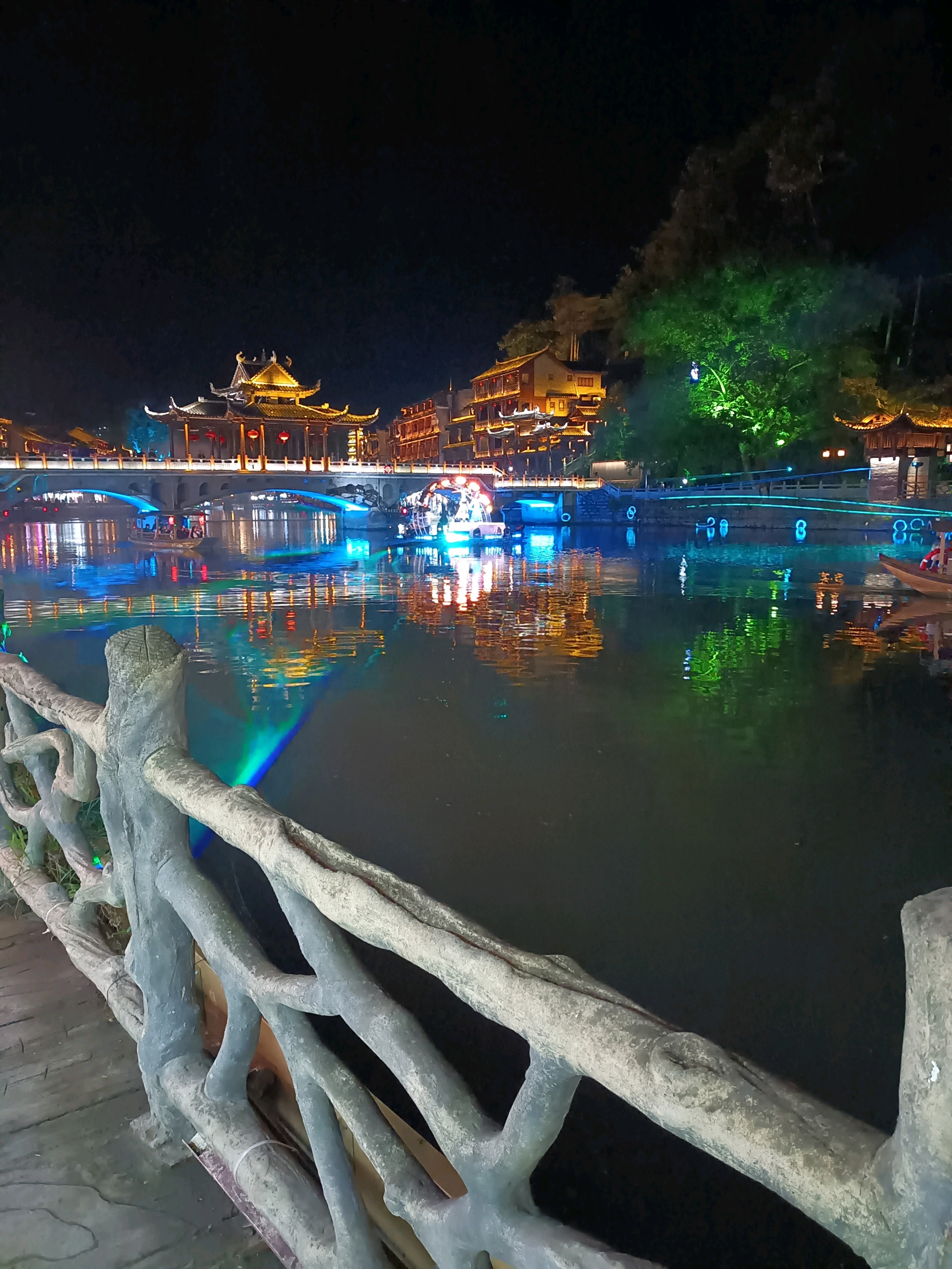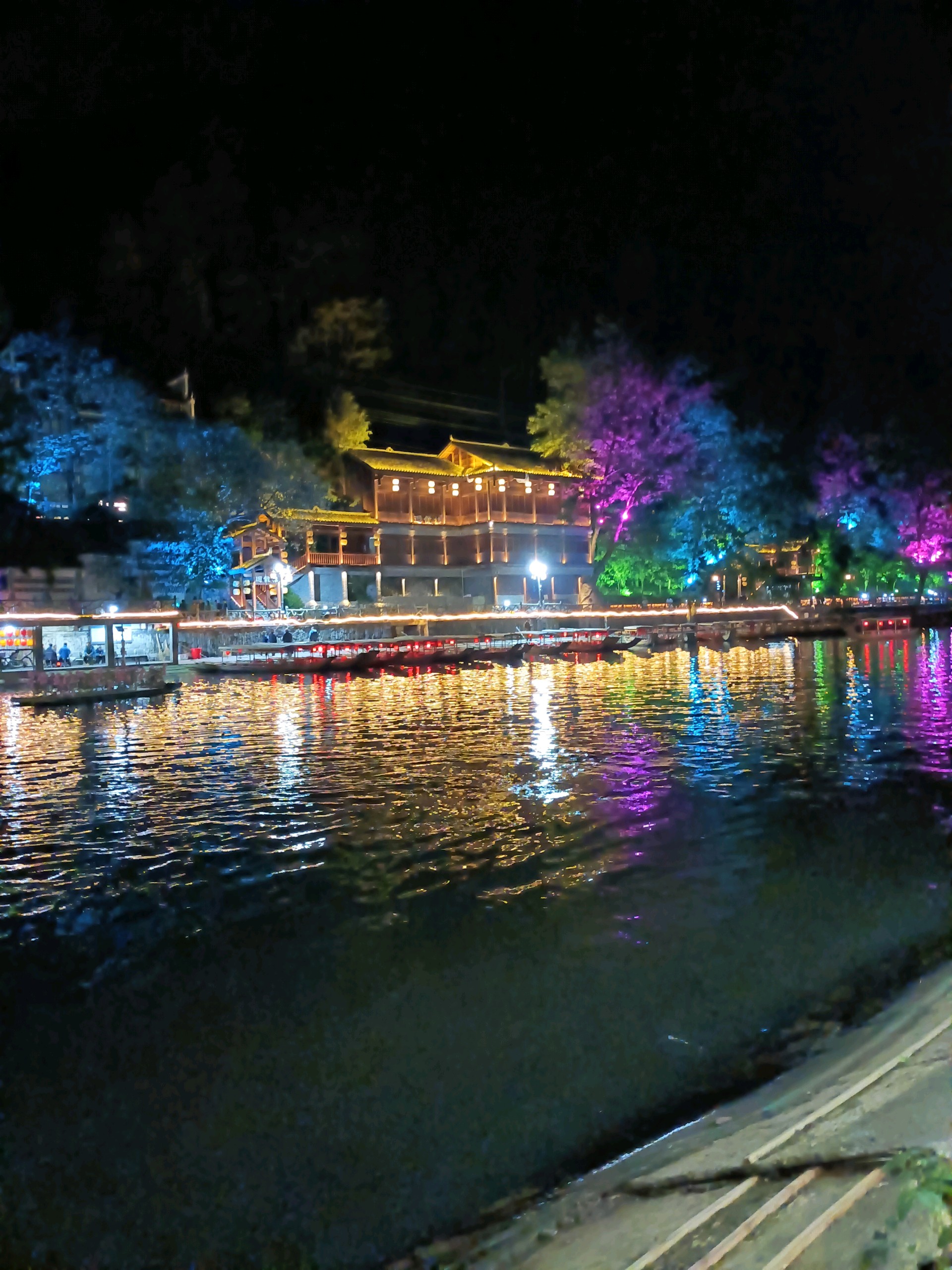 美丽的凤凰古城之夜,灯火辉煌,绚丽多彩。