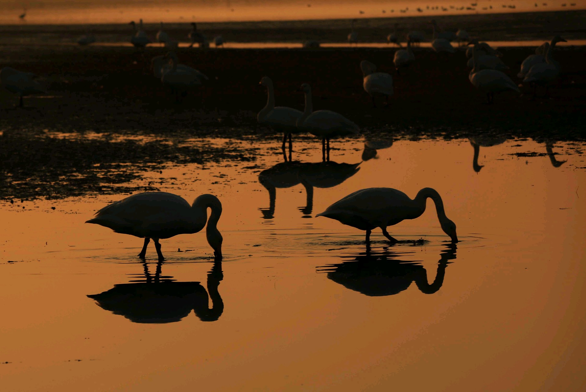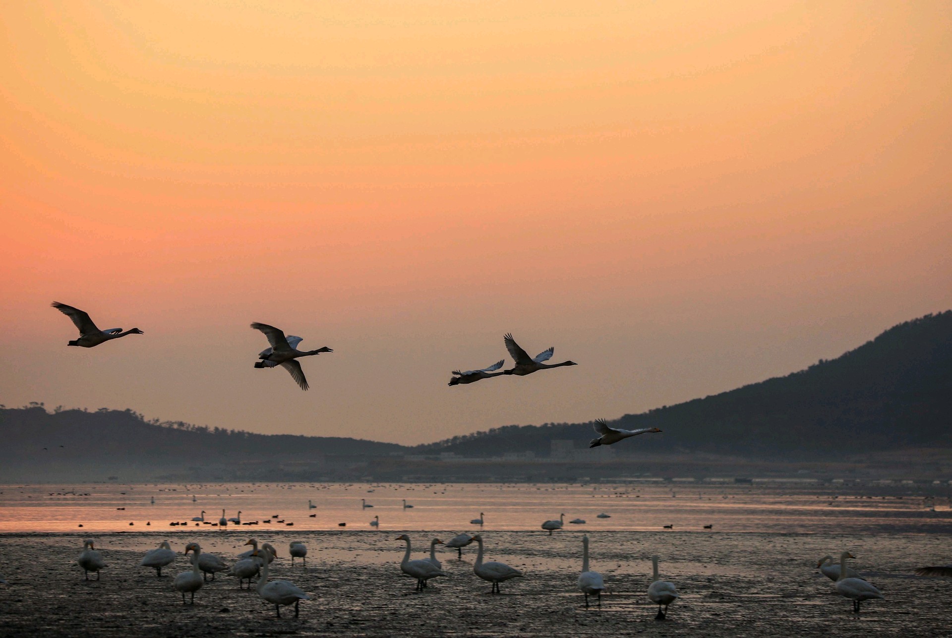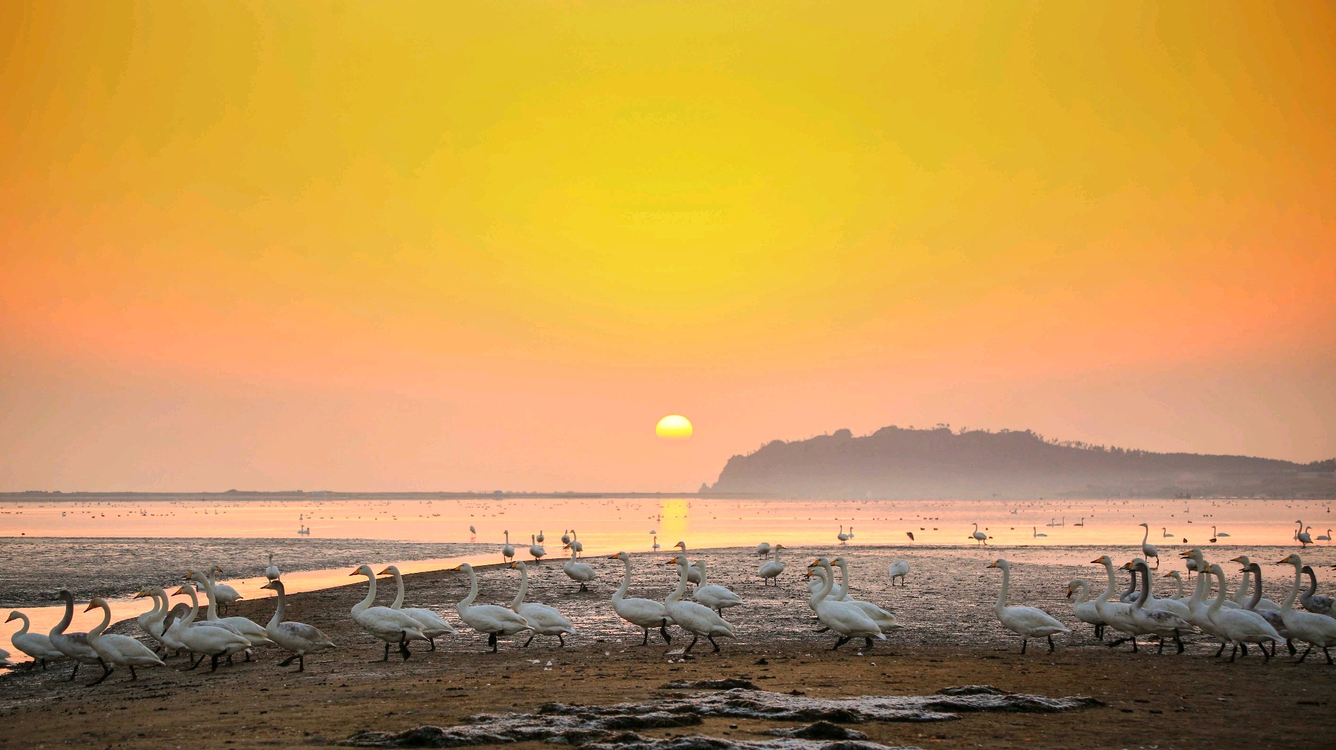 清晨,荣成车祝沟天鹅栖息地的天鹅开始了一天的生活,它们迎着初升的太阳飞翔,觅食,嬉戏打闹。
