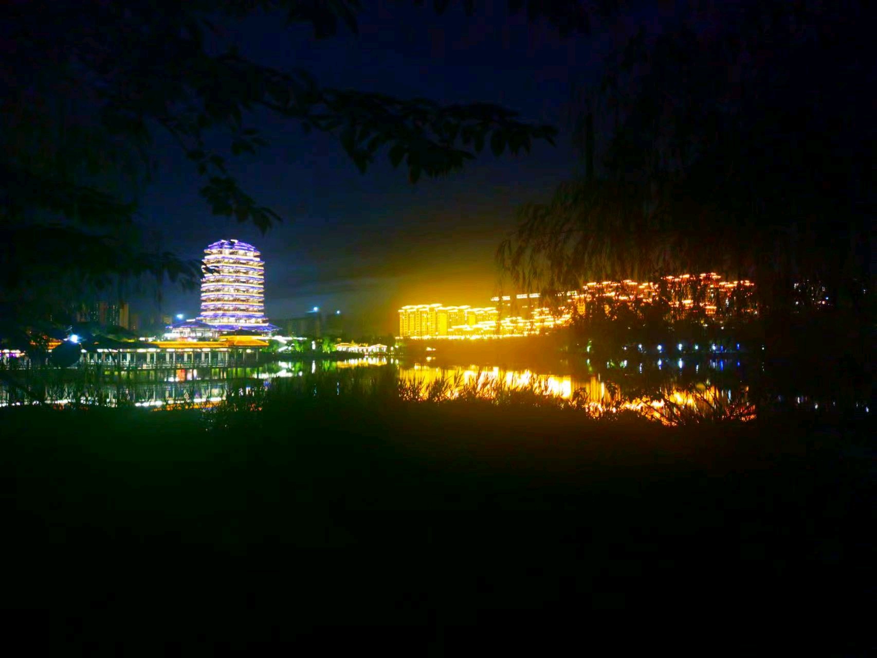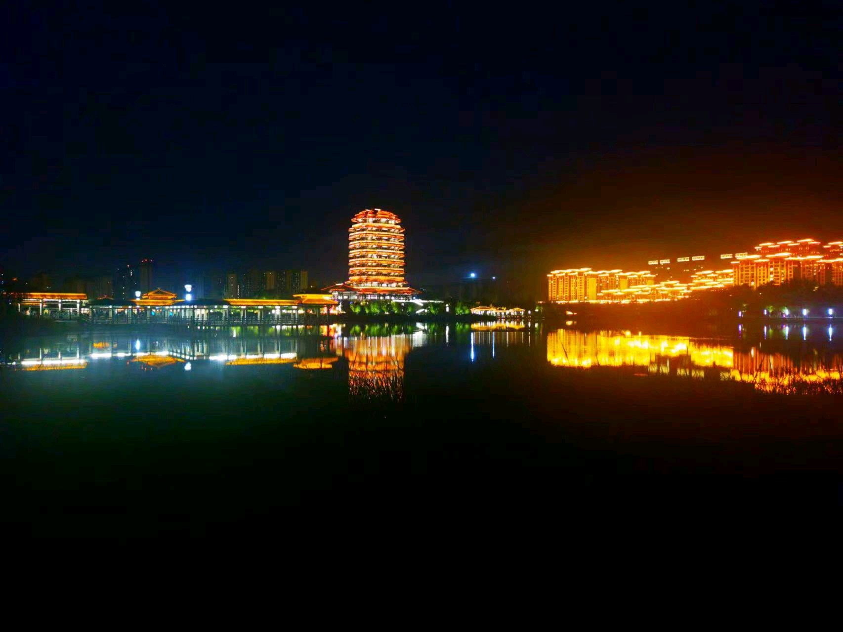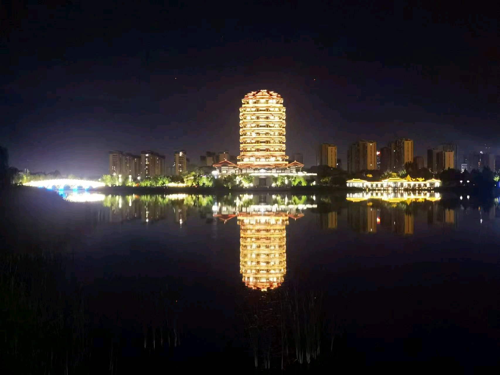 乐山乐水:淄博打卡地齐盛湖公园海岱楼夜景迷人。