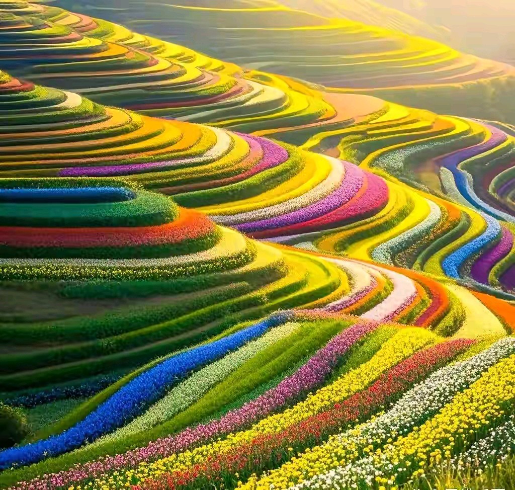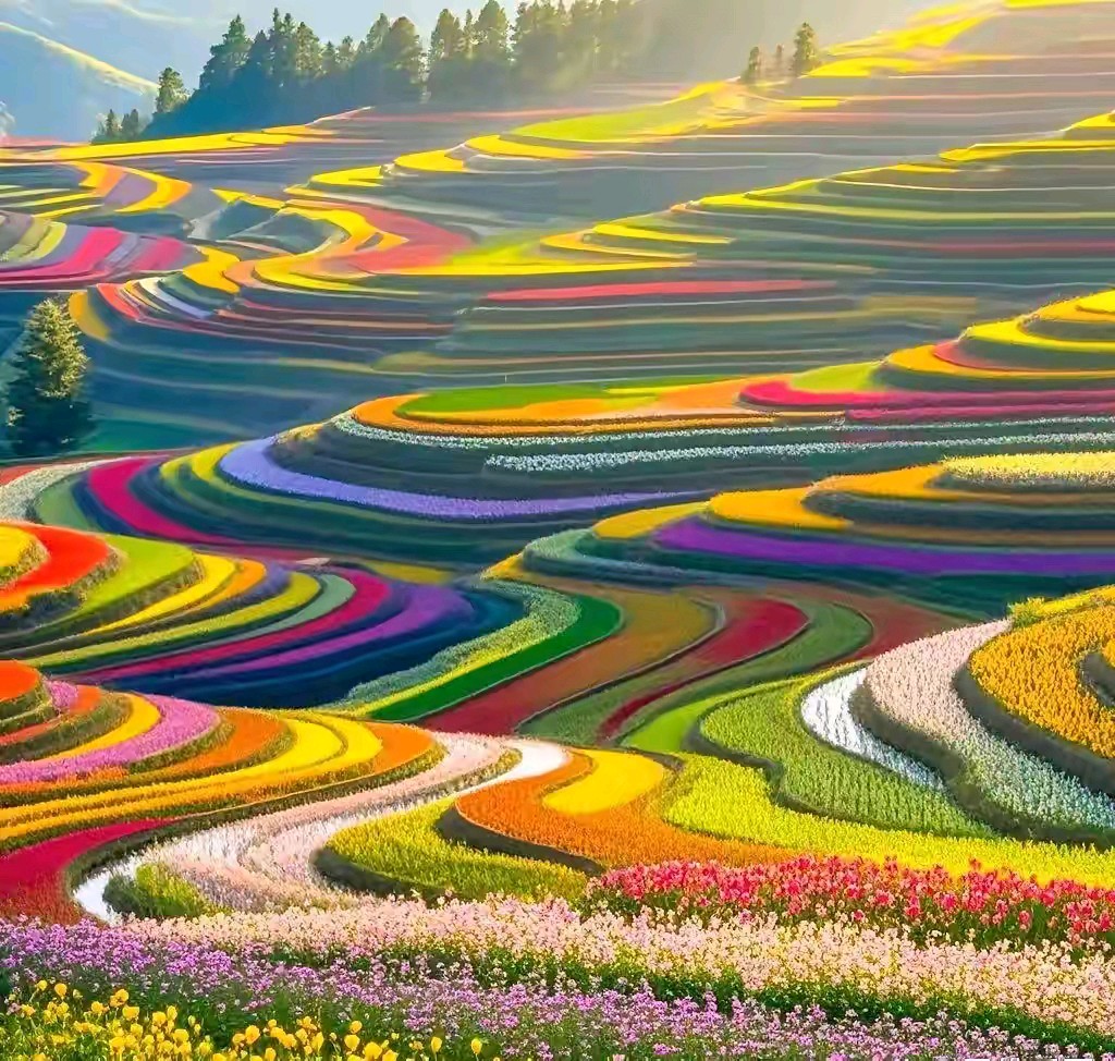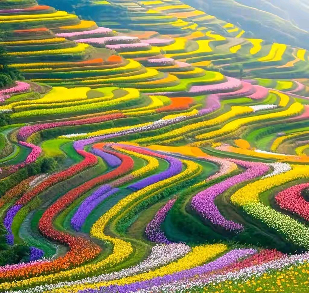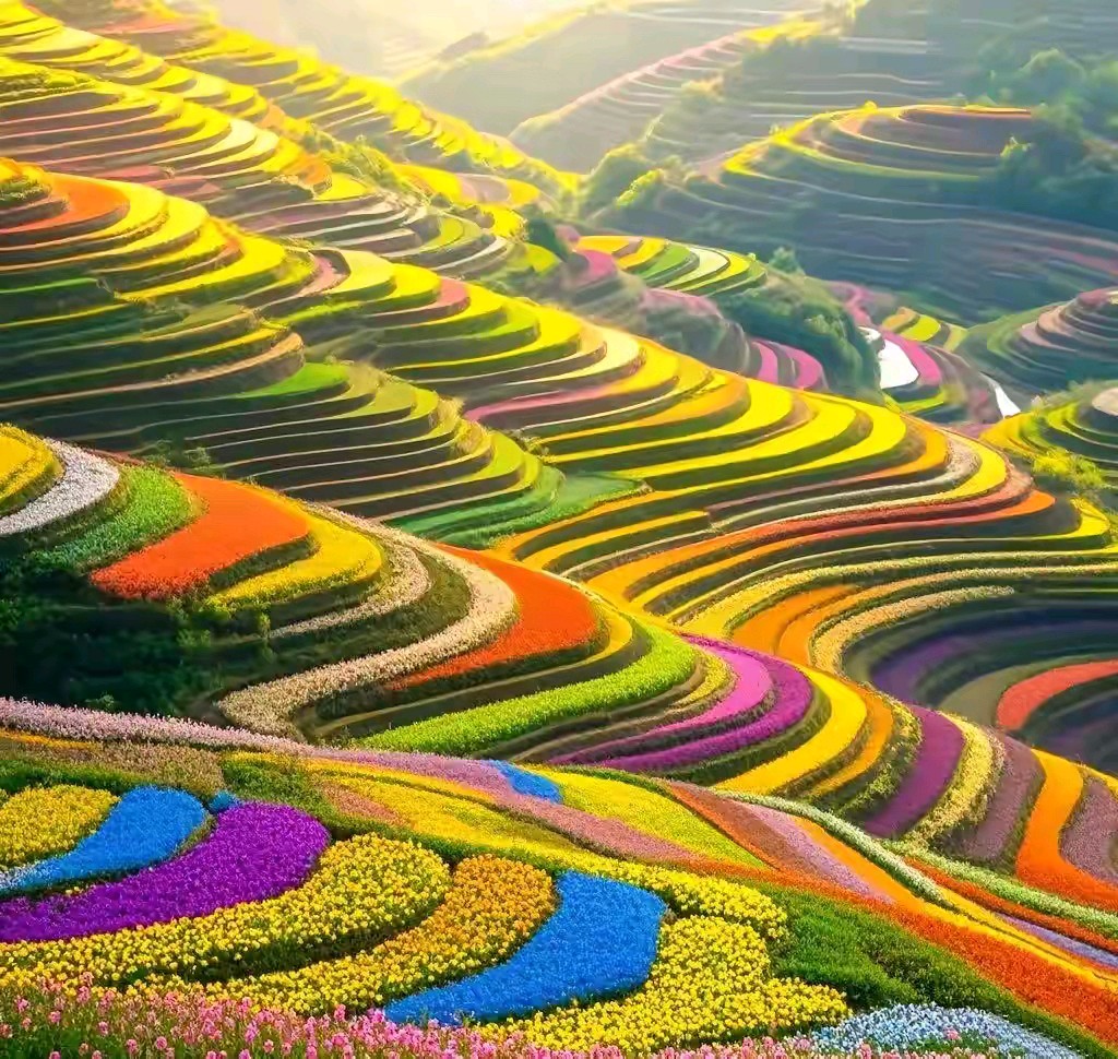 广西五彩斑斓的梯田,大自然的调色盘美景如画!