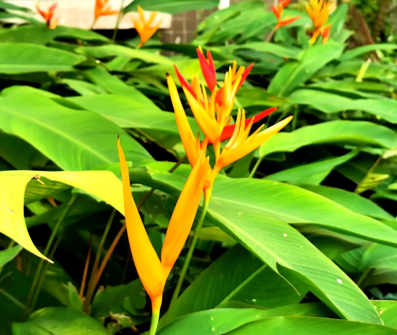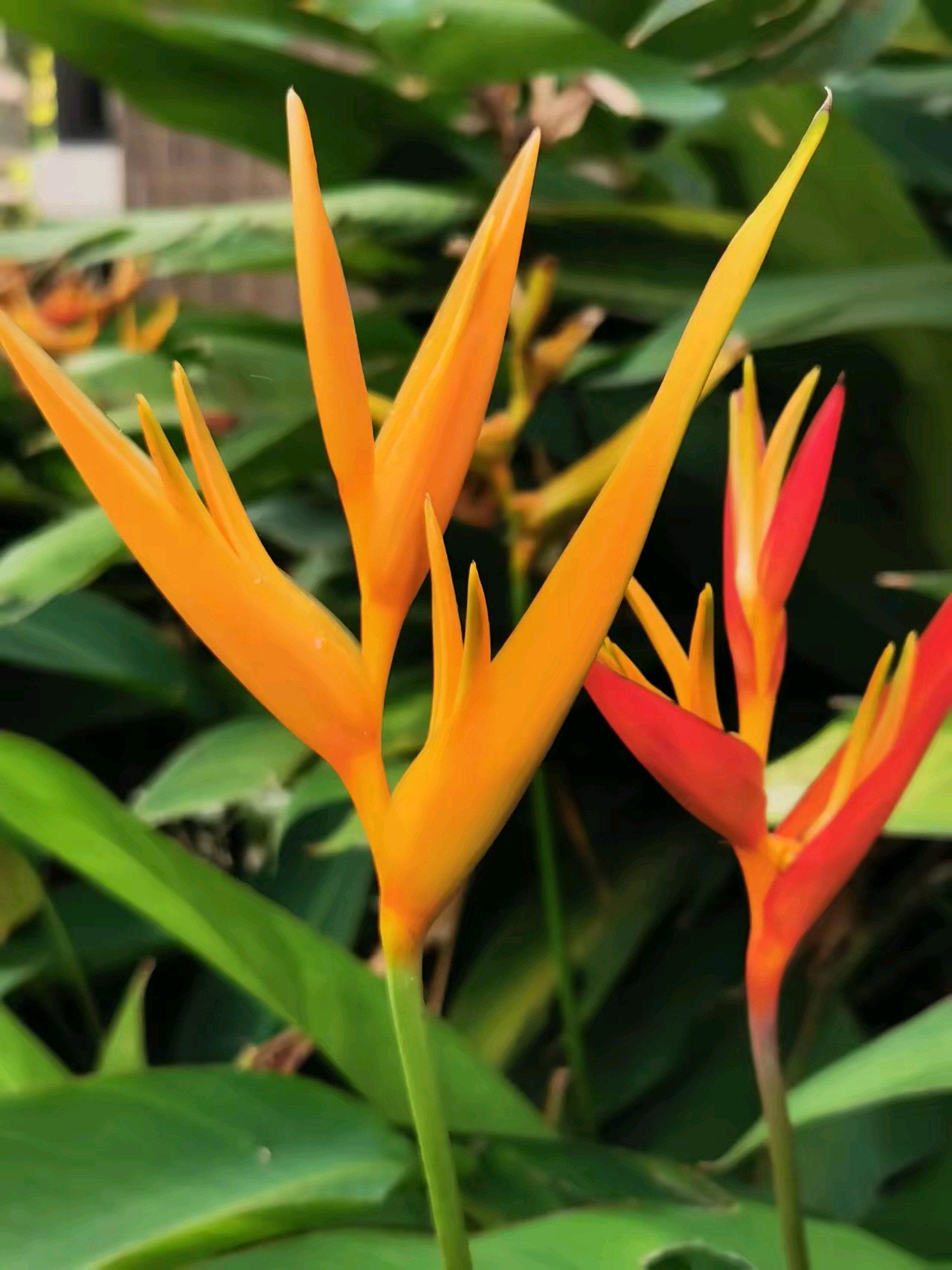 橙花映日红,翠叶舞风