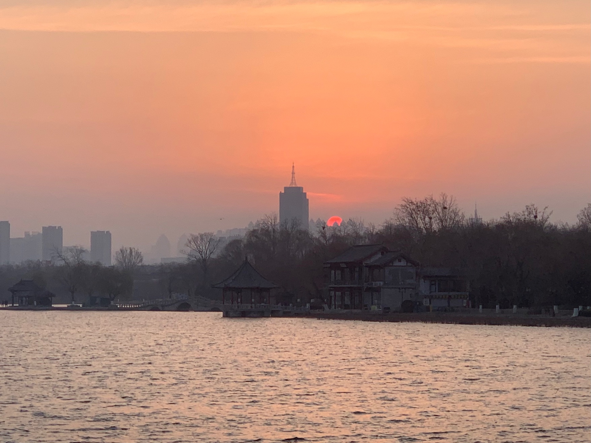 今天早上的晨曦、天空有雾有风,太阳在晨雾中慢慢的升起,更有一番韵味。2025年加油!手机拍摄于大明湖