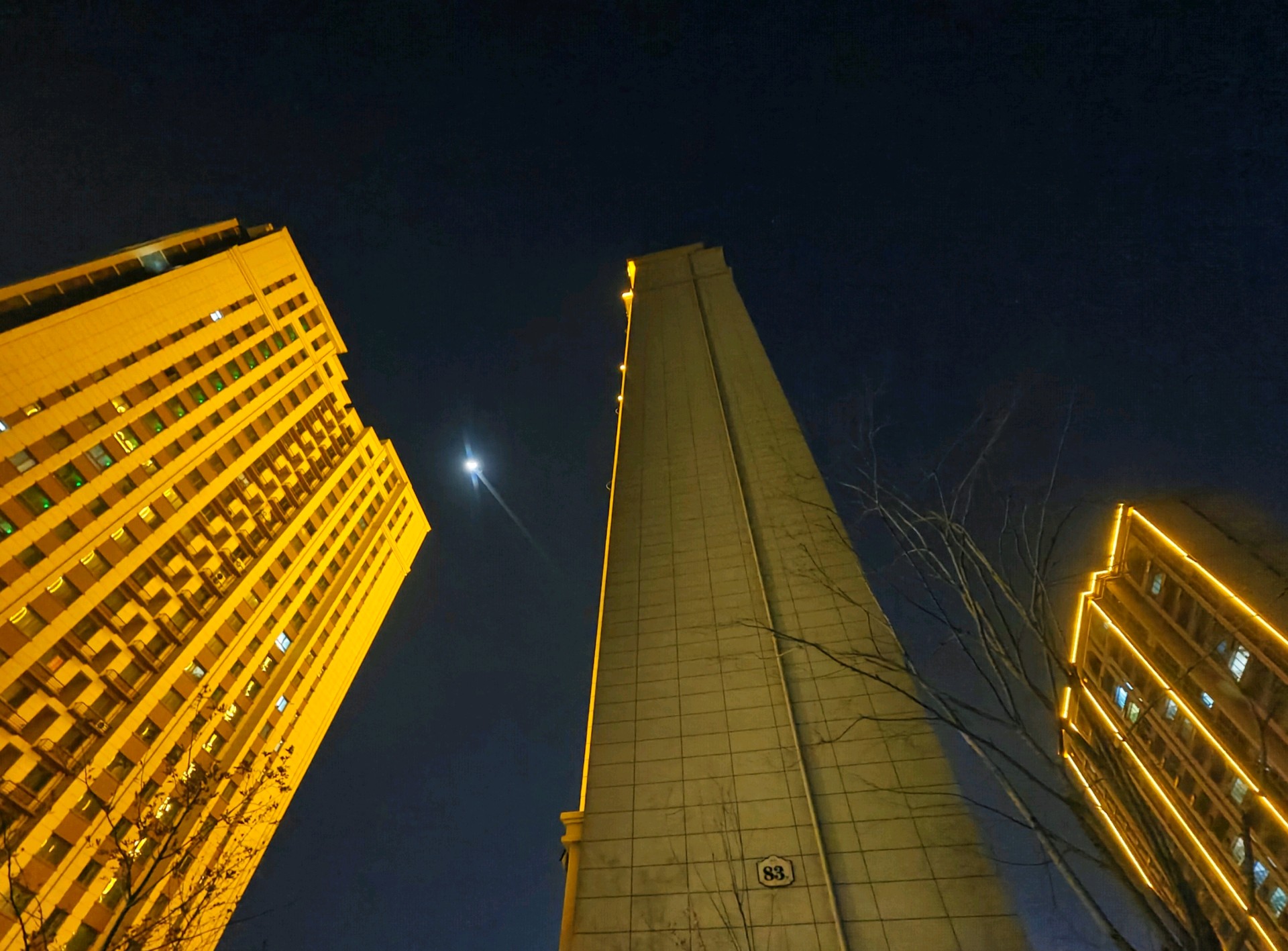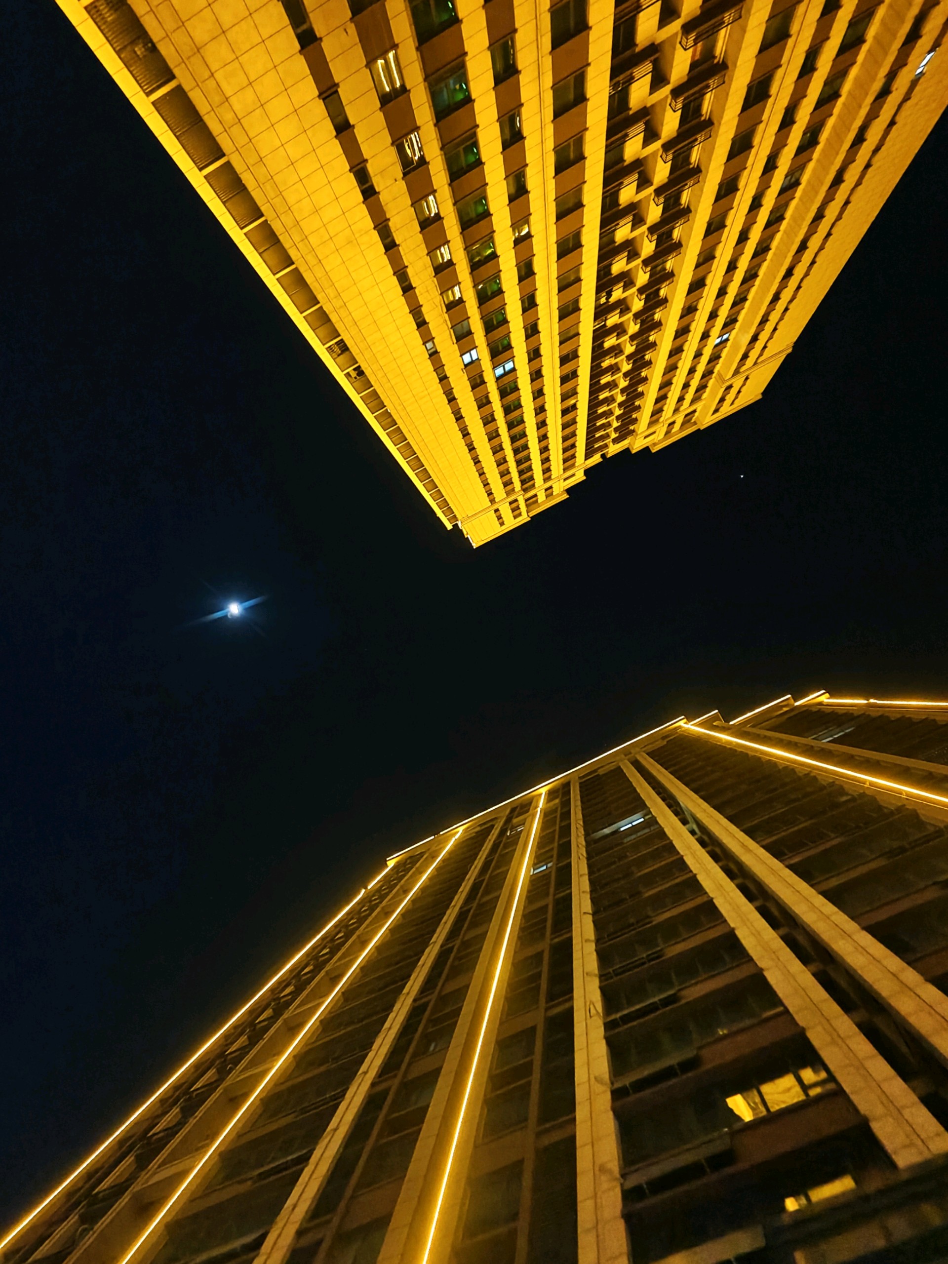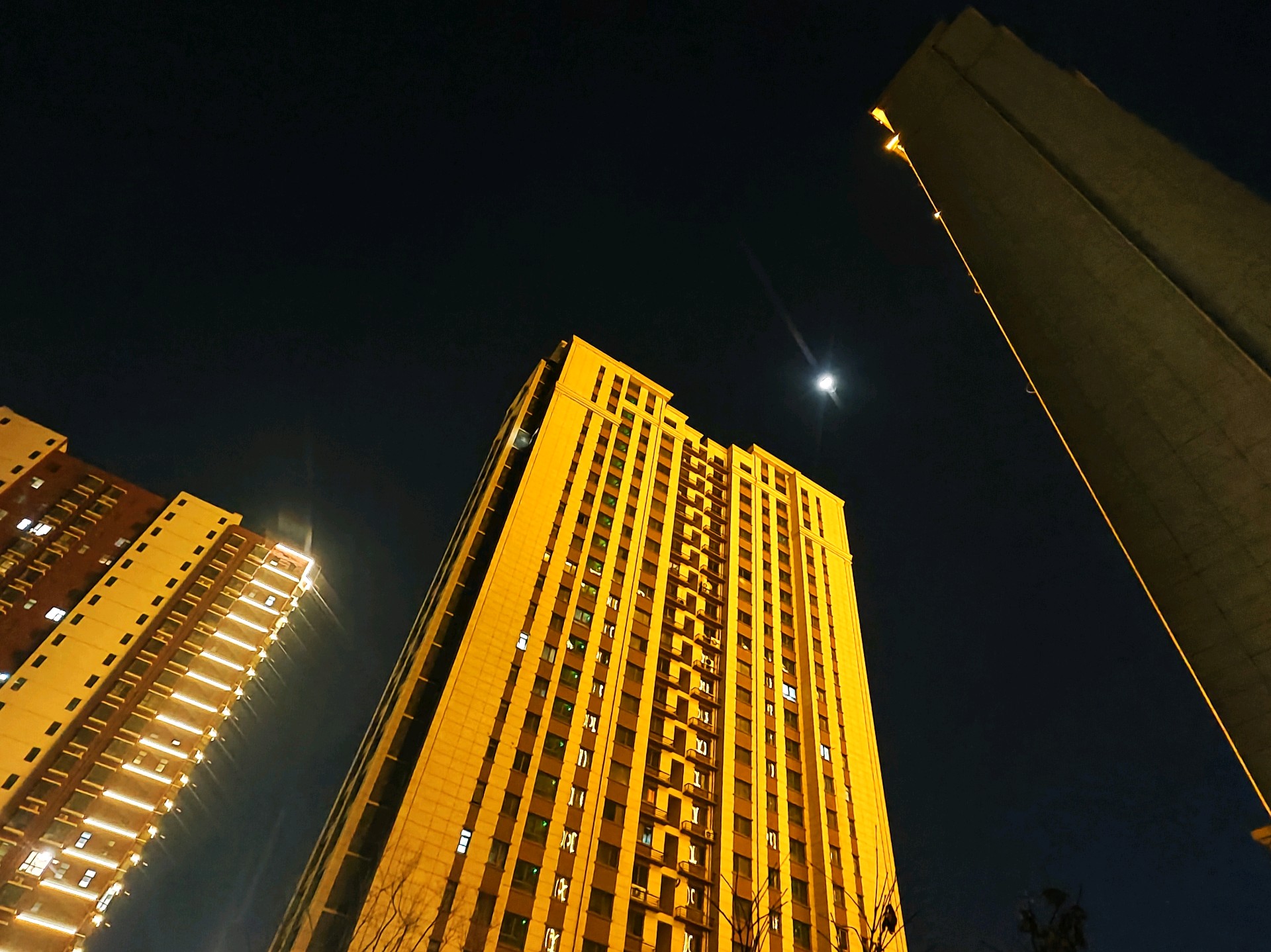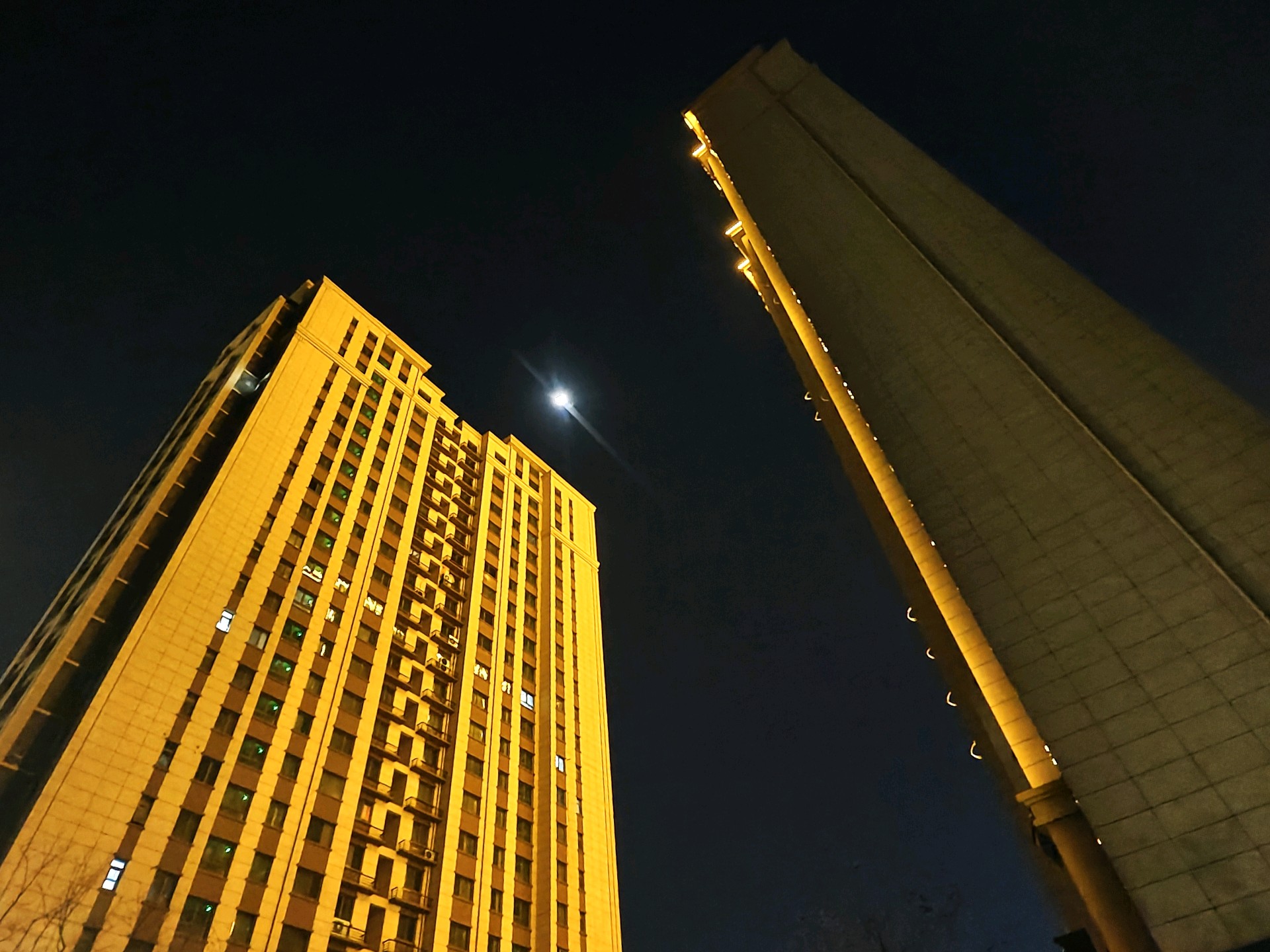 高楼大厦与月牙儿互映衬增光辉昨日夜晚,漫步小道。高高升起的月牙儿,如同悬挂在耸立高大建筑物两旁,散发出皎洁的光芒格外美丽耀眼。高楼大厦的彩色灯带与皎洁的月光相互映衬,相互媲美 ,美丽互补的光辉,构画出一个个耀眼夺目的美景图画。(高军摄影)