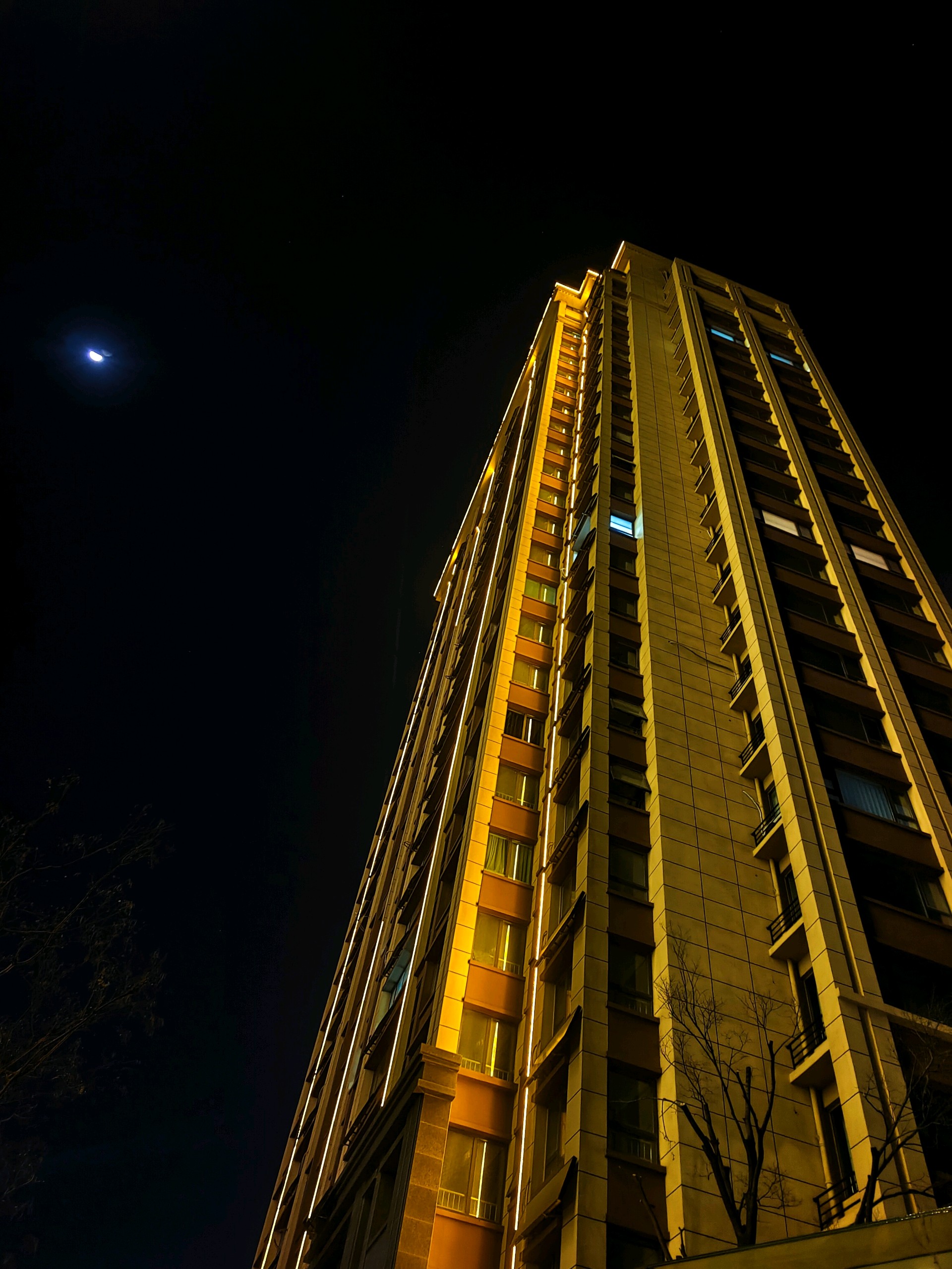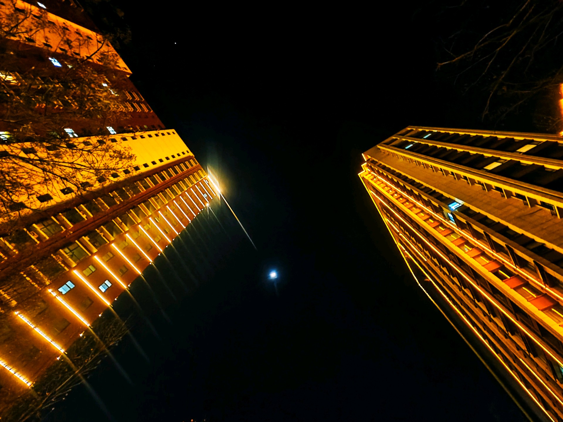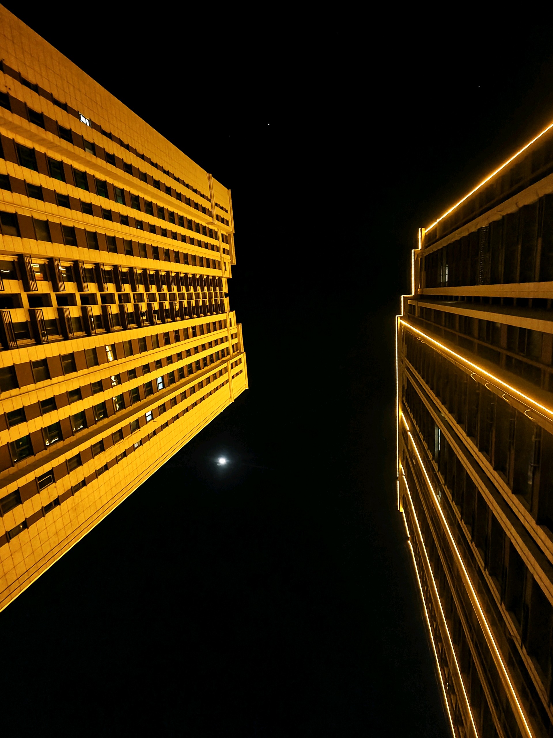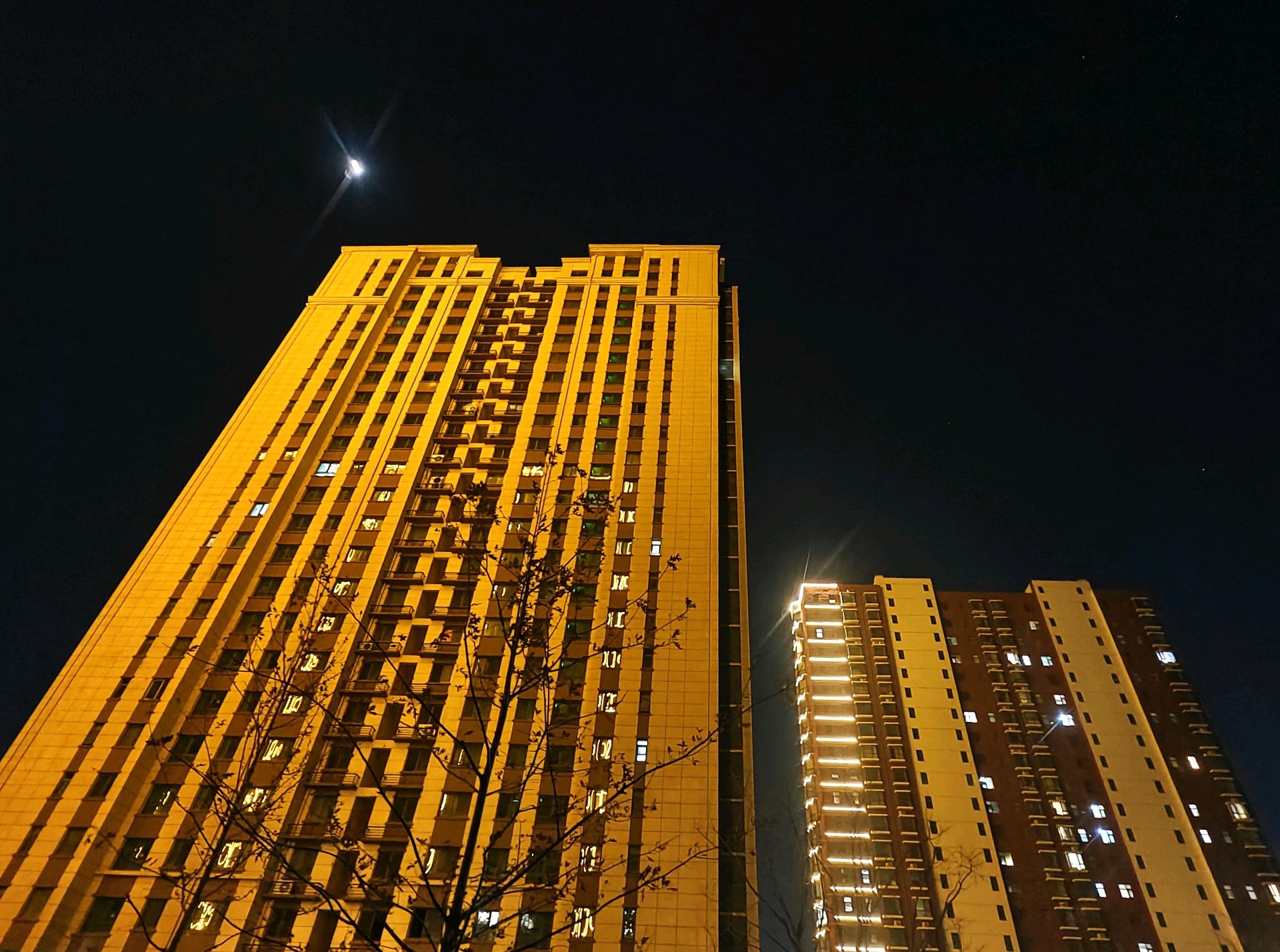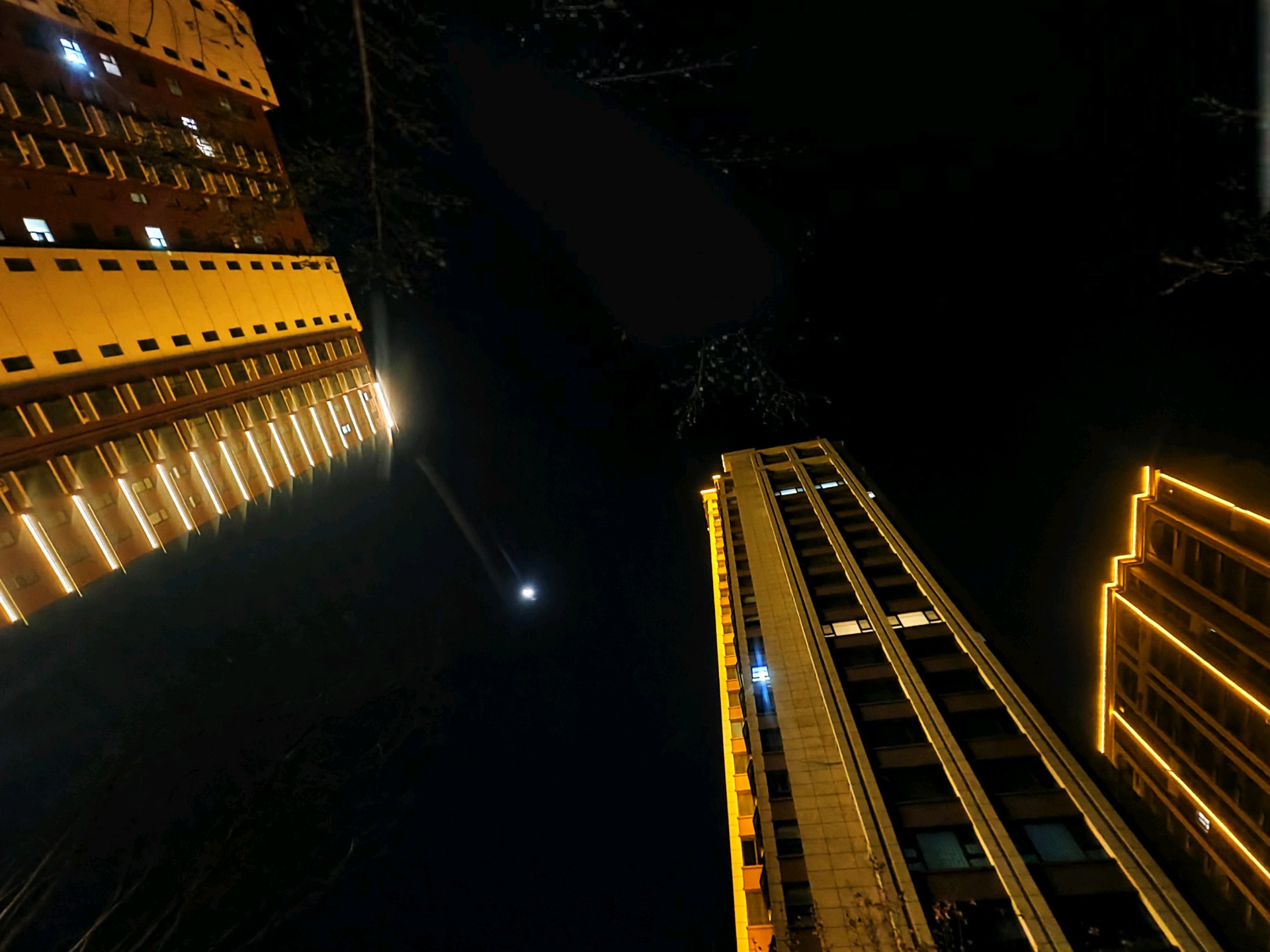 高楼大厦与月牙儿互映衬增光辉昨日夜晚,漫步小道。高高升起的月牙儿,如同悬挂在耸立高大建筑物两旁,散发出皎洁的光芒格外美丽耀眼。高楼大厦的彩色灯带与皎洁的月光相互映衬,相互媲美 ,美丽互补的光辉,构画出一个个耀眼夺目的美景图画。(高军摄影)