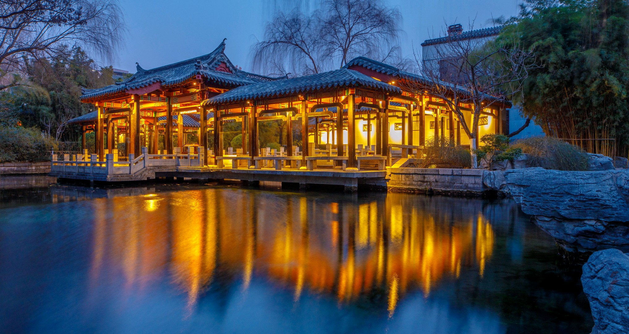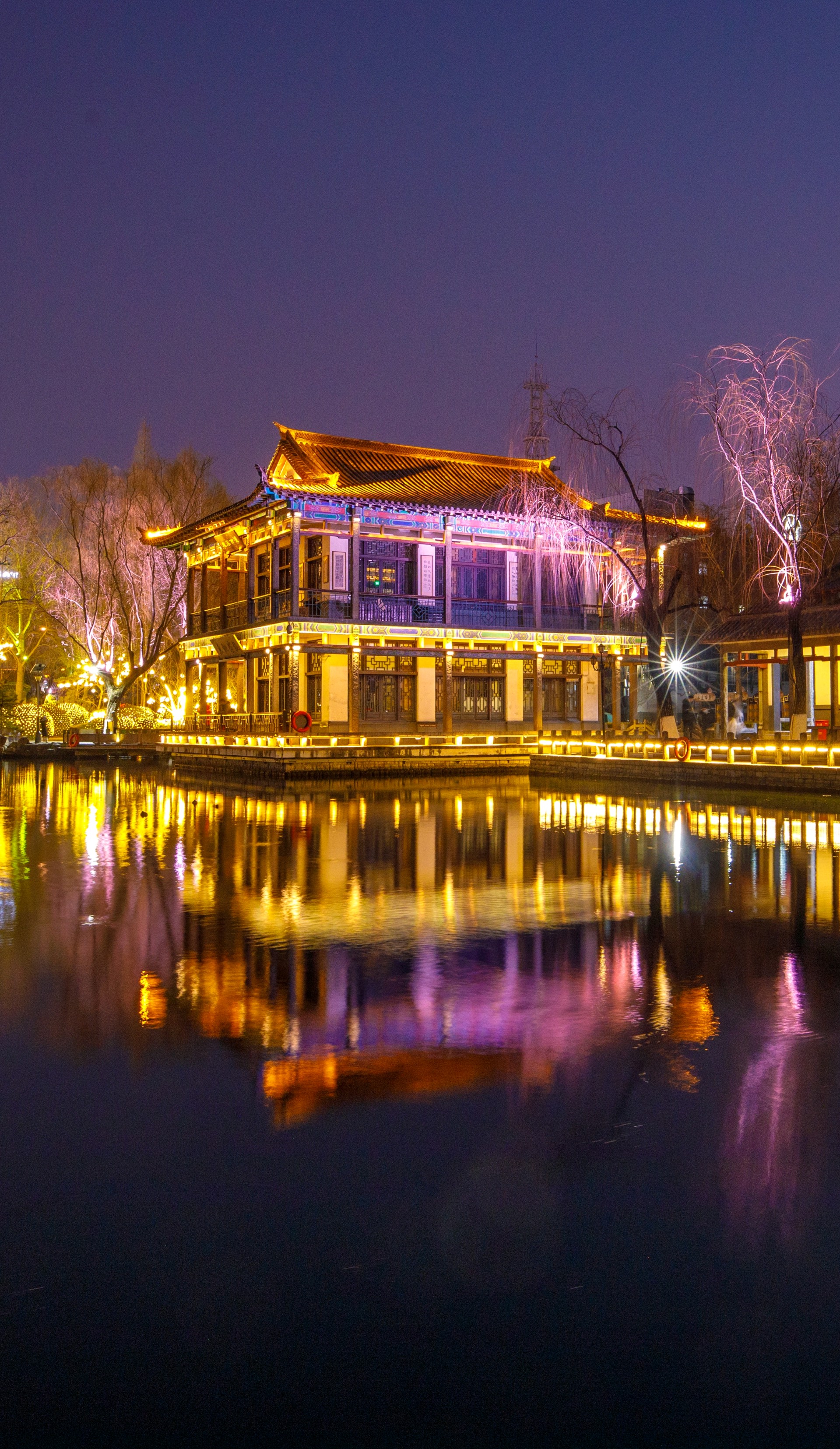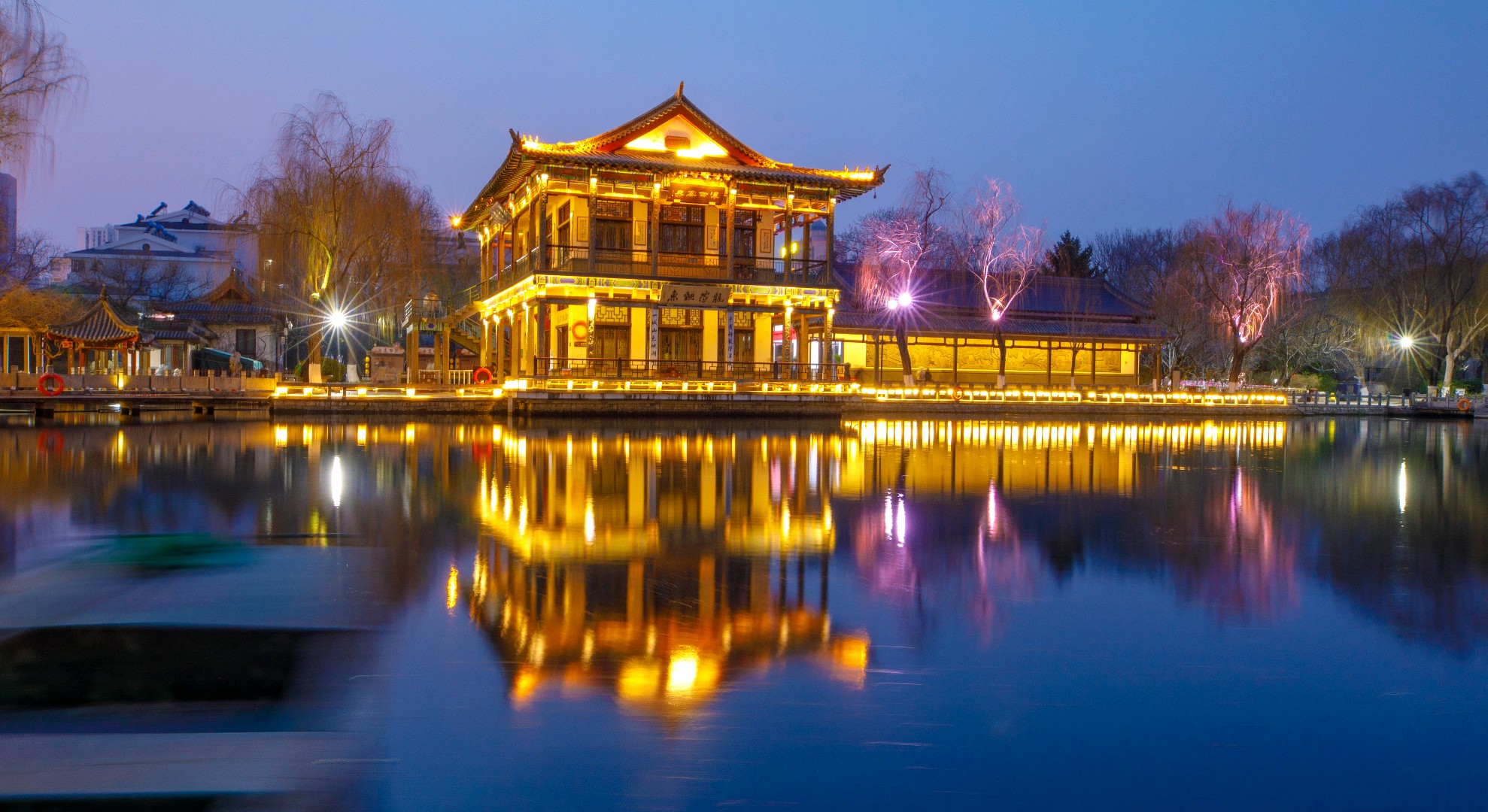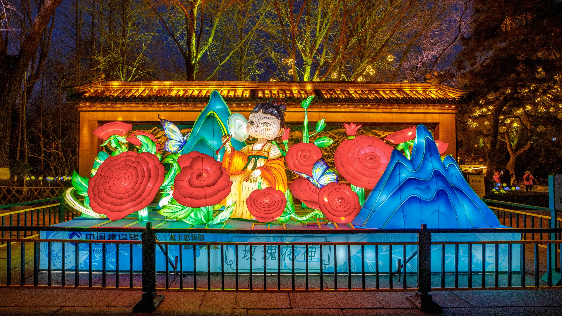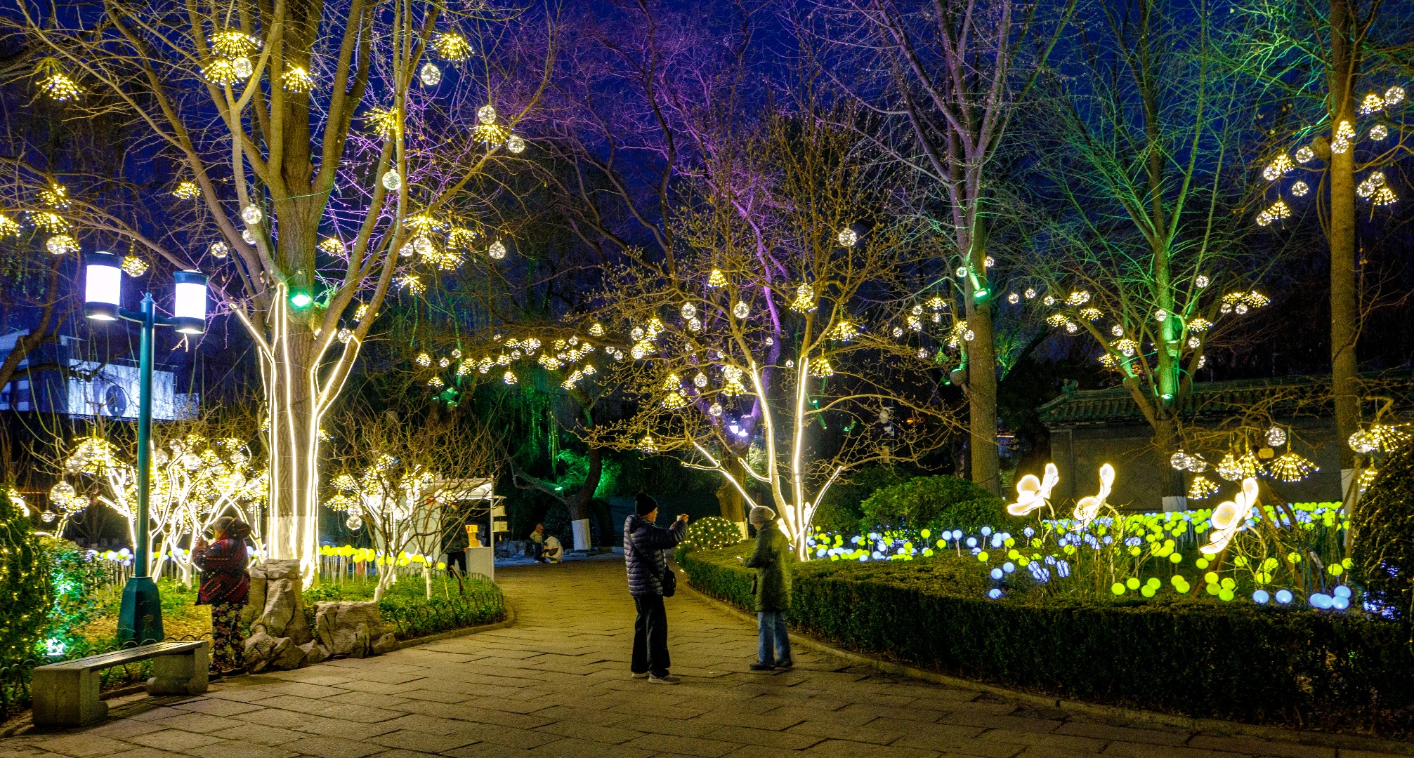 作为济南市第44届天下第一泉迎春花灯会的一部分,五龙潭公园在腊月23,小年之夜亮起了花灯,一组组花灯璀璨绽放,光影变幻间营造出诗意氛围,灯光与自然景色相互映衬,许多市民游客前来赏花灯、放河灯,提前解锁新春赏灯体验和浓郁春节氛围。
