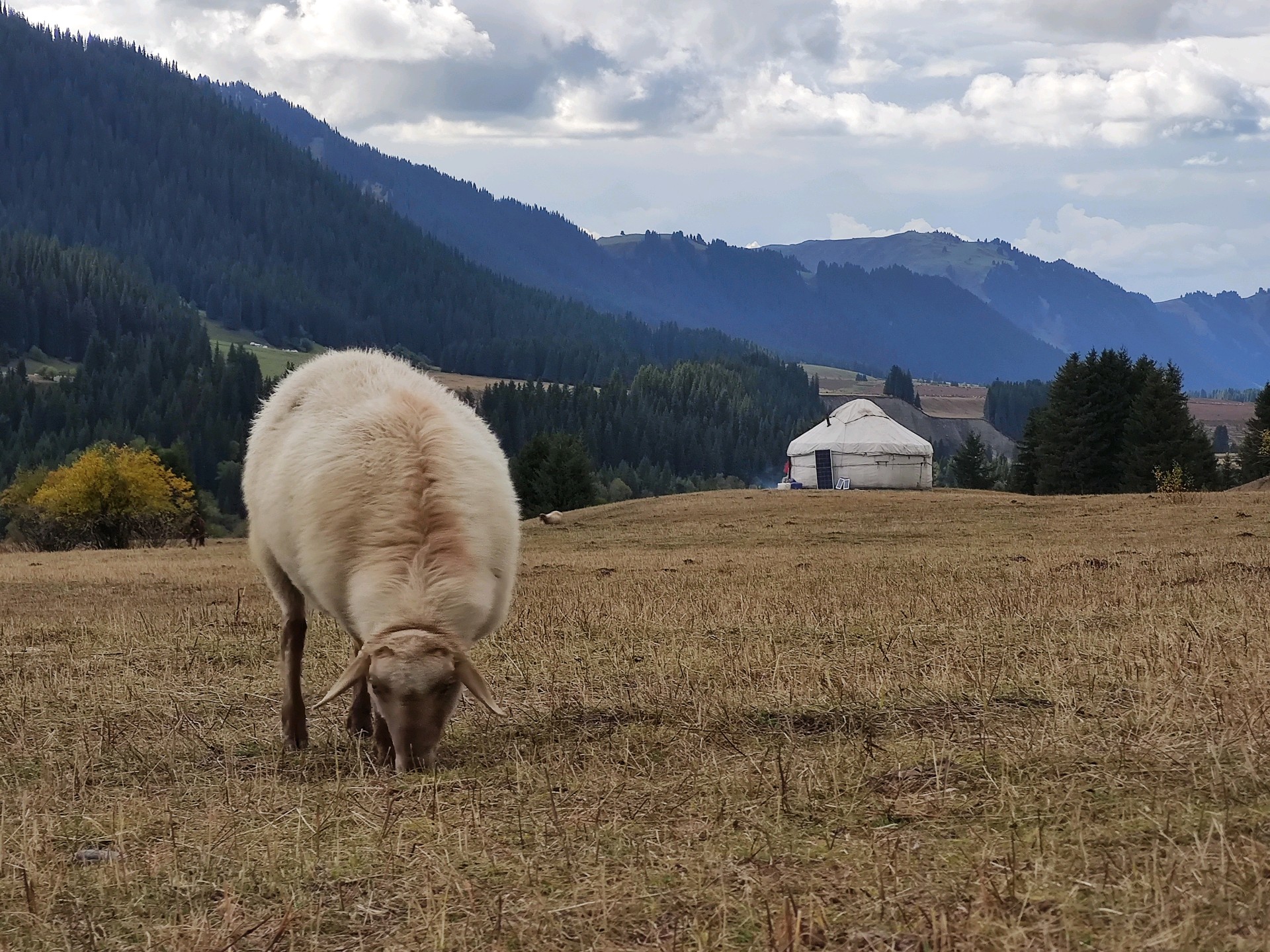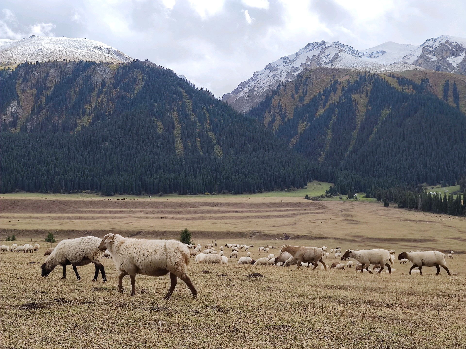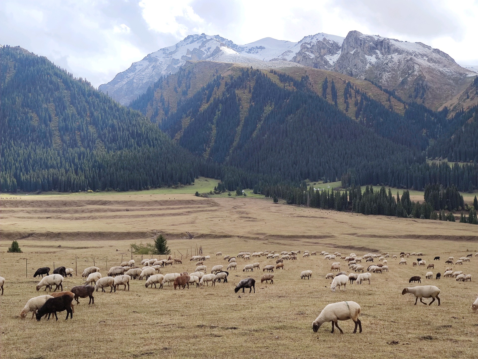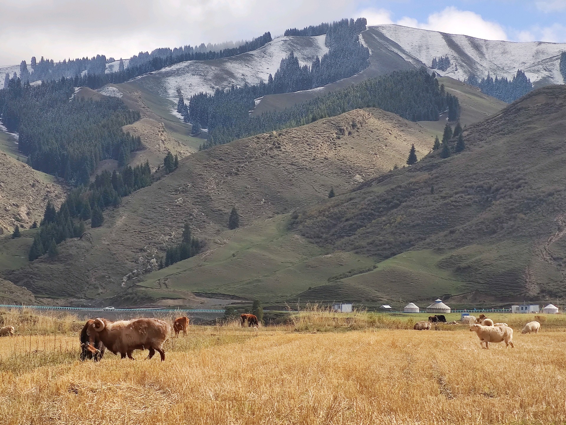 天山脚下好牧场,牛羊肥儿马儿壮。