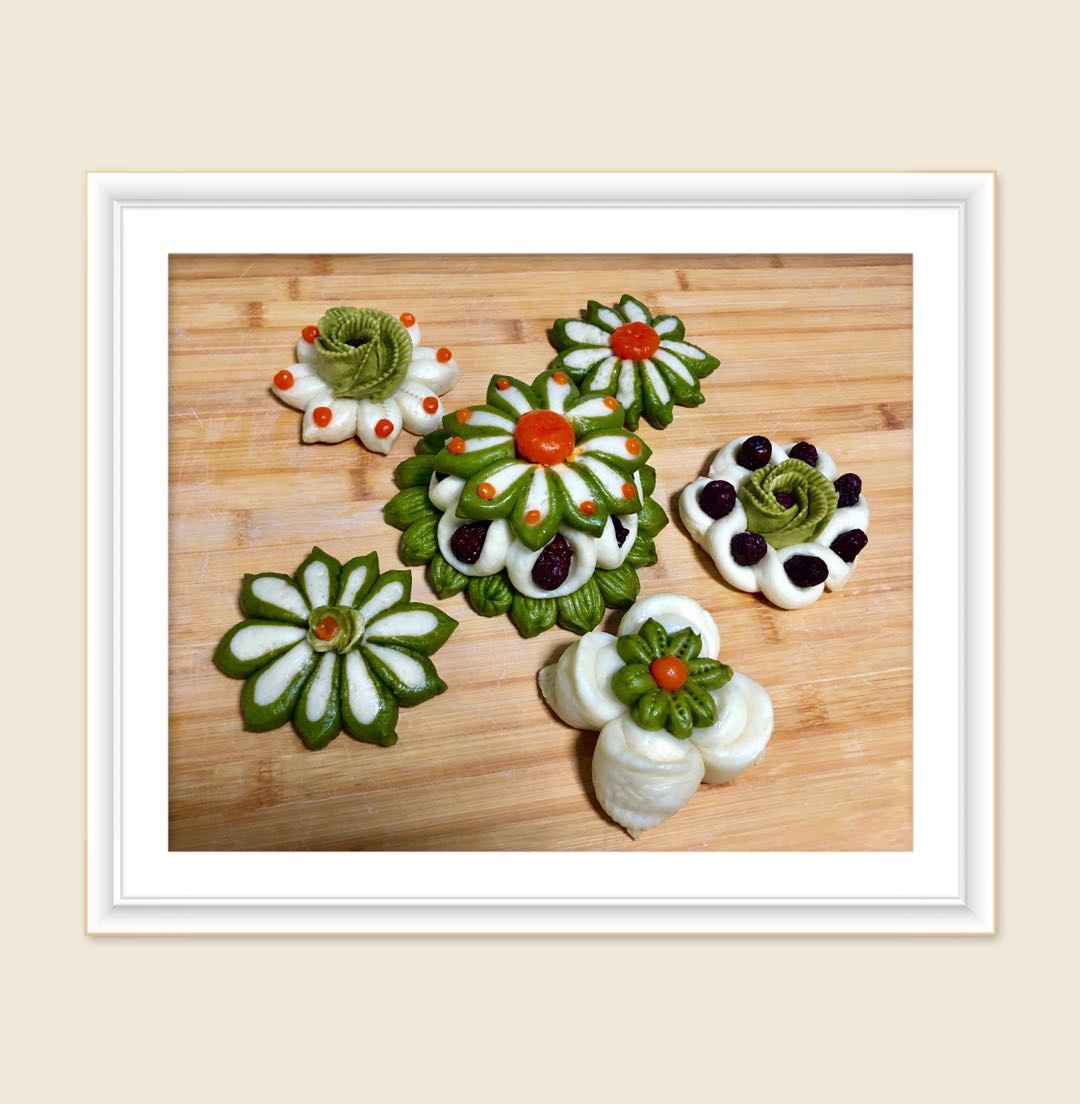 #晒晒我家拿手过年菜,新春红包等你来#晒晒我的手工花样面食,颜色分别用胡萝卜泥、紫甘蓝、南瓜泥、菠菜汁、火龙果泥和面做成自己喜欢的造型,朋友们看我做的像不像,您喜欢哪款造型,健康的食材做出健康的美食,给过年的餐桌增添新鲜的色彩和乐趣