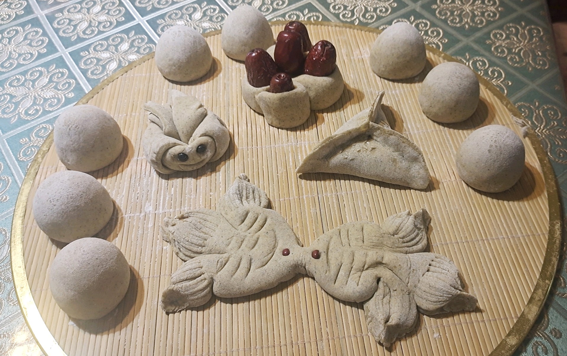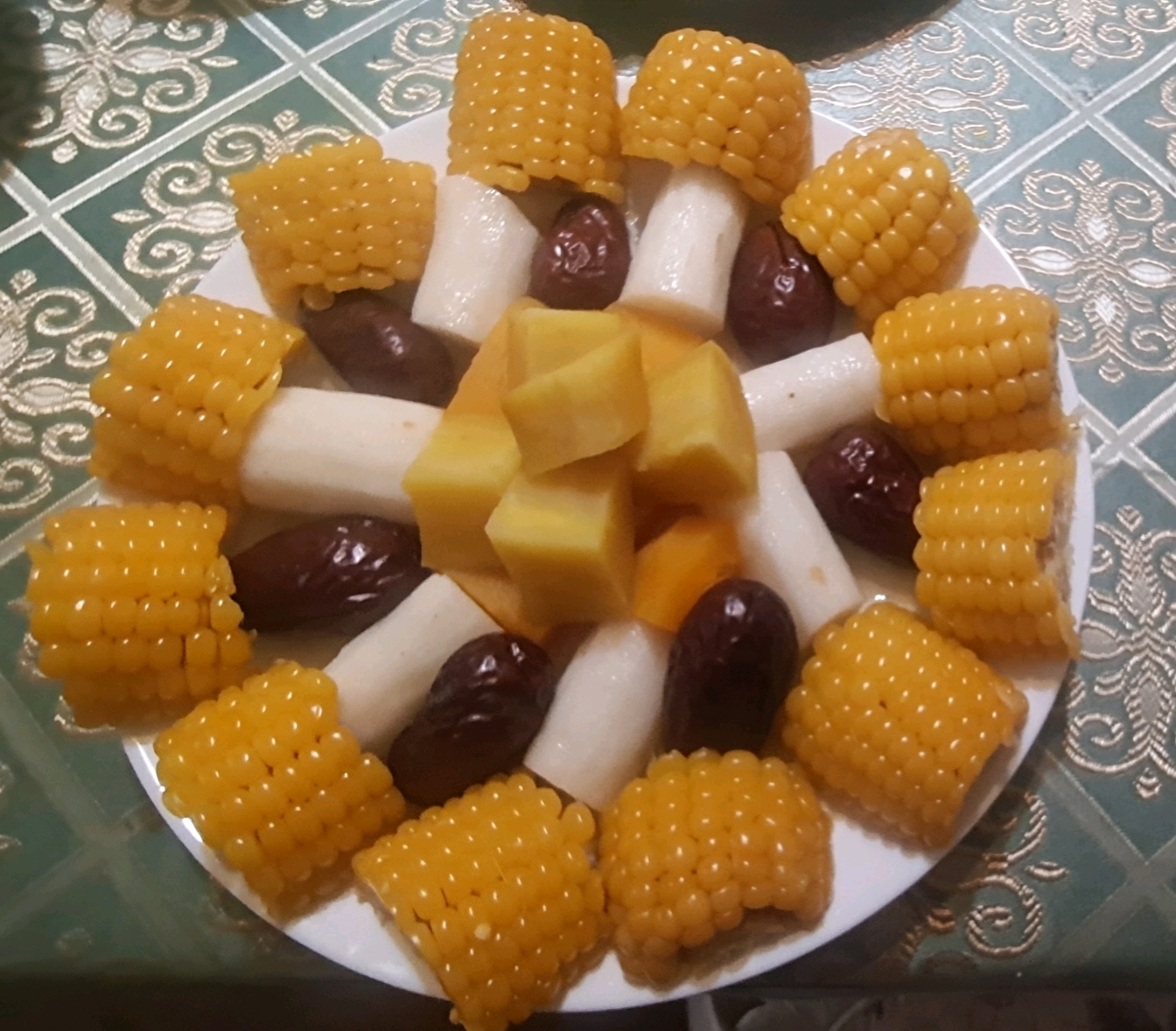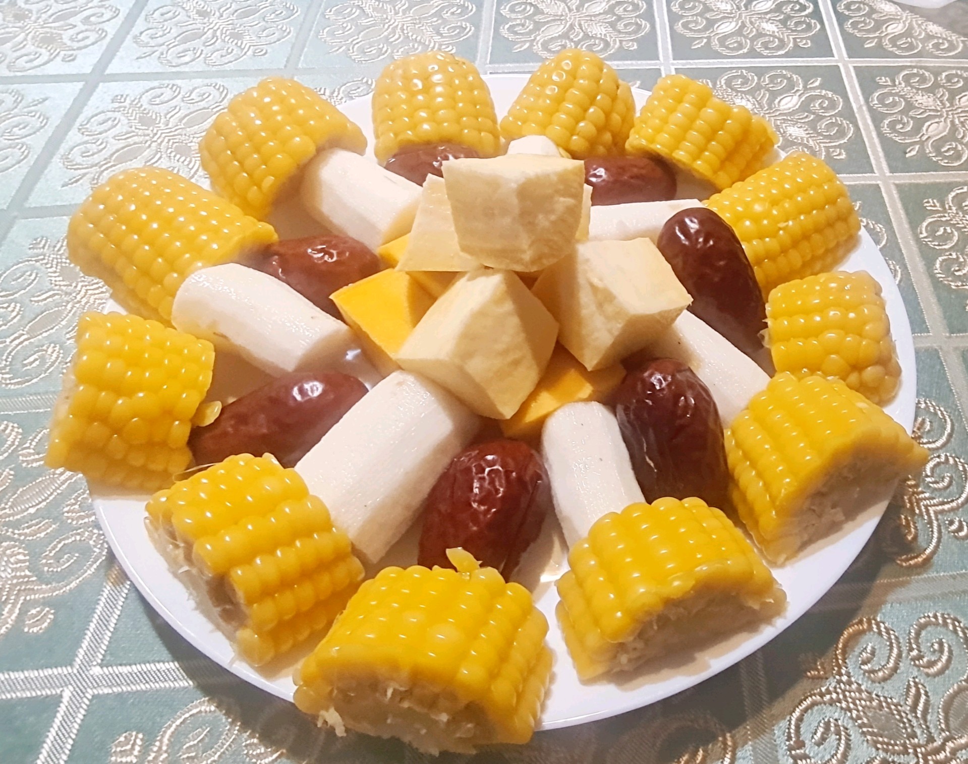 今天除夕蒸的粗粮馒头(鱼、糖三角、小兔子、枣馍馍)五谷丰登(玉米、山药、大枣、南瓜、地瓜)海鲜全家福(大虾、海参、鲍鱼、牛肉丸子、虾滑、鸡翅、五花肉、竹笋等)包的水饺(羊肉胡萝卜)。和家人其乐融融共度丰盛晚餐!