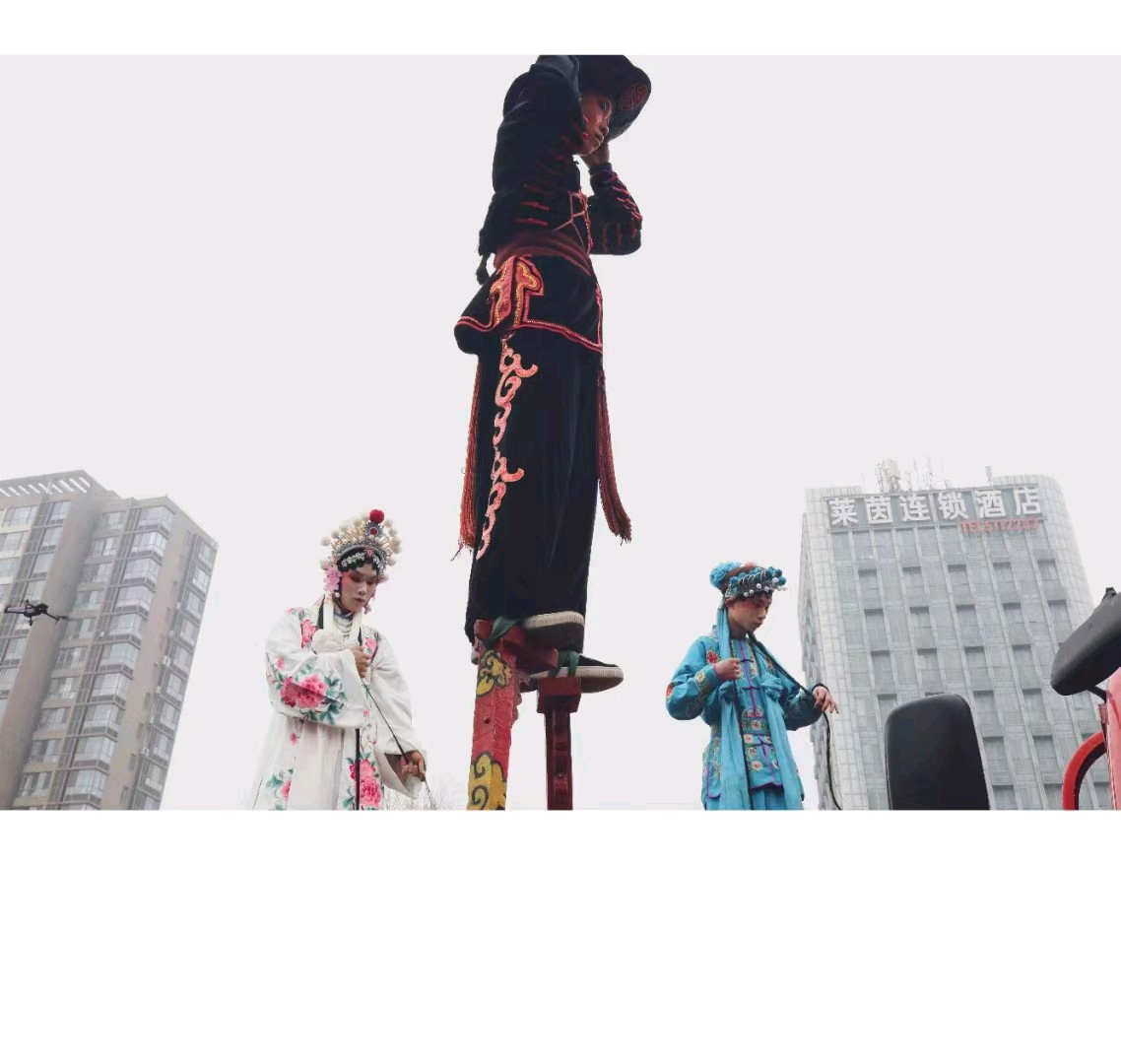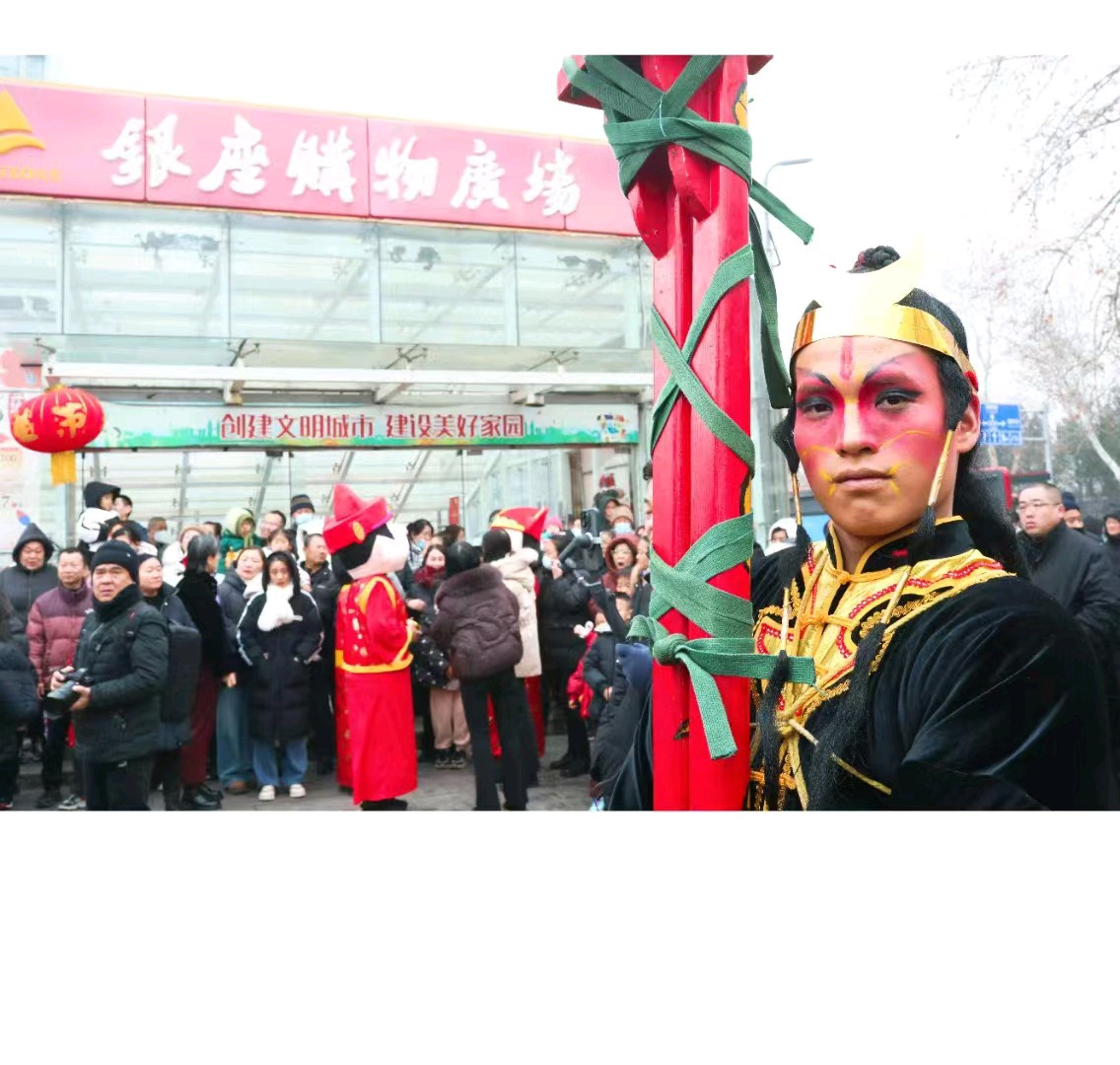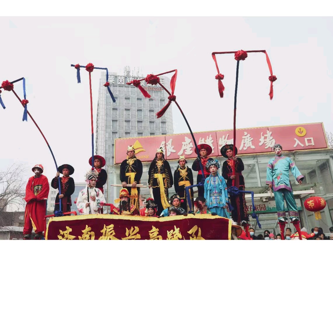 大年初五,济南高跷队走进淄川银座广场(守军)