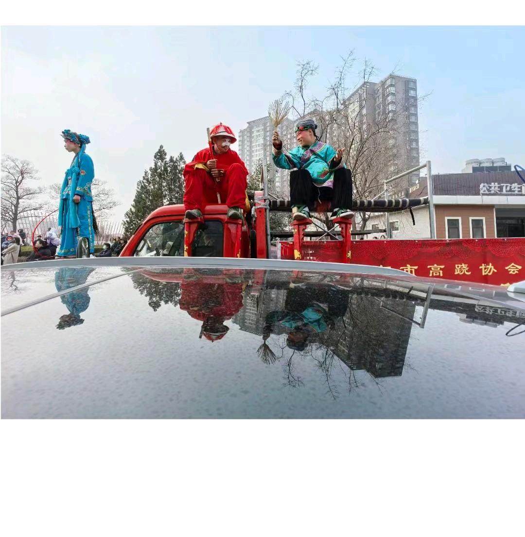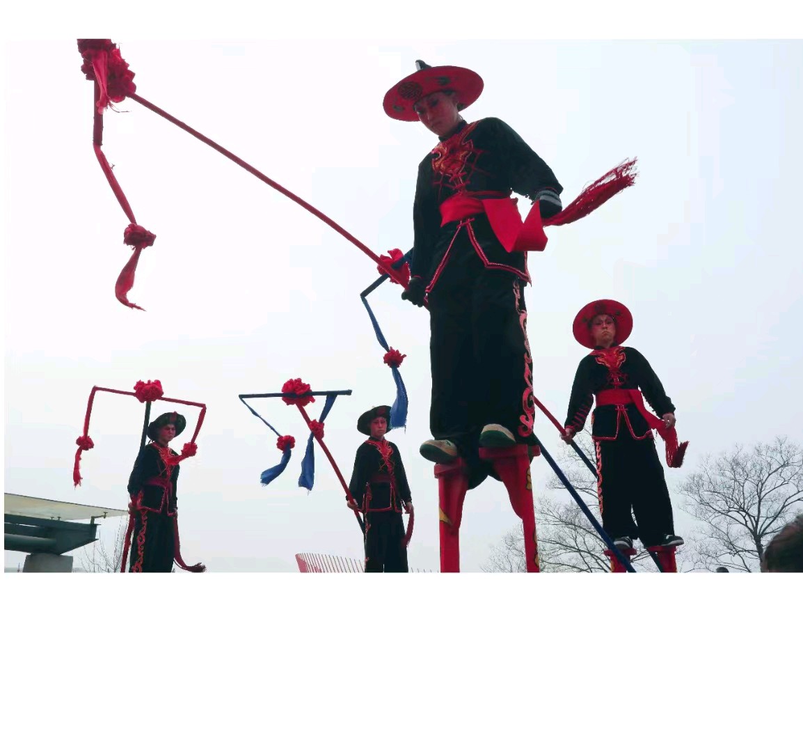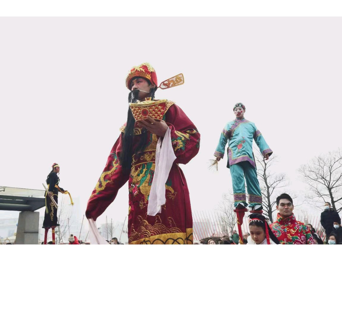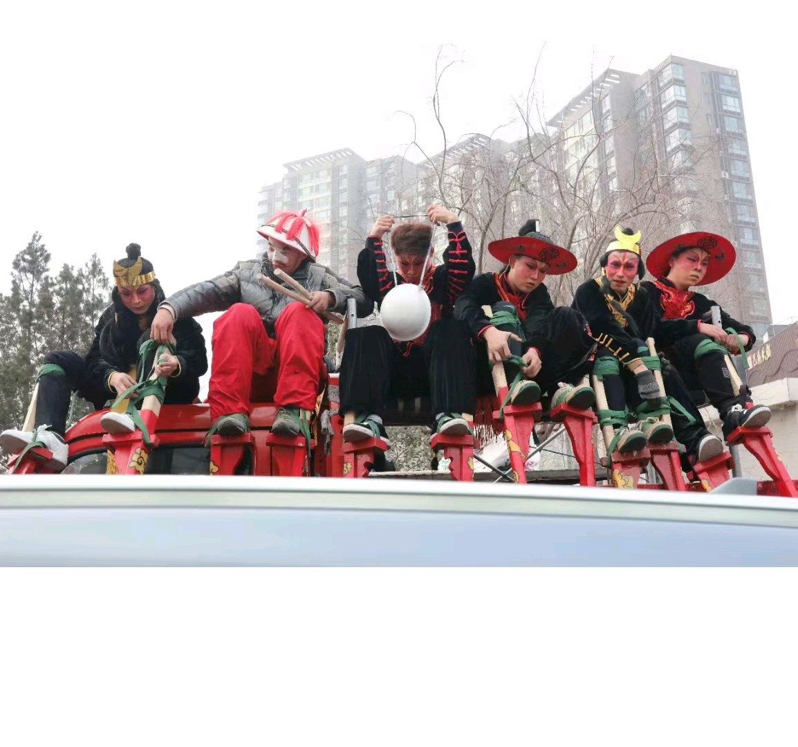 大年初五,济南高跷队走进淄川银座广场(守军)