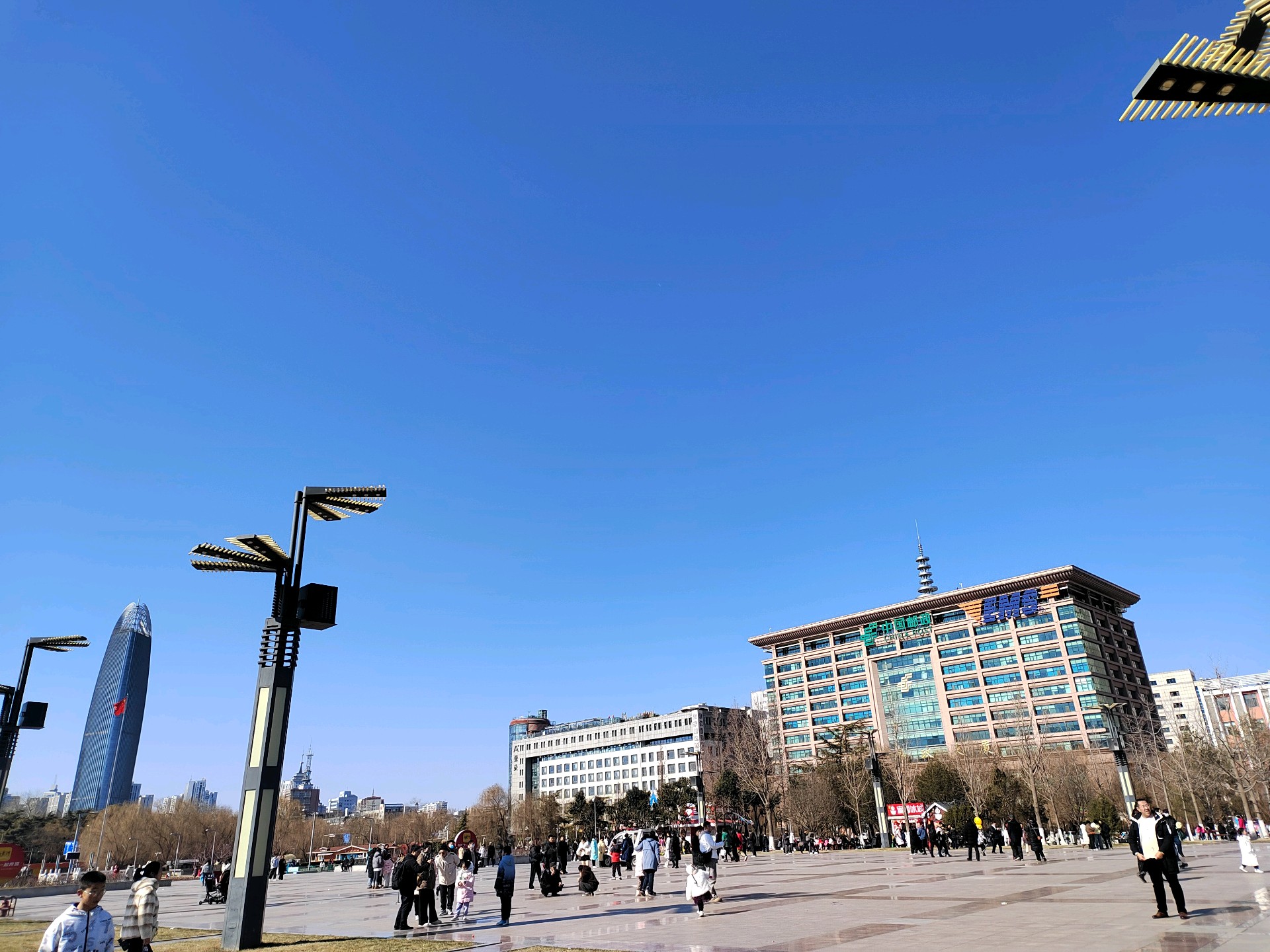 今天,打卡济南的大客厅泉城广场。最美“泉城蓝”上线。瓦蓝瓦蓝的天空,一尘不染,透明度极高。抬头仰望天空,令人心旷神怡,这么美的天空超治愈!
