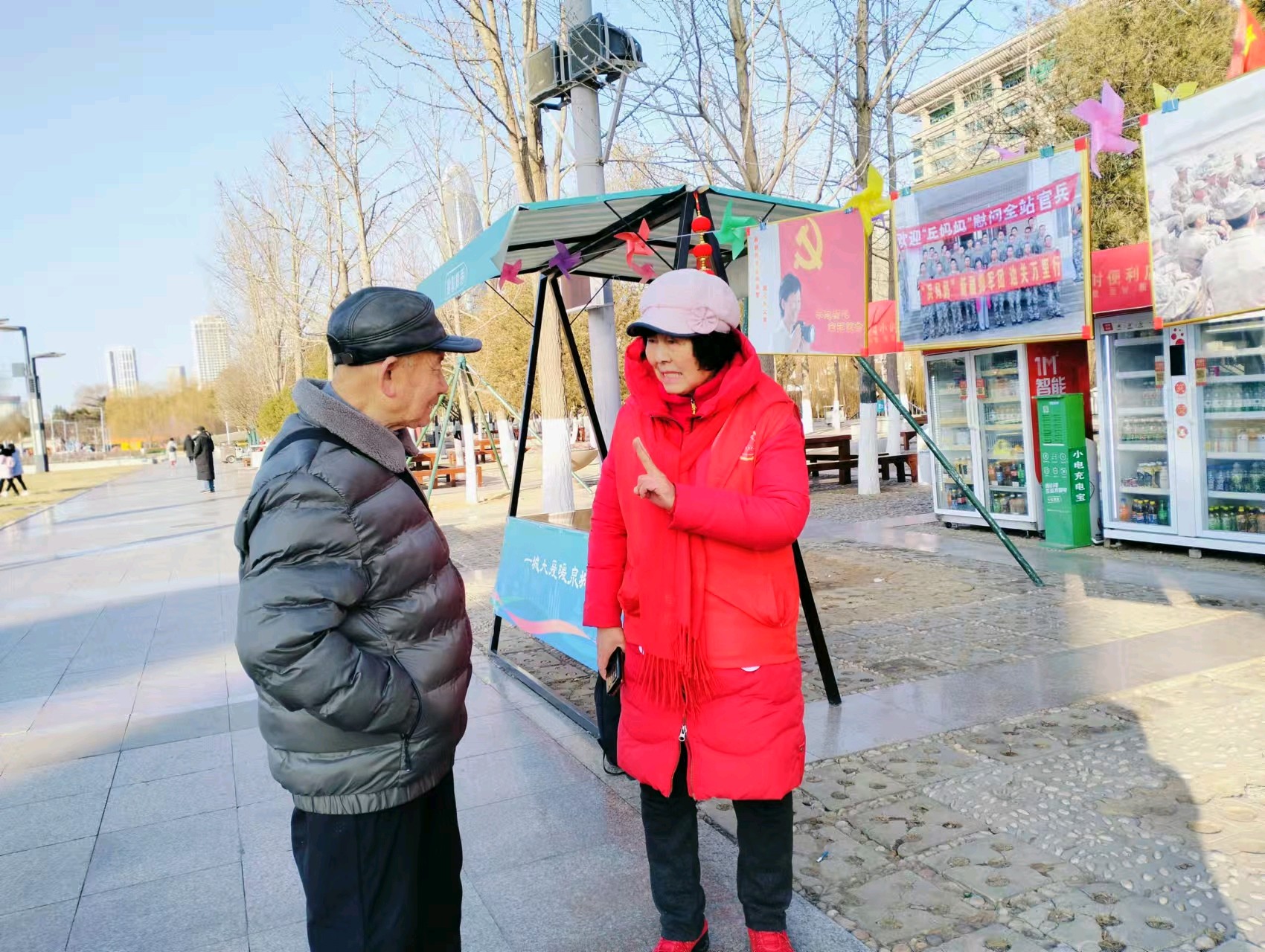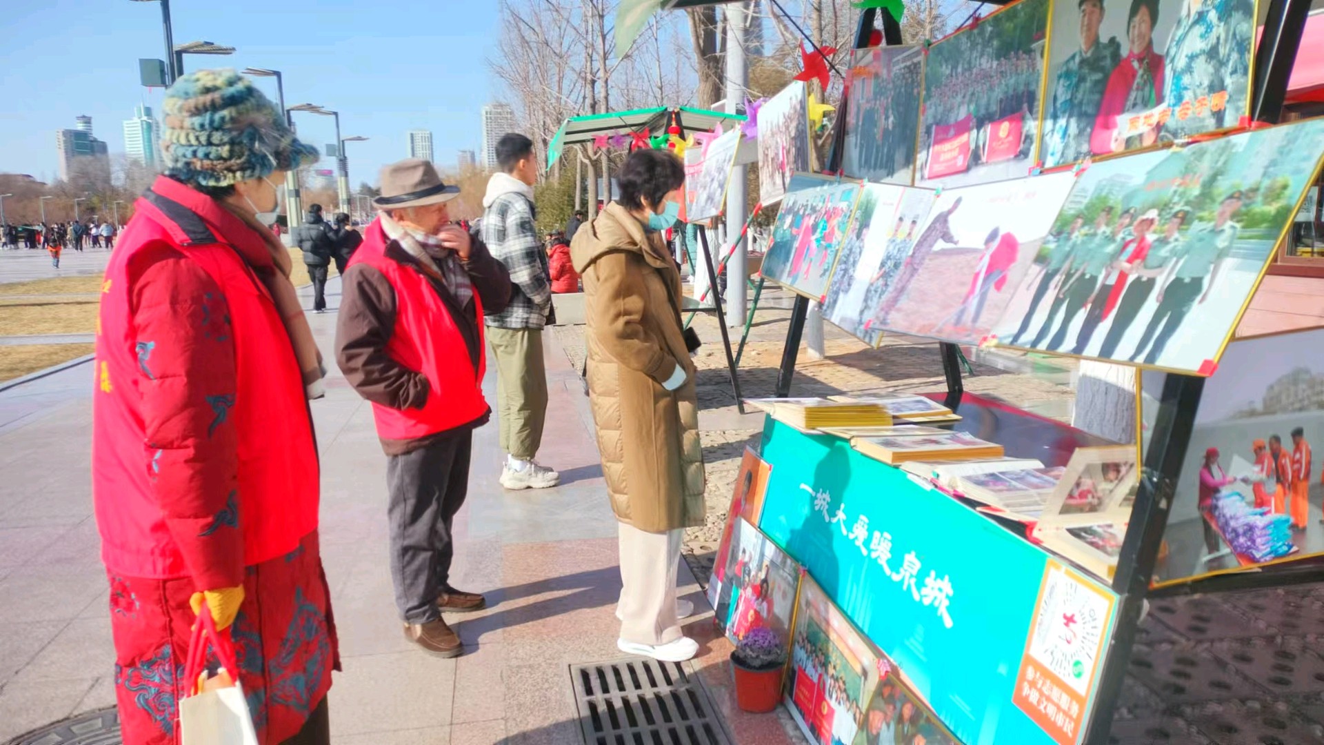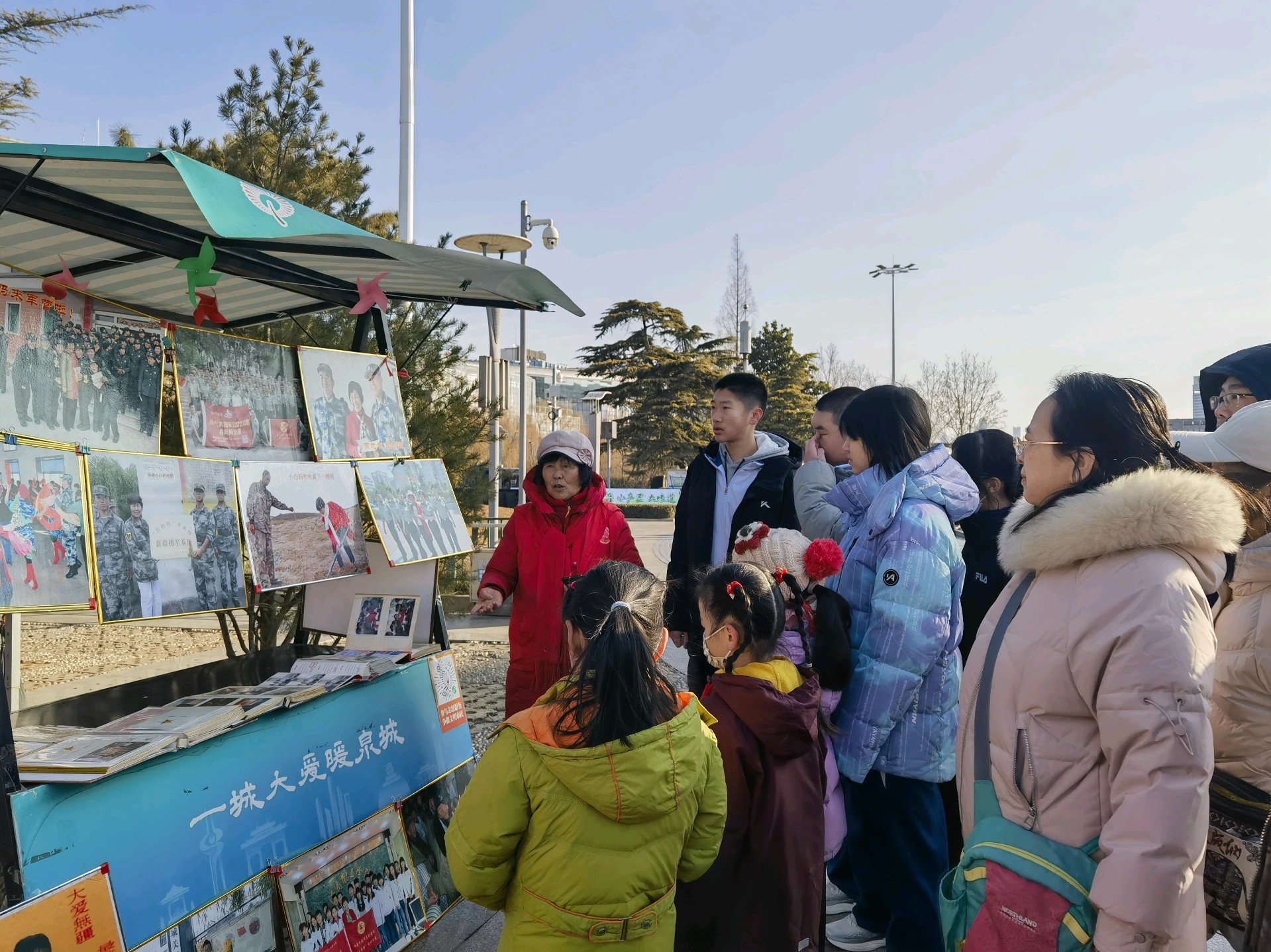 2月3日上午,我们来到泉城广场泉城义工志愿服务站,把29年拥军部分图片,做个小型展览,宣传、弘扬拥军、爱军光荣传统。张张拥军图片,吸引老人和孩子停下脚步观看,在此,还得遇90多岁抗美援朝老兵,共叙军人情怀;
