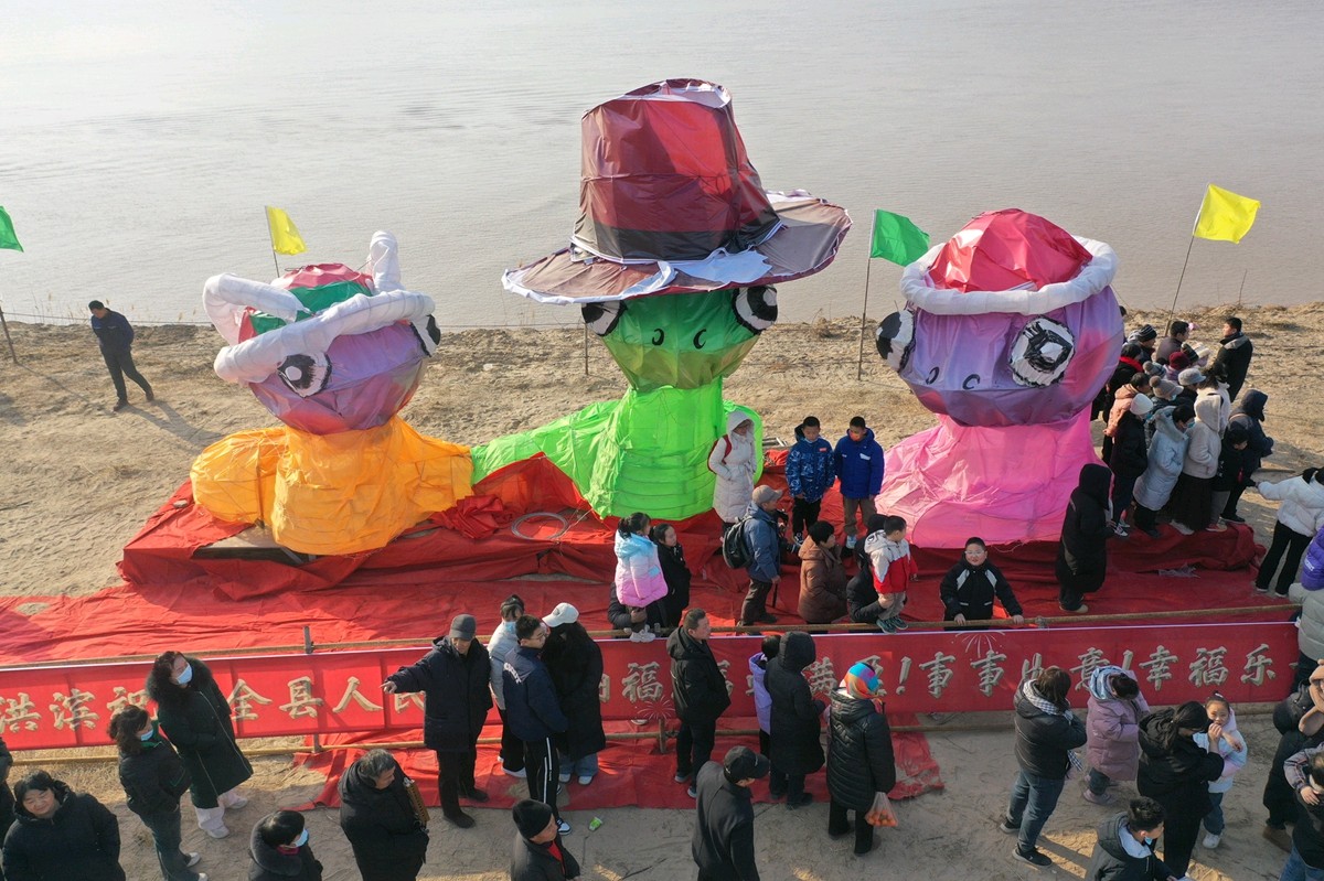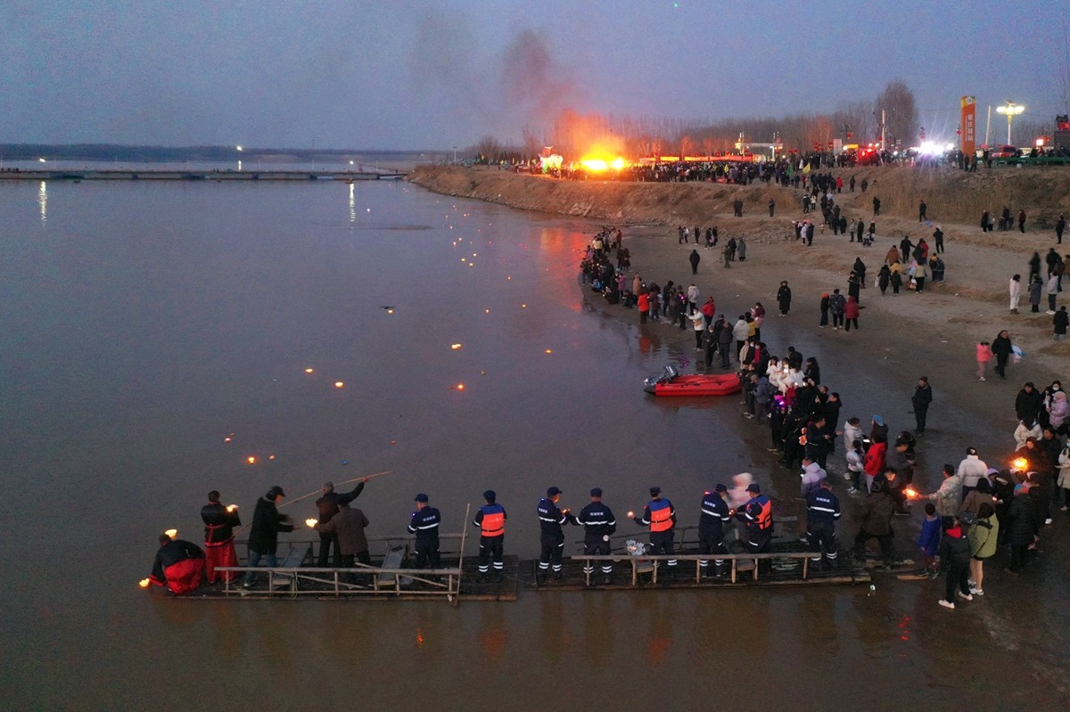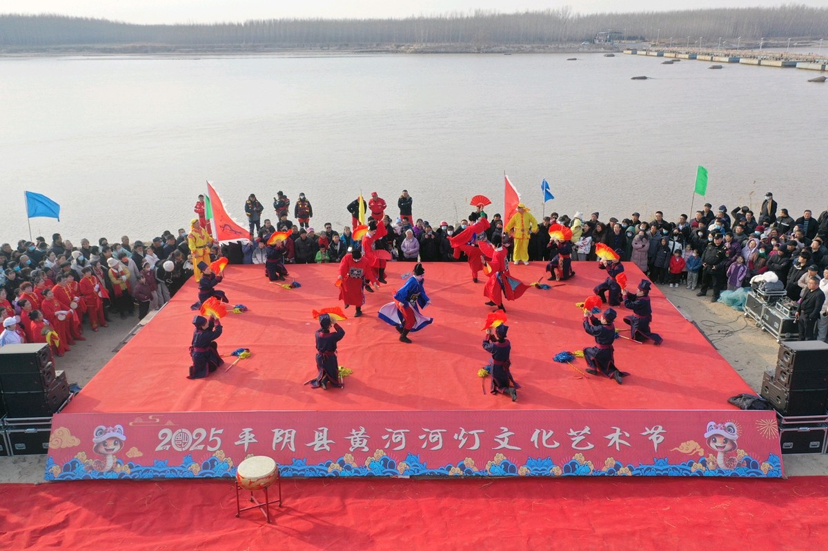 2月10日(正月十三),2025平阴县黄河河灯文化艺术节在翟庄村黄河渡口开幕。艺术节举办黄河祈福、放河灯、扭秧歌、打花棍、特色扮玩等文化活动,传承中国民间彩灯艺术。