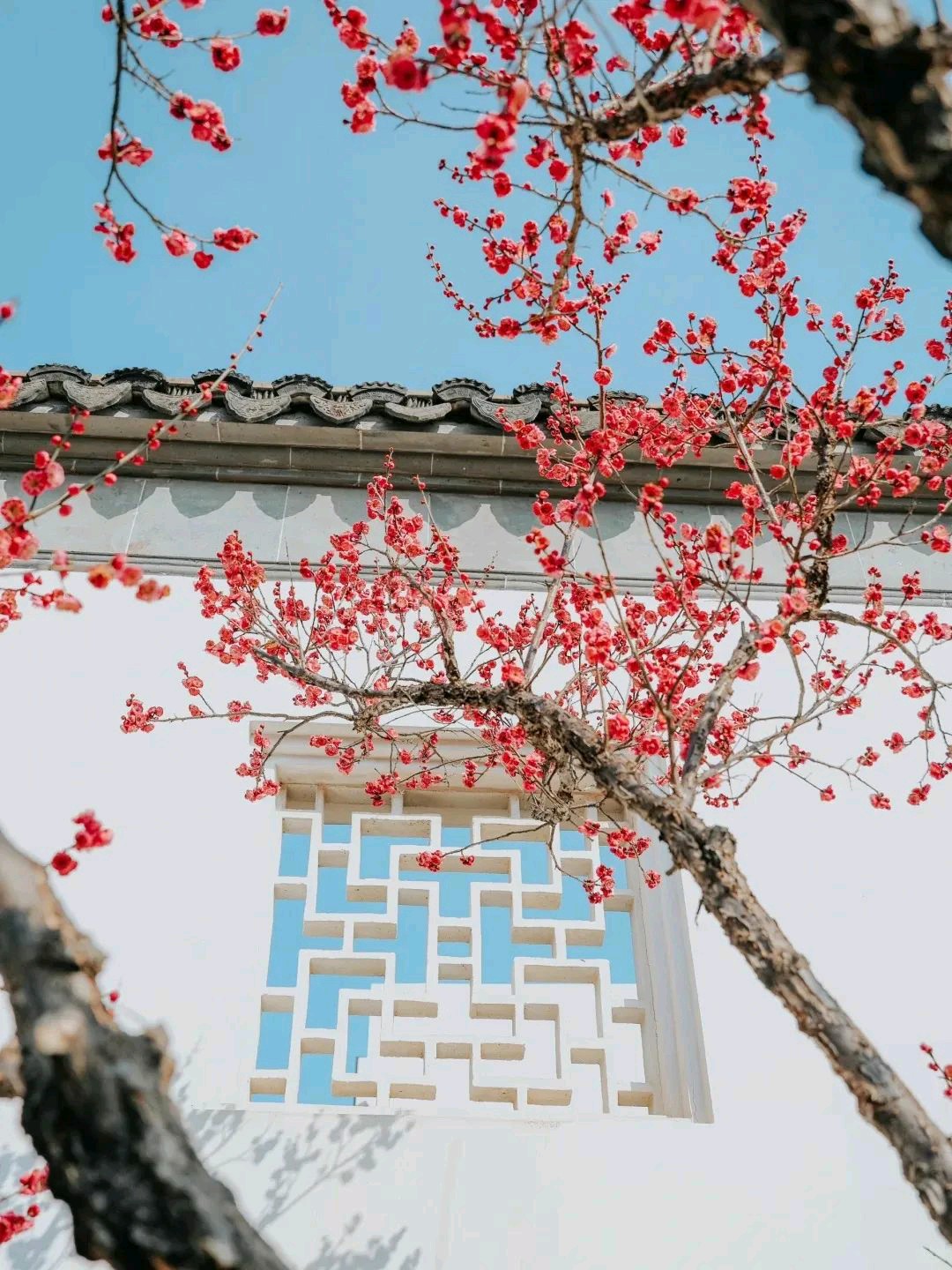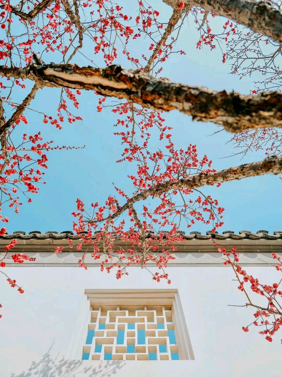 这里的梅花,静谧又坚韧,枝头上缀满了故事。青瓦白墙之间,红梅斜倚学古堂,每一朵梅花都像是古人的笔墨,透着浓浓的风雅与温情。在这片梅香秘境里,每一阵春风都带着岁月的温柔,每一朵花开都是一段古老的传说。仿佛只要你轻轻转身,就能撞见古人挥毫泼墨的身影。 梅花与书香共舞,春风中感受江南的诗意与优雅。