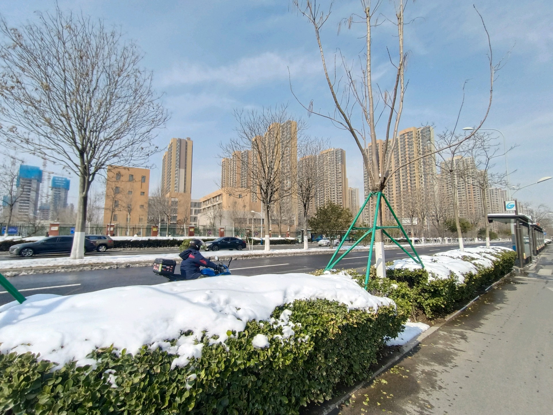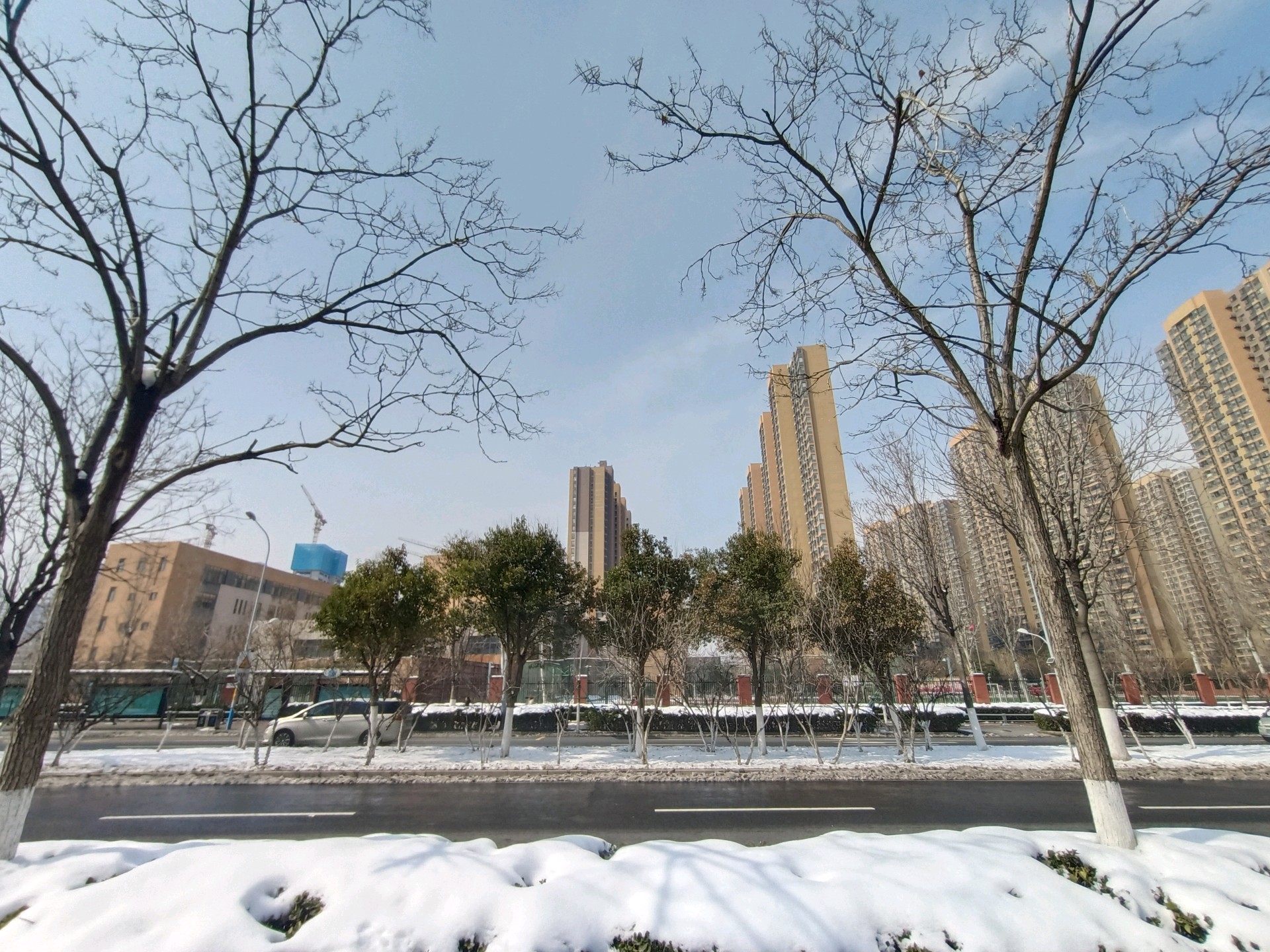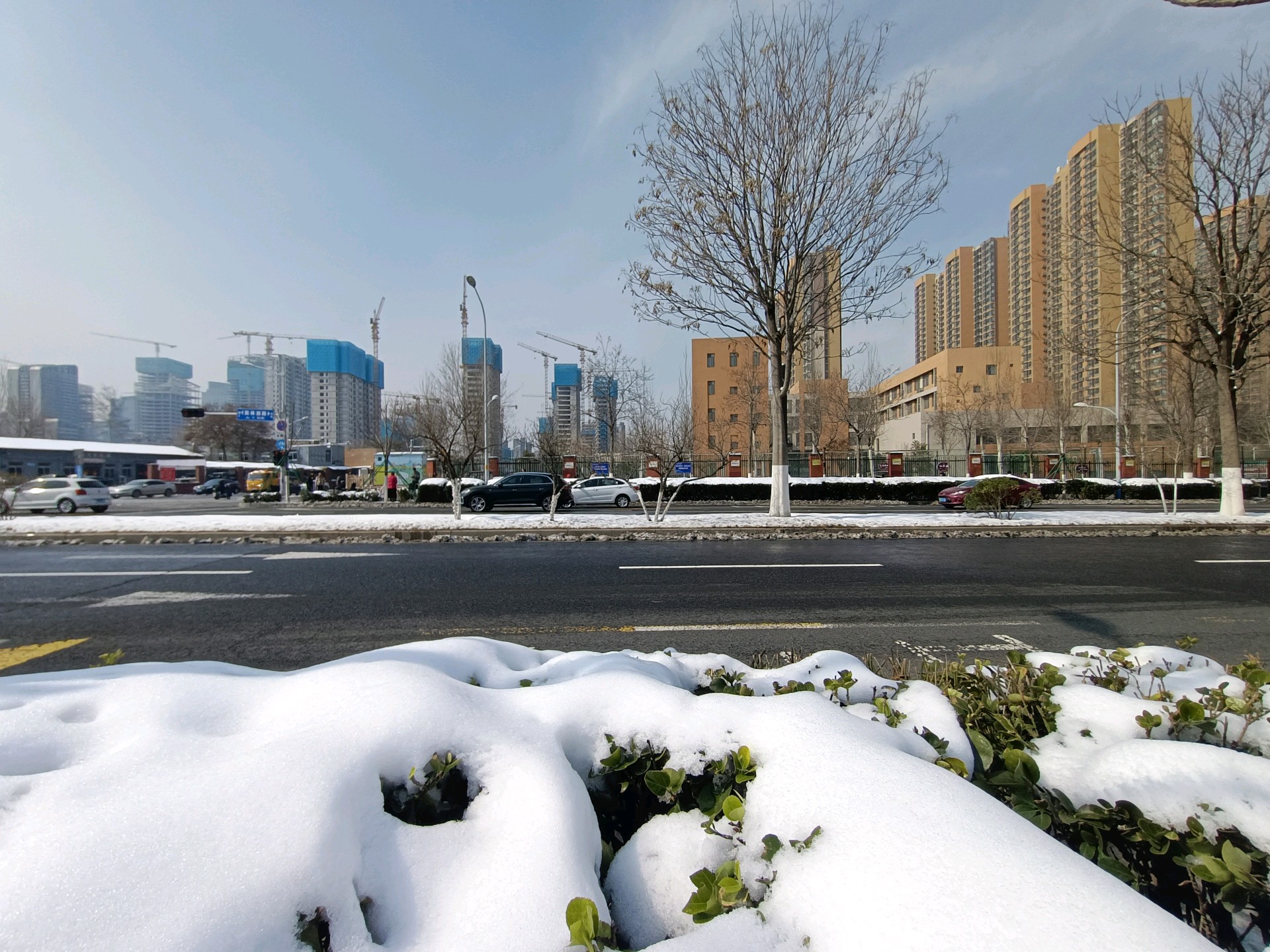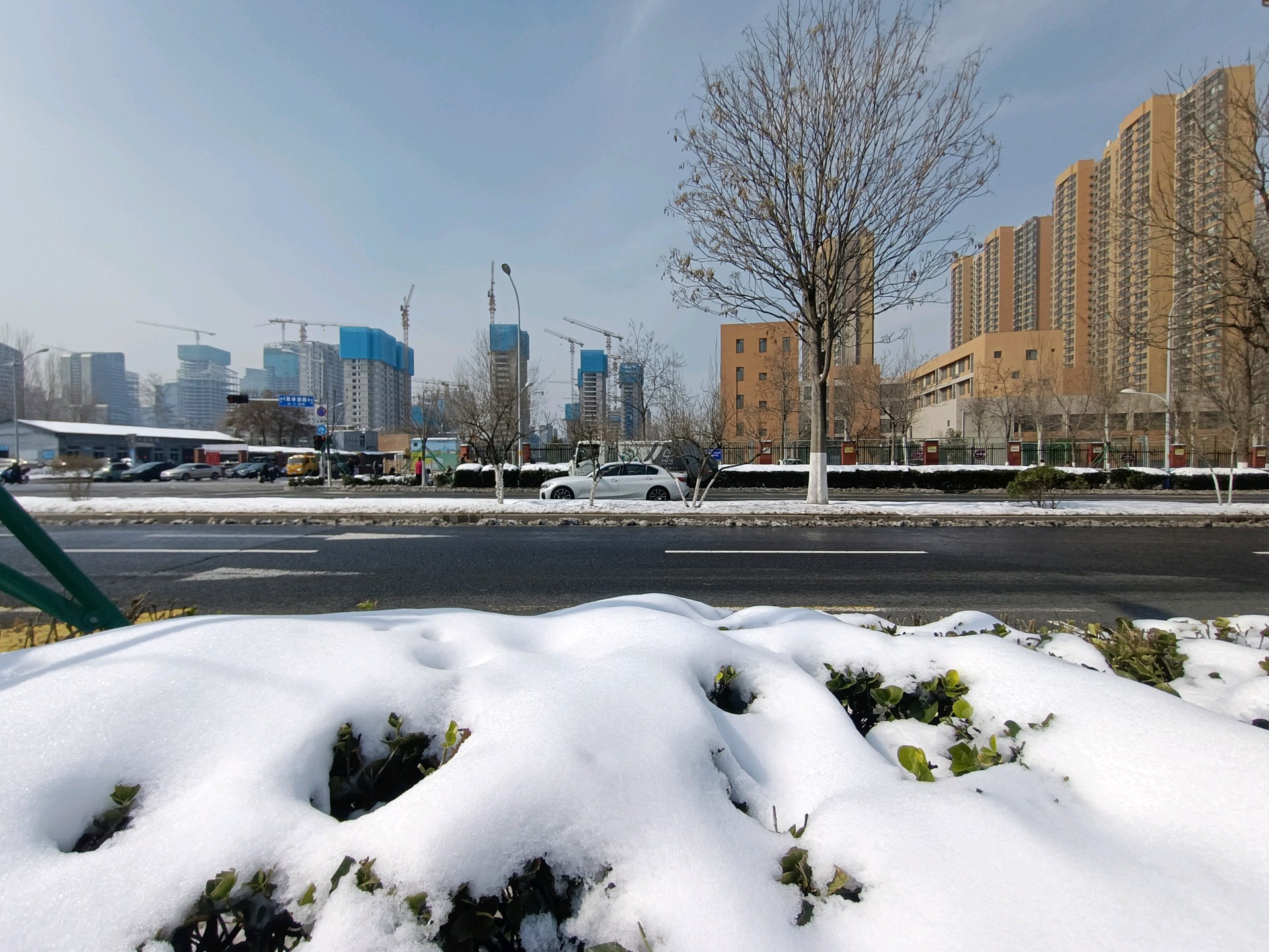 济南不是烟台、威海,所以我们对前天的暴雪还是情有独钟的,今天在公园和路边,仍有不少市民在赏雪拍景。银装素裹分外妖娆,即便是在喧嚣的城市里,绿化带中的积雪也是道路上最美丽的饰品。今天中午,拍摄于奥体西路和奥体中路。