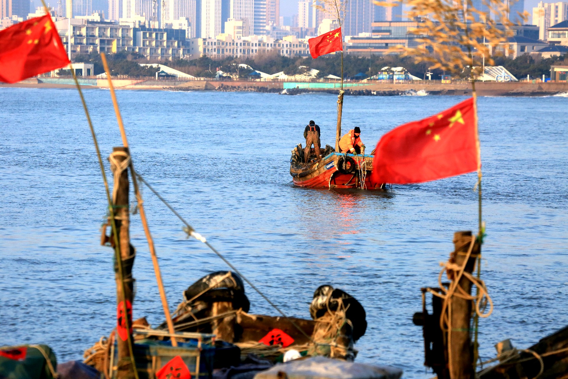 2025年3月5日清晨,山东省日照市,在大泉沟渔港,渔民们在朝阳中整理渔具,等待合适的潮水出海捕鱼。经过前几天的大风大雨侵袭,海面恢复平静,风暴潮预警解除,渔民们在明媚的春光中,驾船驶向大海深处,开启春捕模式。