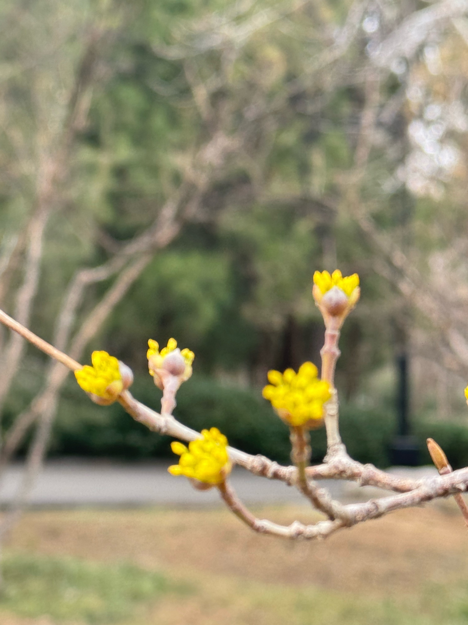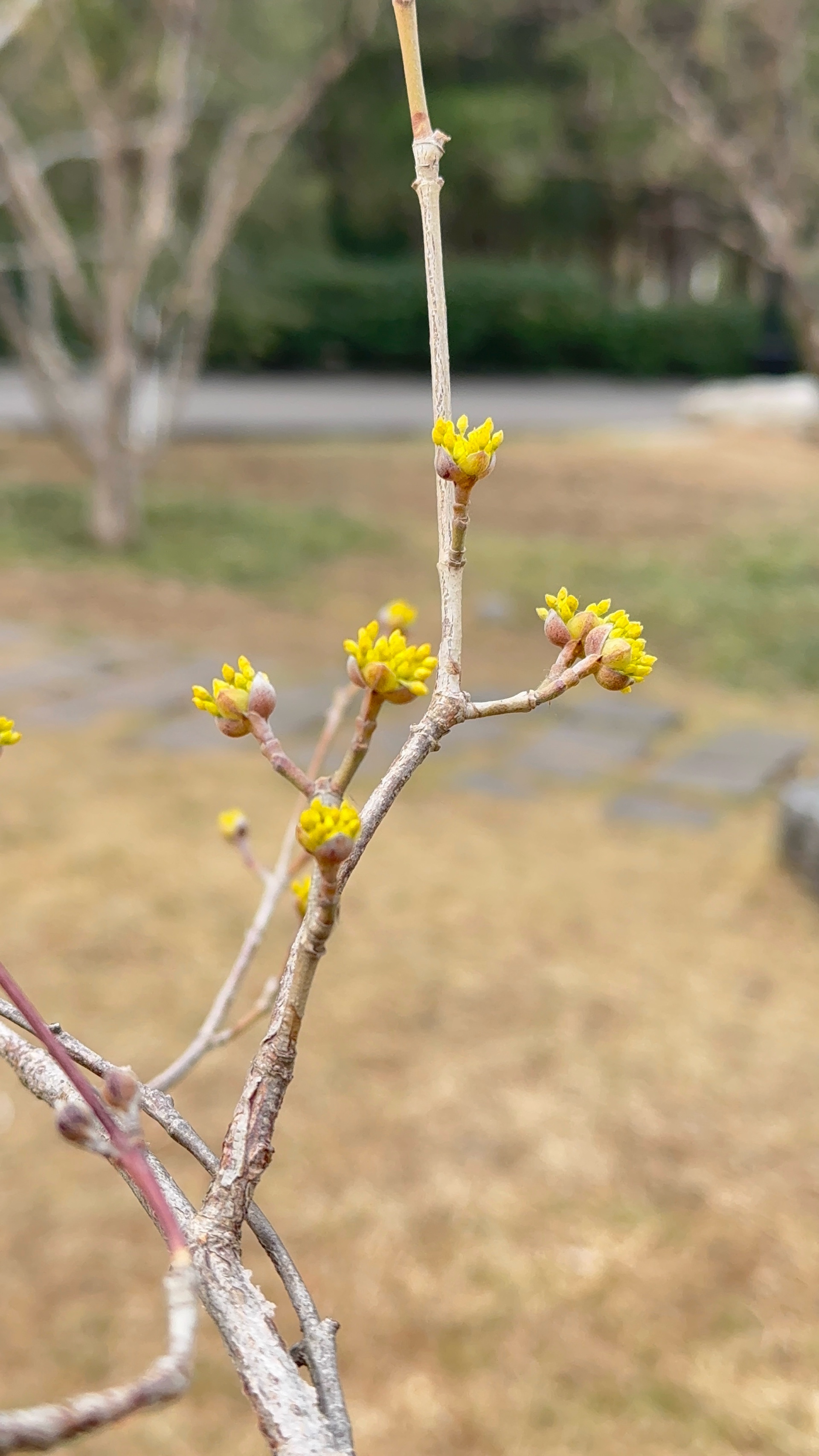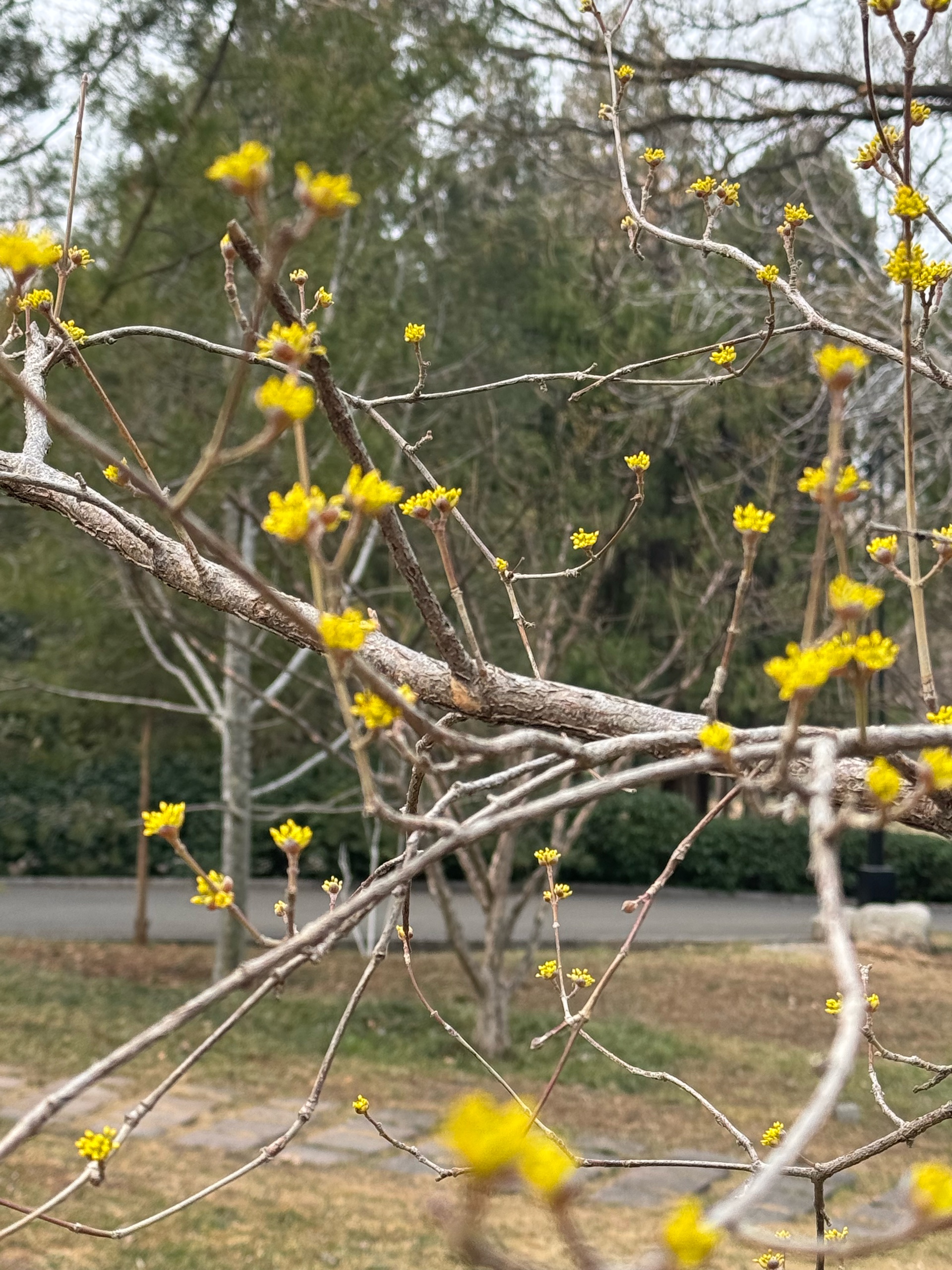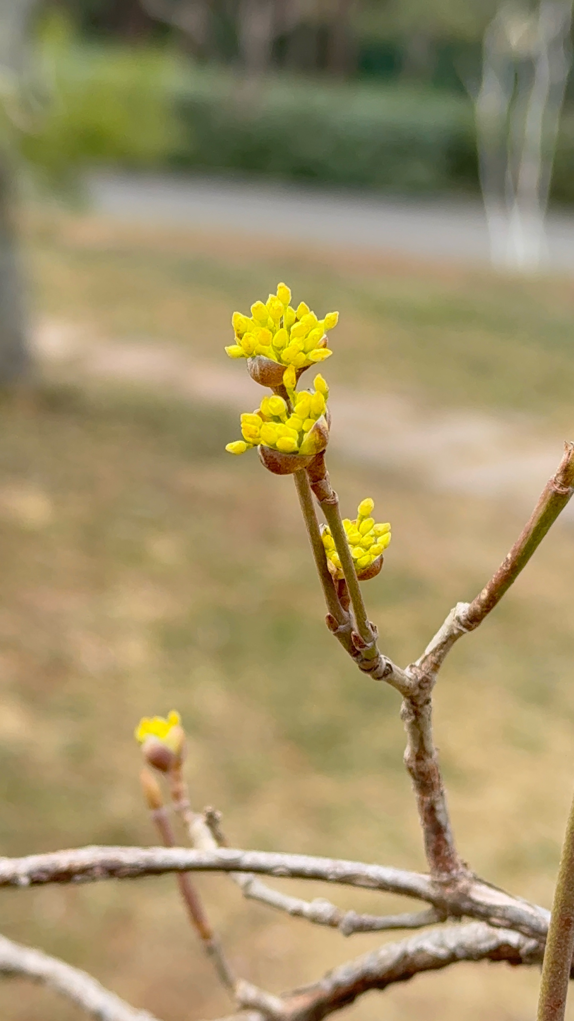 济南千佛山公园的山茱萸开花了,黄色小花,粒粒金色,伞形花序,张开朵朵,美极了。