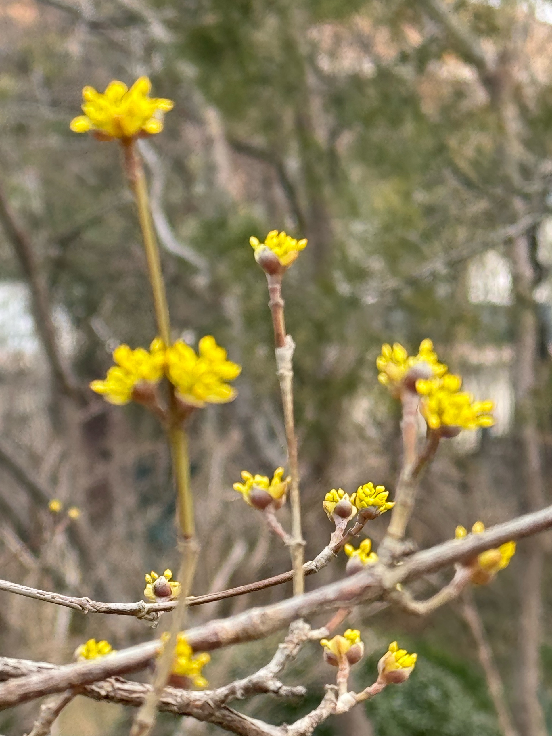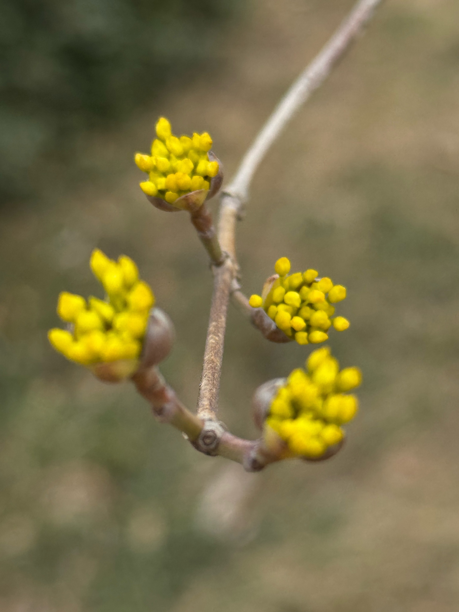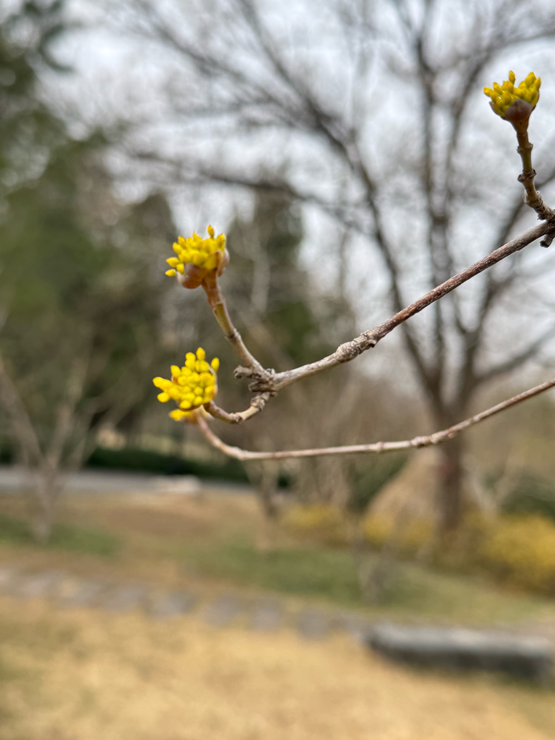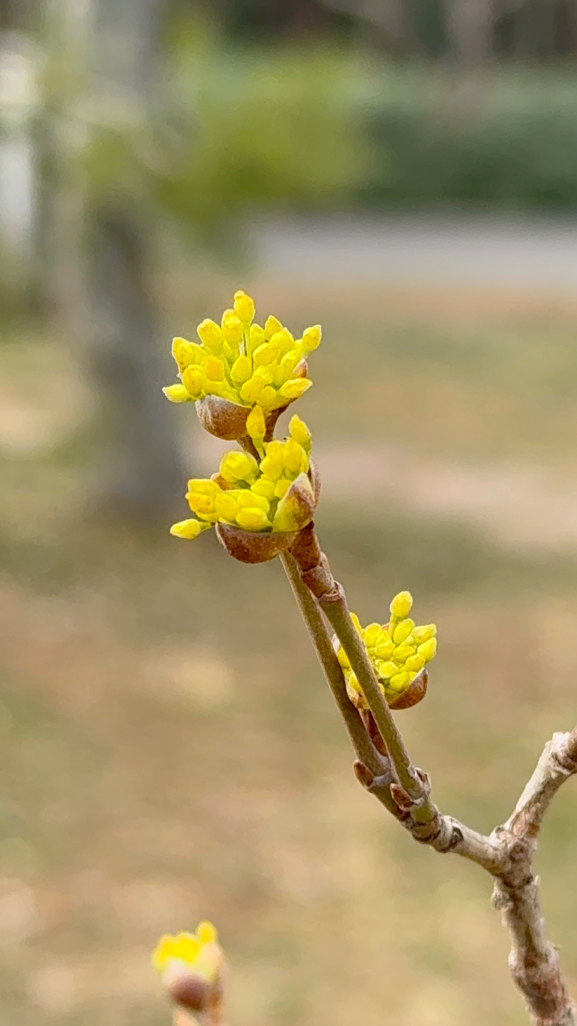 济南千佛山公园的山茱萸开花了,黄色小花,粒粒金色,伞形花序,张开朵朵,美极了。
