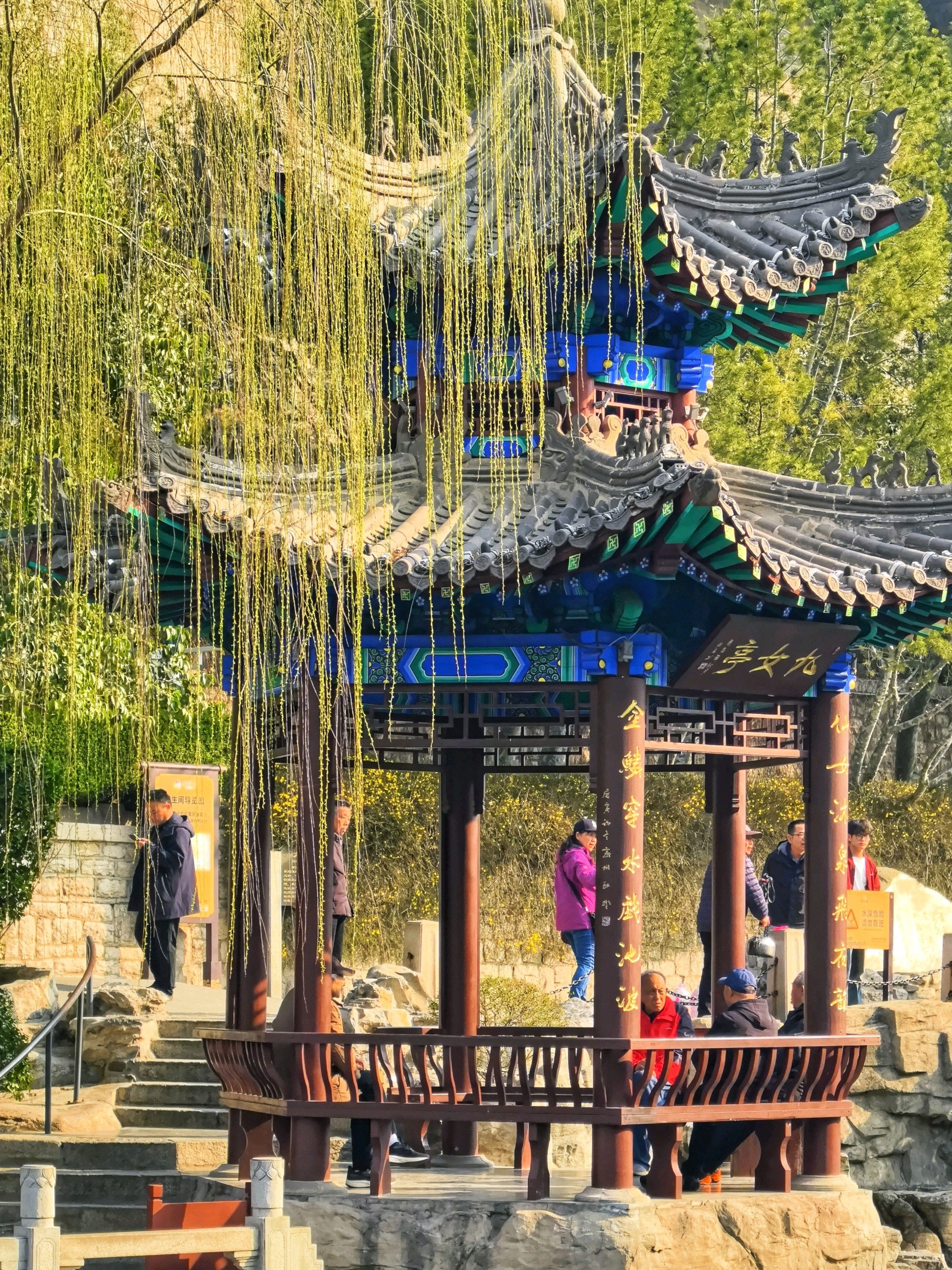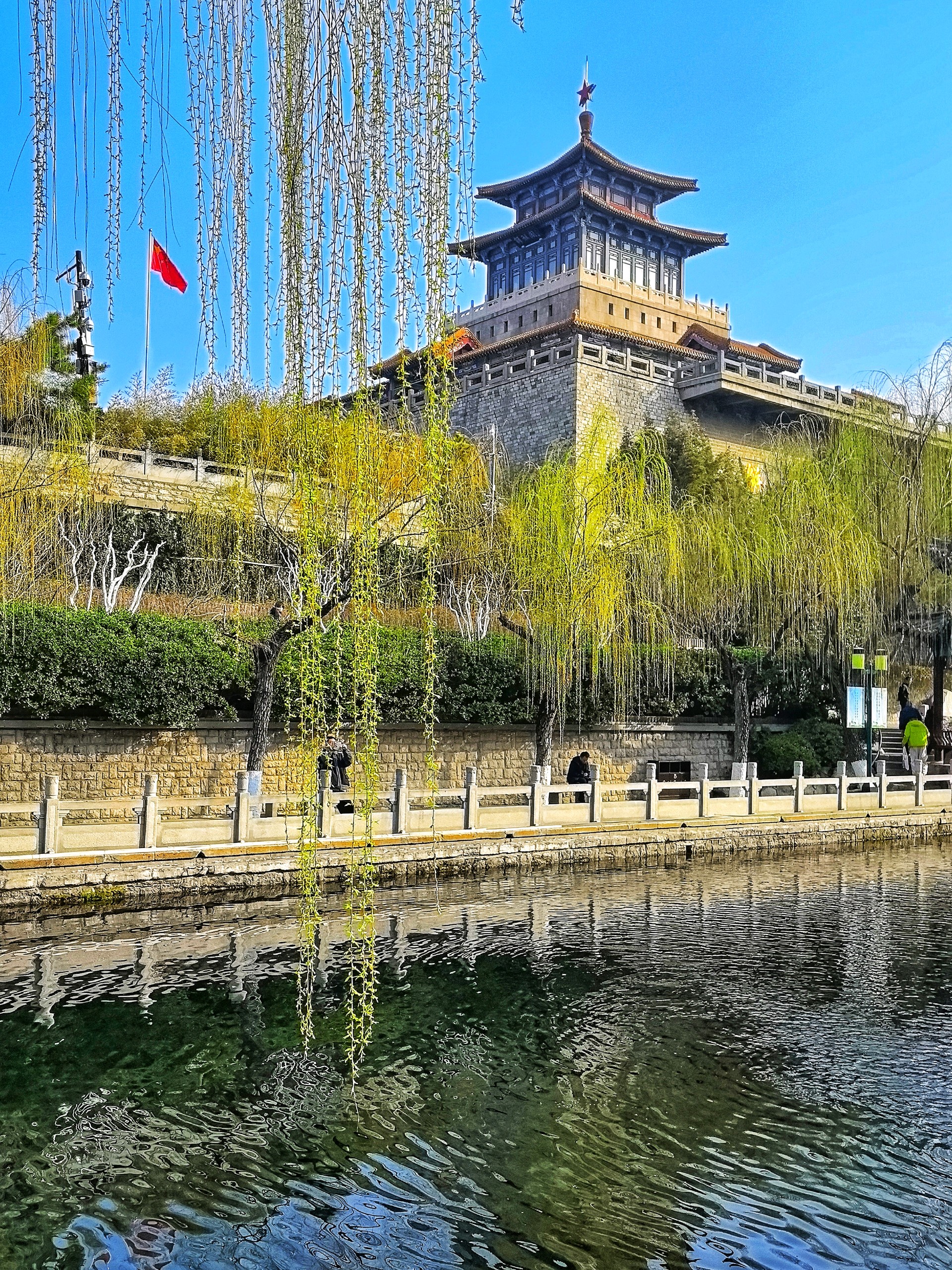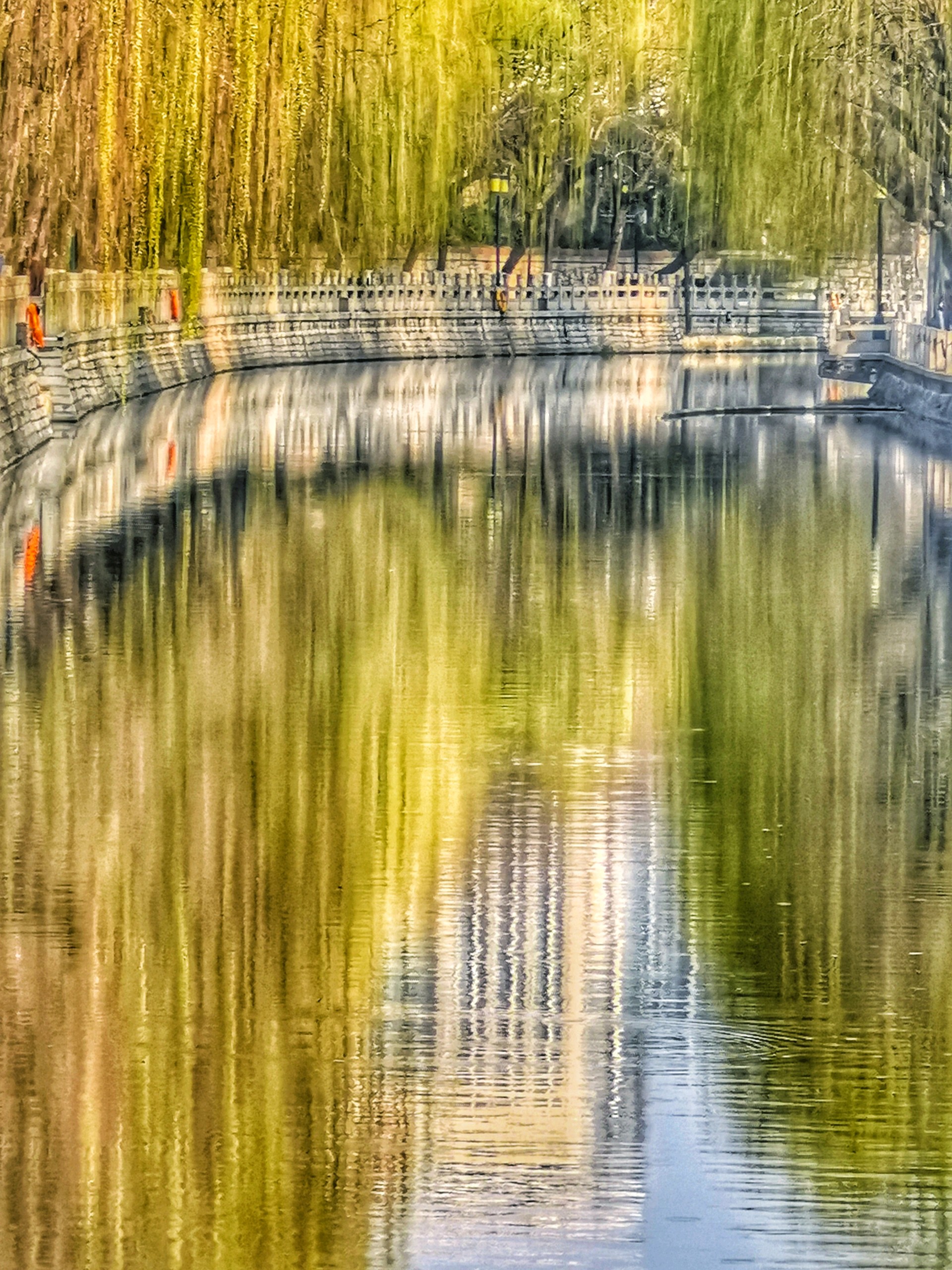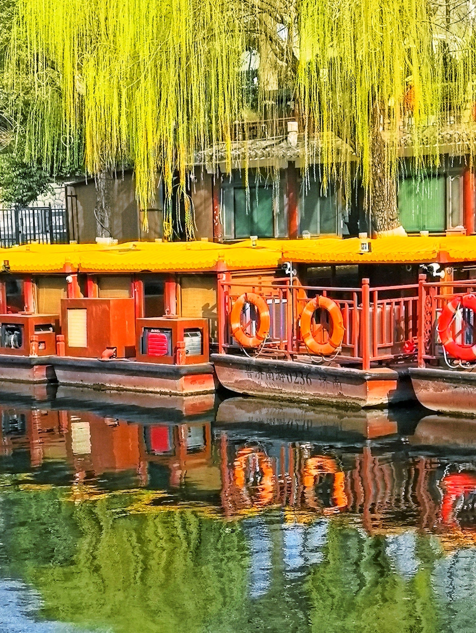春天来临,垂柳吐蕊的景象美不胜收。细长的柳枝柔软下垂,宛如绿色的丝绦随风摇曳,枝上吐出嫩黄色的新芽,星星点点,犹如一颗颗璀璨的明珠,在微风中轻轻舞动,轻拂着画舫和亭台,静谧而美好,时光仿佛在此刻慢了下来。 ——拍摄于环城公园