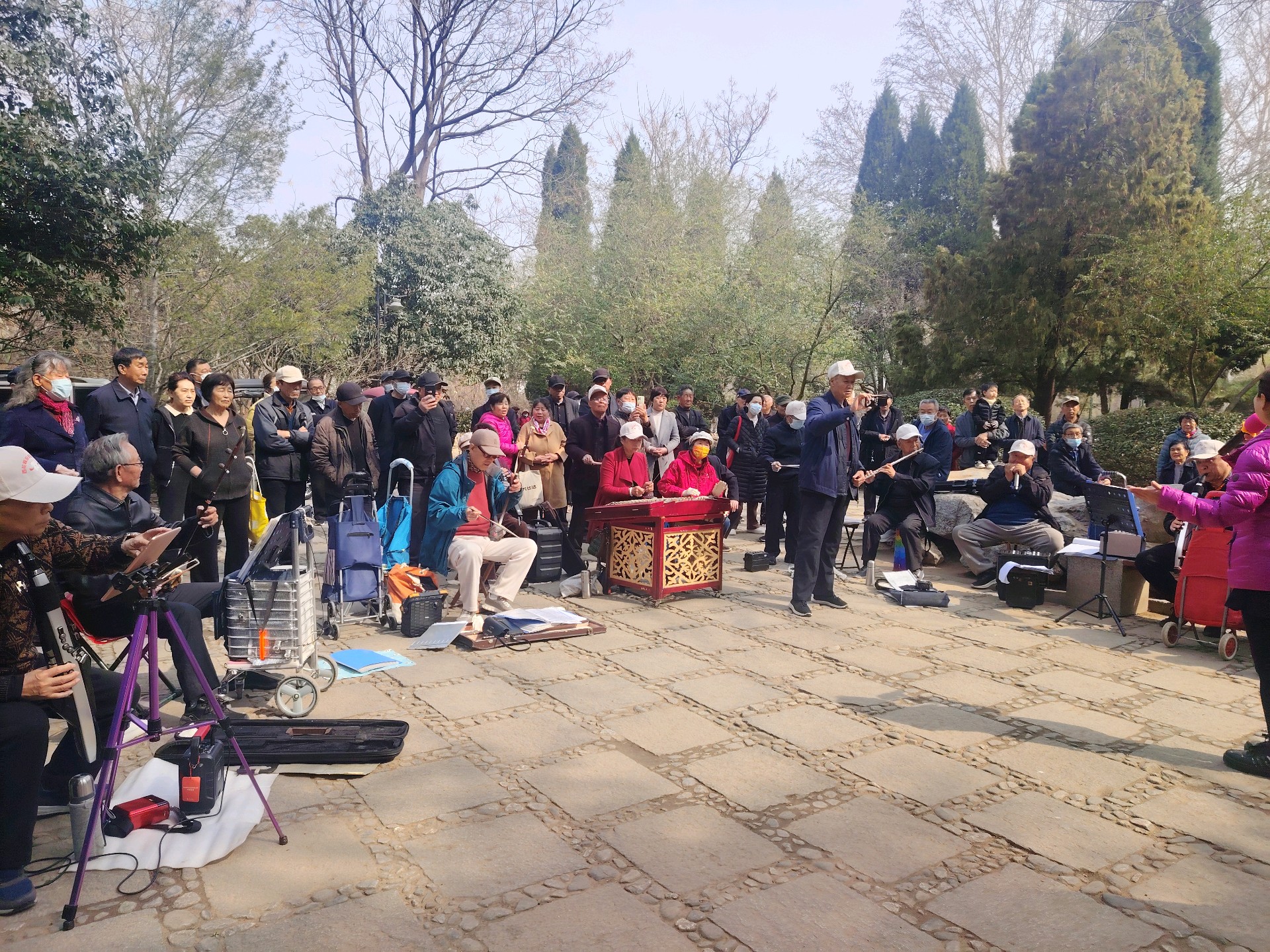 春天来了,春意盎然,百花公园内天天热闹非凡!跑步的,走圈的,唱戏的,唱歌的,跳舞的,扭秧歌的,打朴克牌的,做健身操的等各种活动的,汇成了欢乐的海洋!一句话:百花公园内天天热闹非凡!助百姓健康开心快乐!