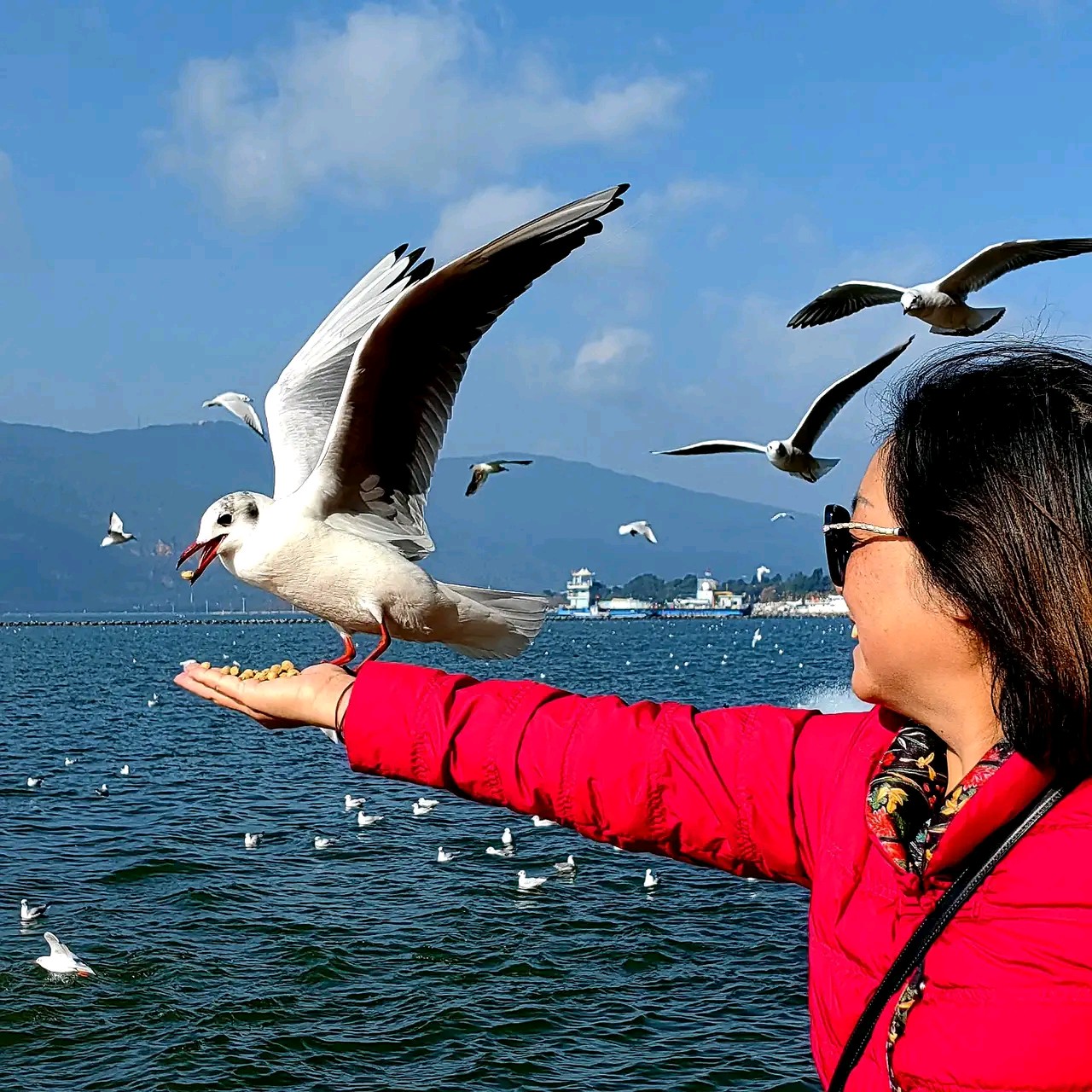 #昆明湖畔喂海鸥#