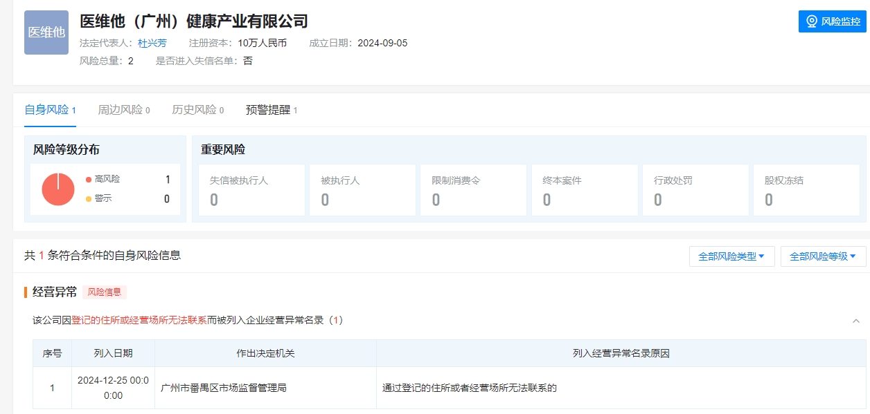 企查查显示这家公司是山东济南的,查找发现是一家小区,并且没人,无法联系,后续发现这家企业在广州新开了一家,但是依然是查不到地址。发生这些事情后医维他还特意隐藏事实,并且继续售卖各类产品,对孕妇的健康真的起了很大的危害。